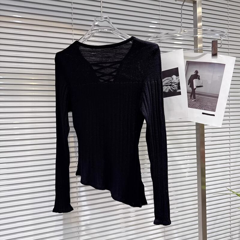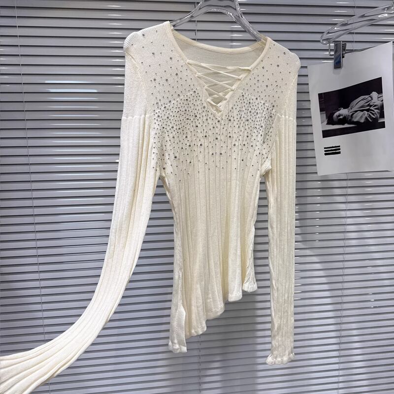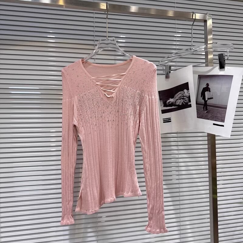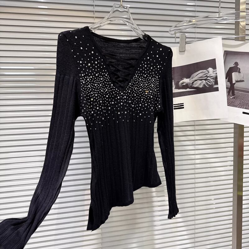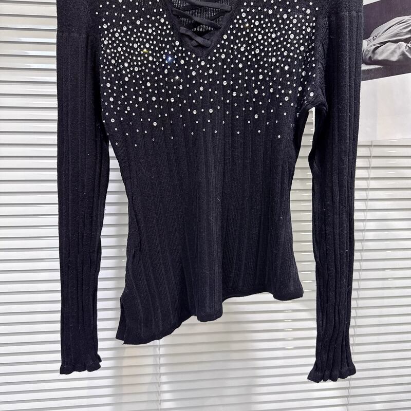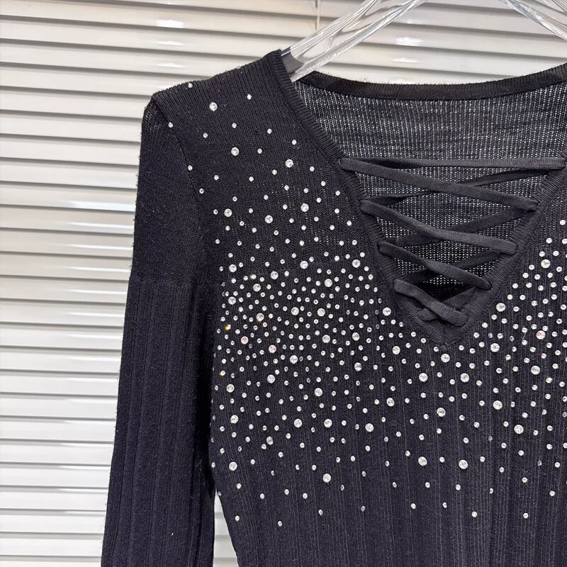 【tops】ラインストーン付きニットトップス Q8104