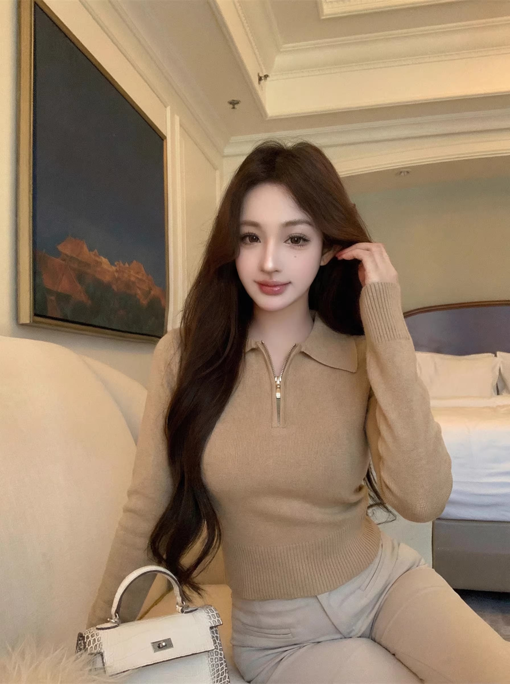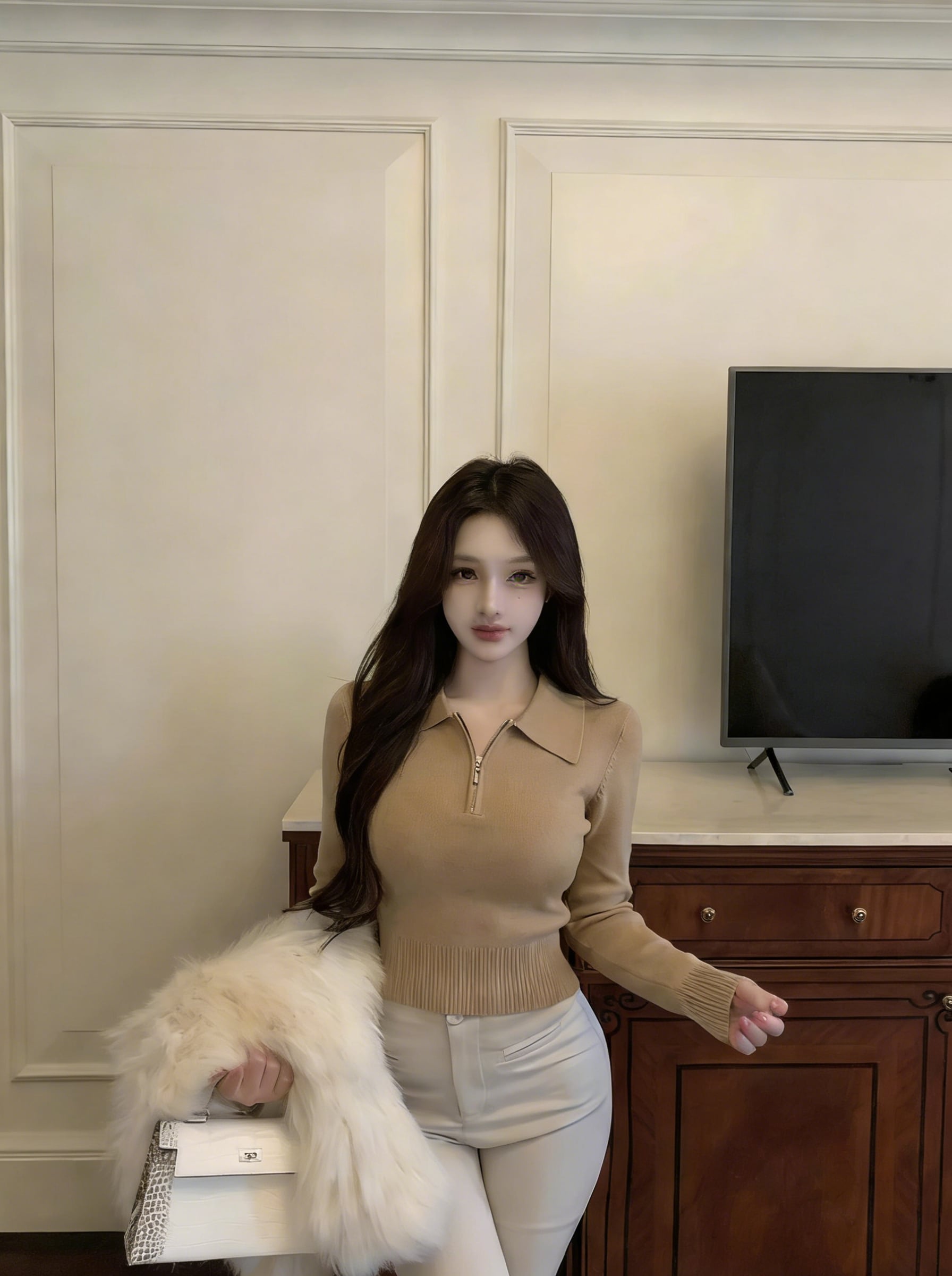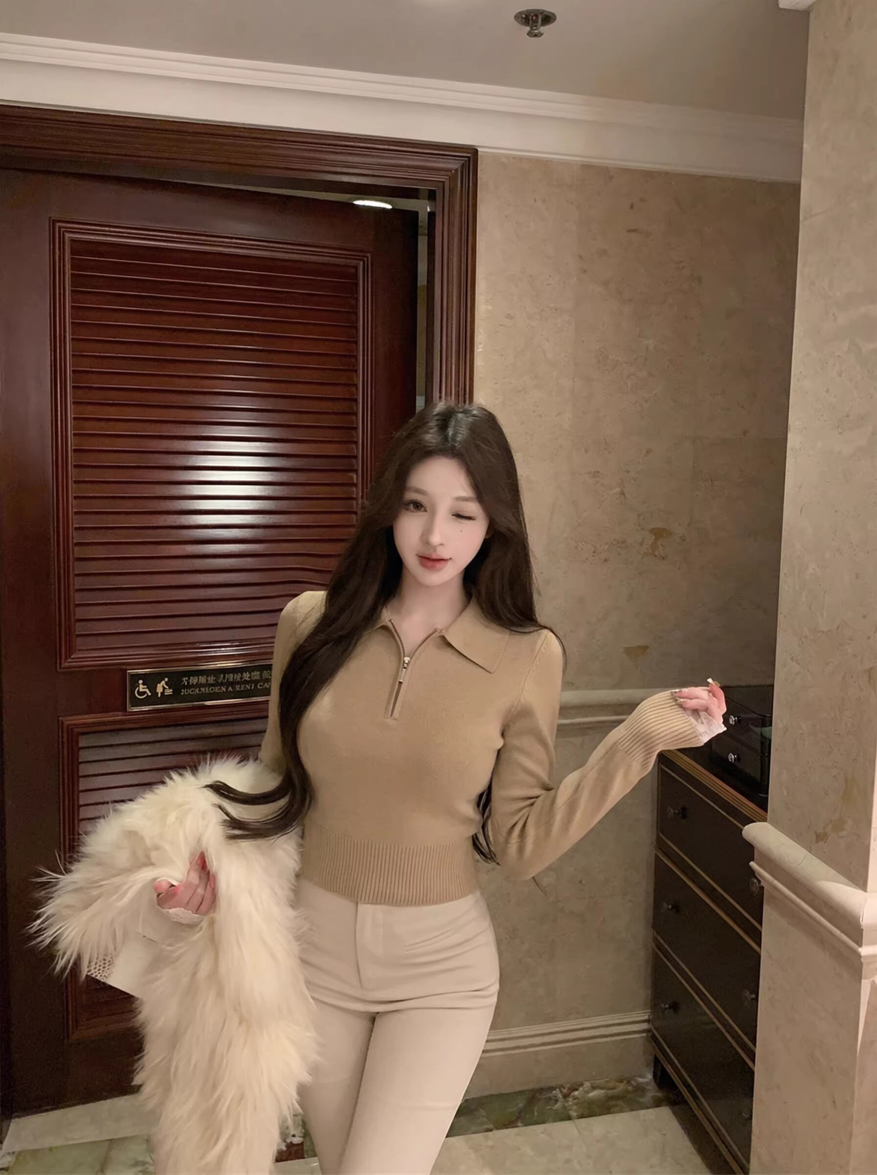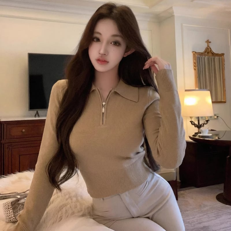 【tops】折り襟ニットトップス Q8108