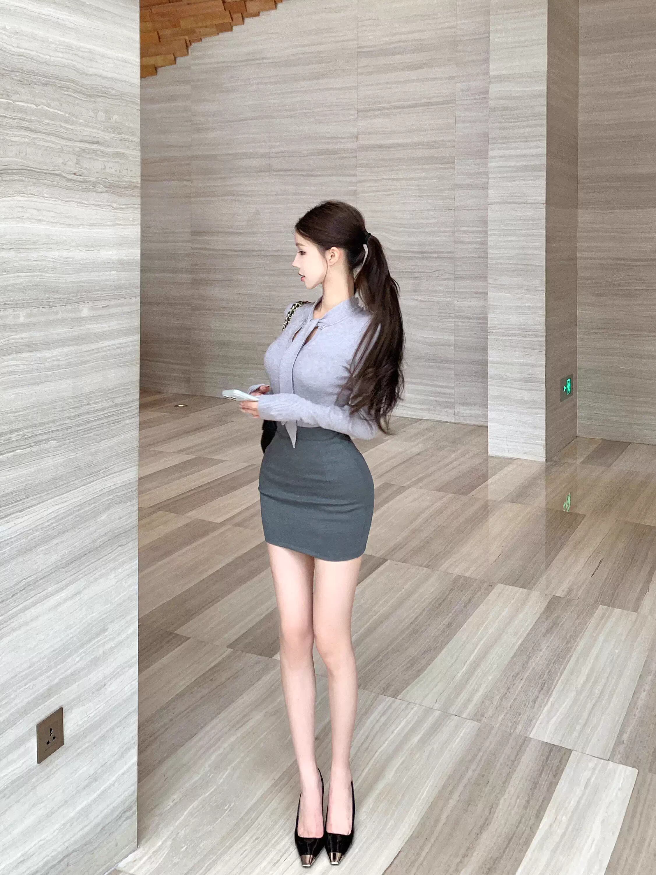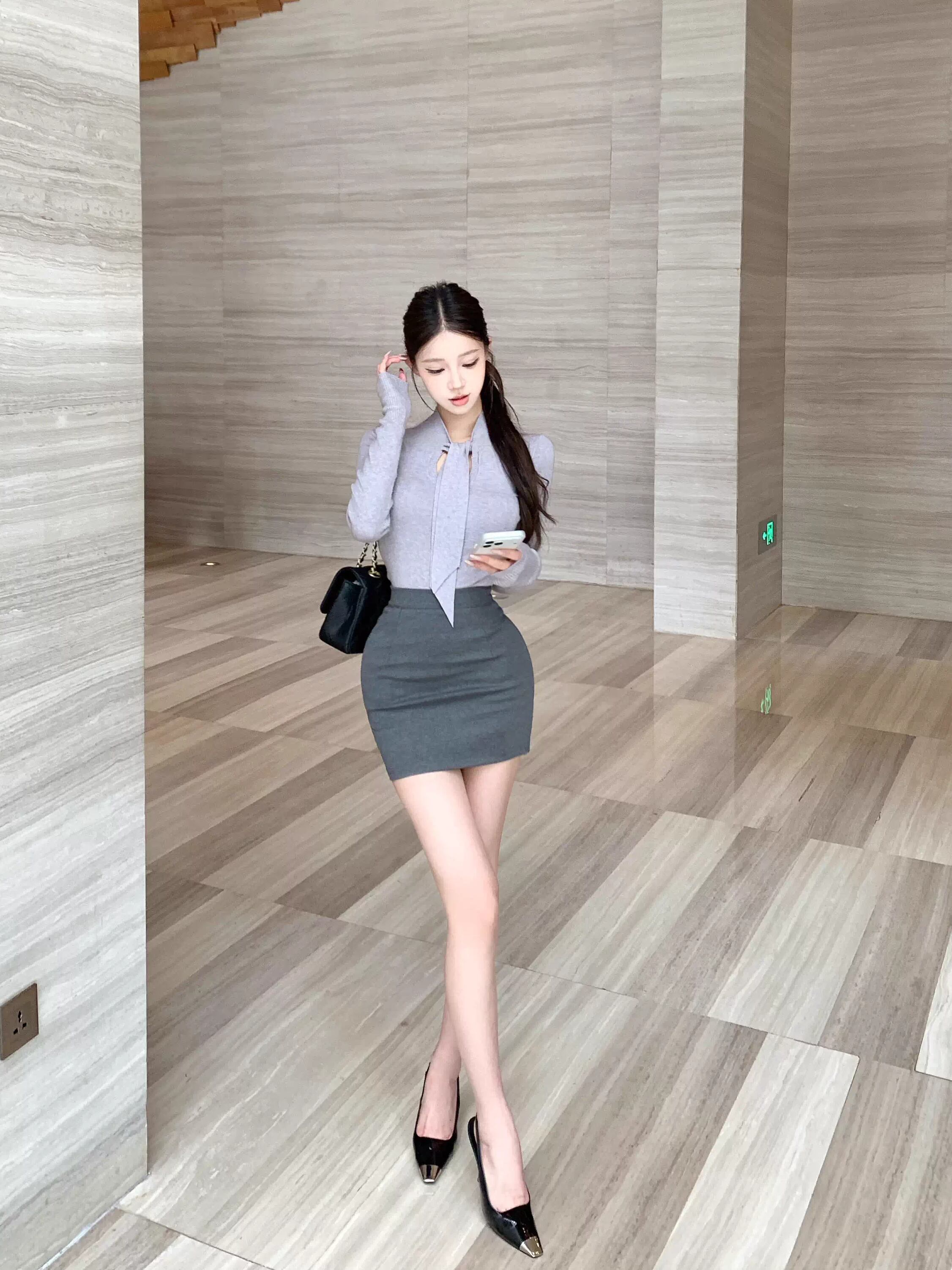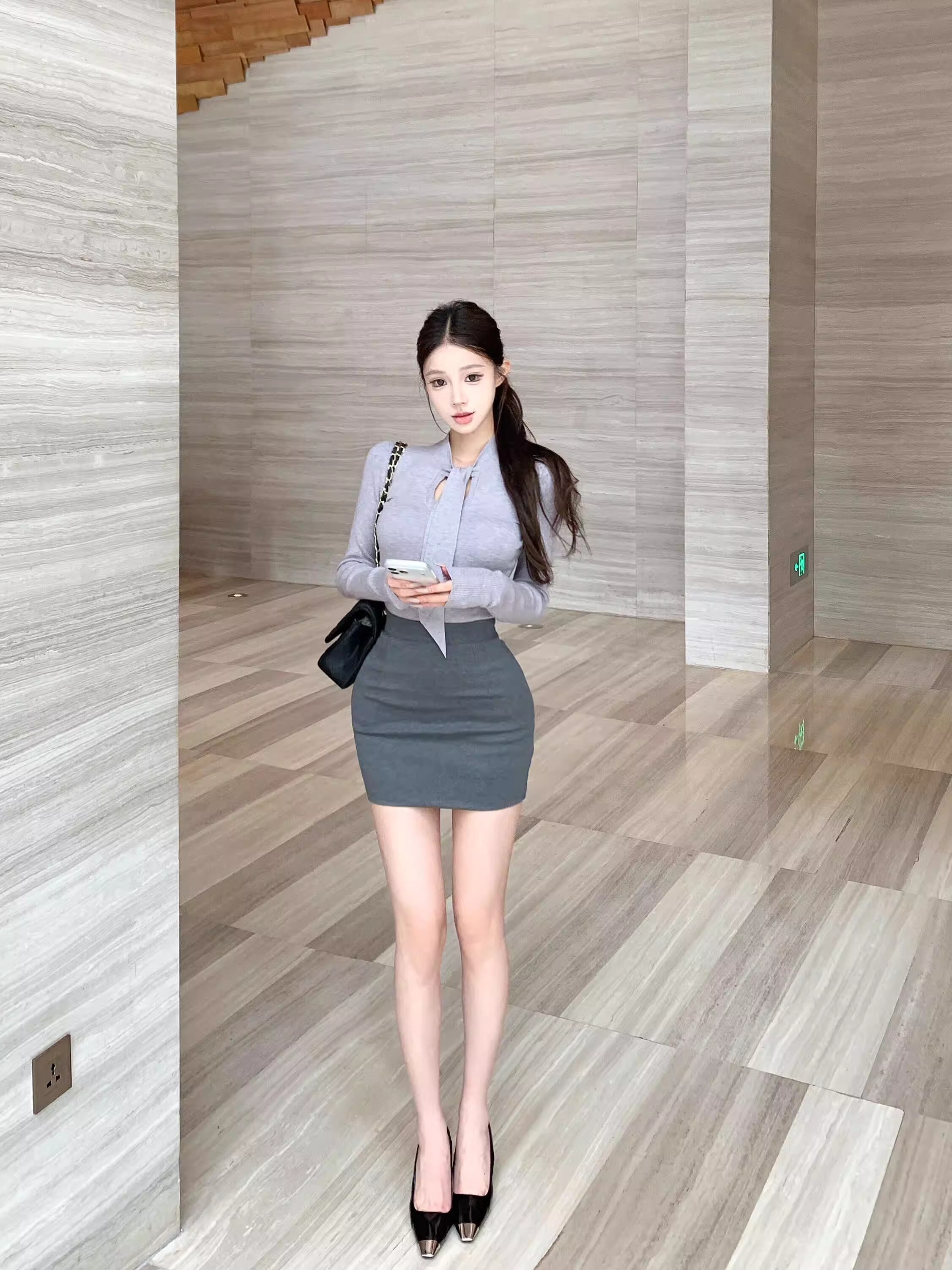 【set】スカーフネックニットトップス×タイトミニスカートセット Q8112