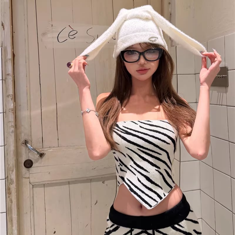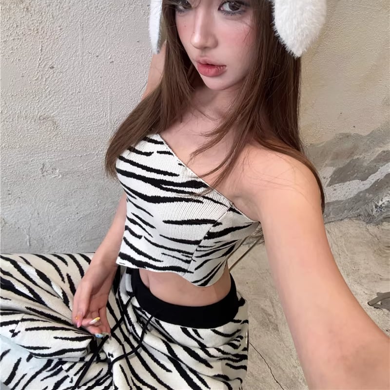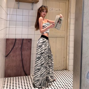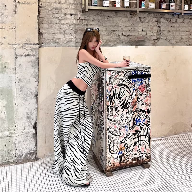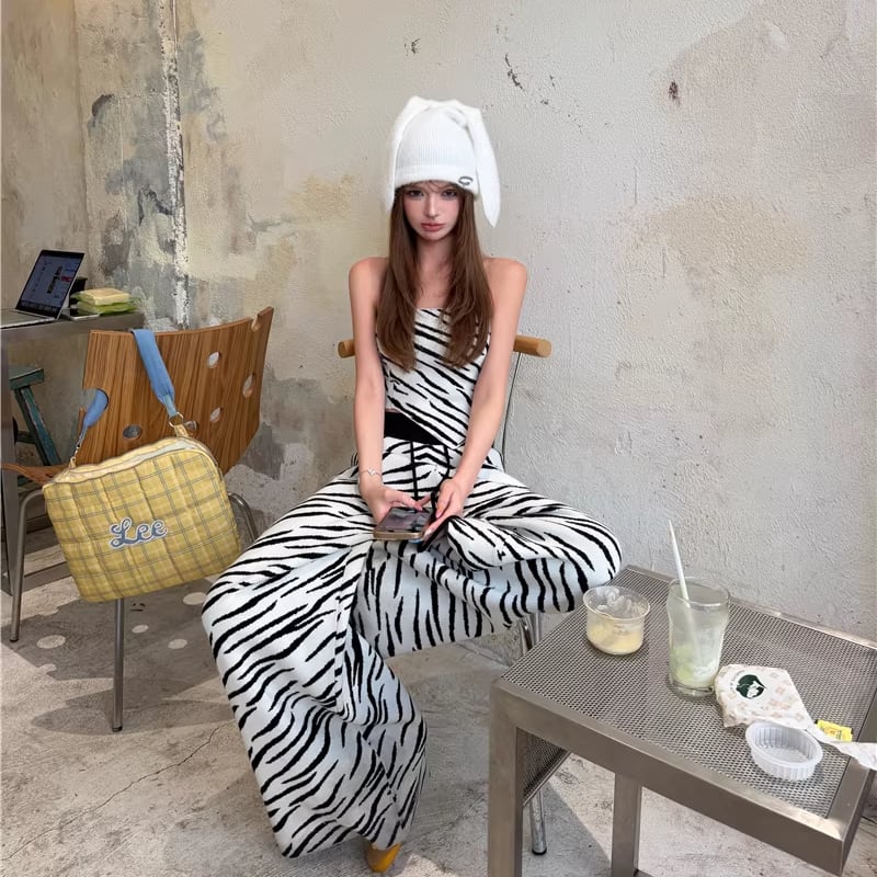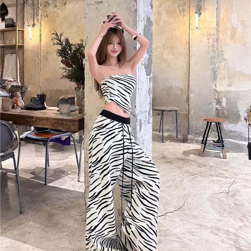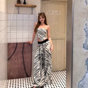 【set】ゼブラ柄チューブトップス×ワイドパンツセット Q8135