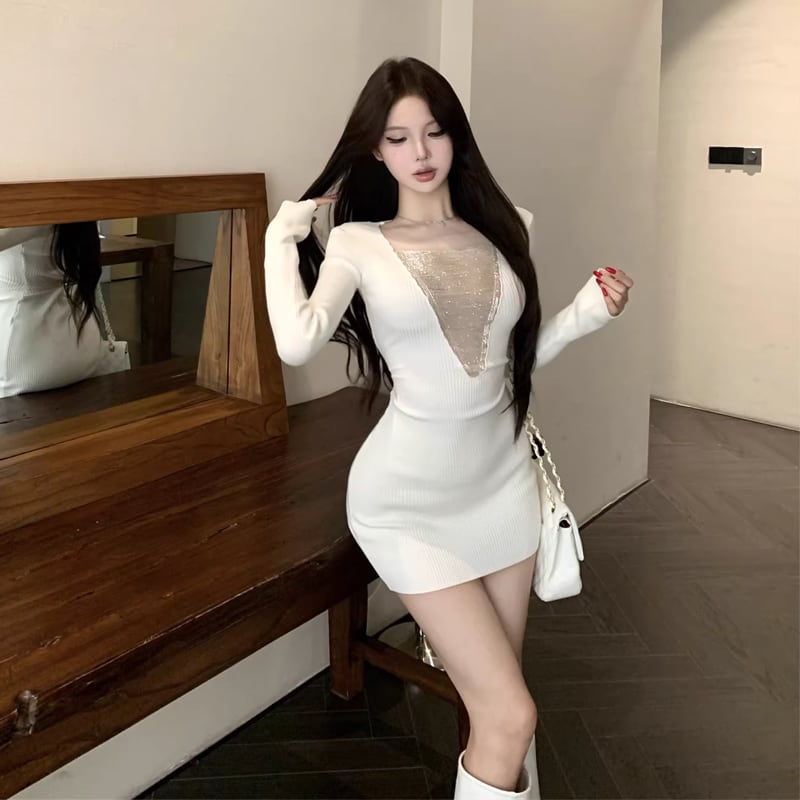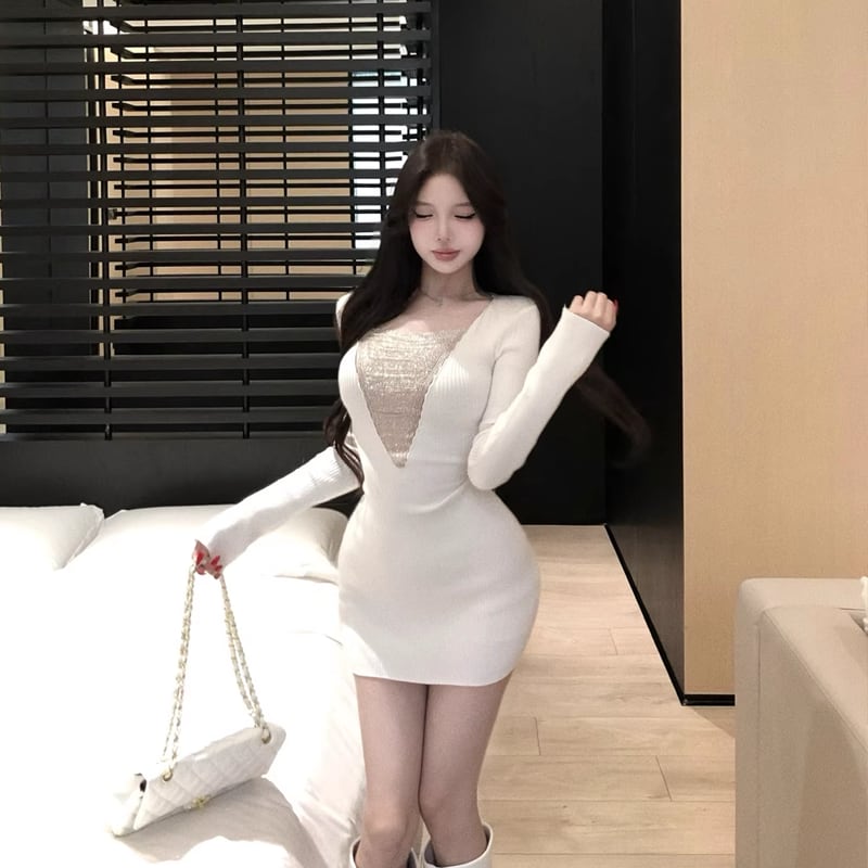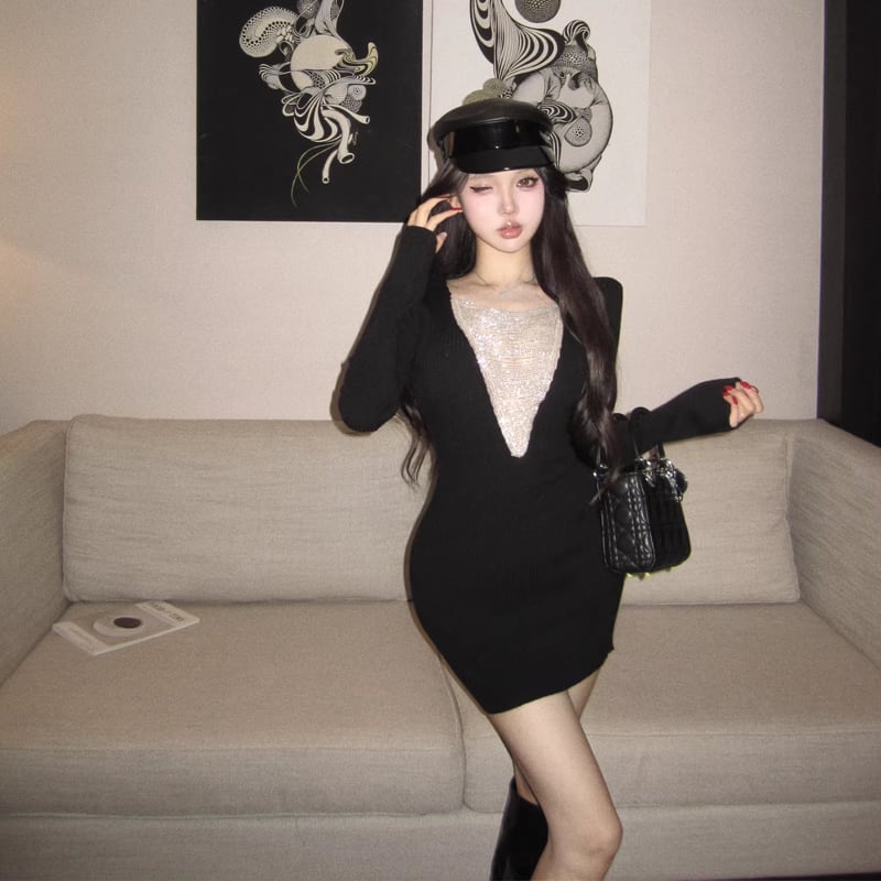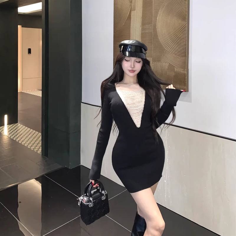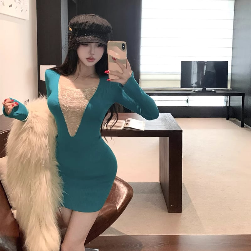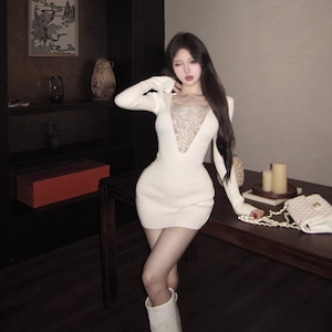 【dress】チェンドッキングニットワンピース Q8138