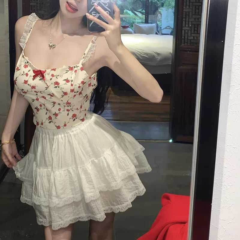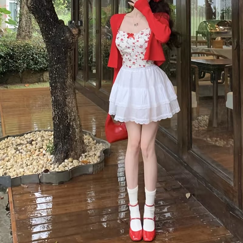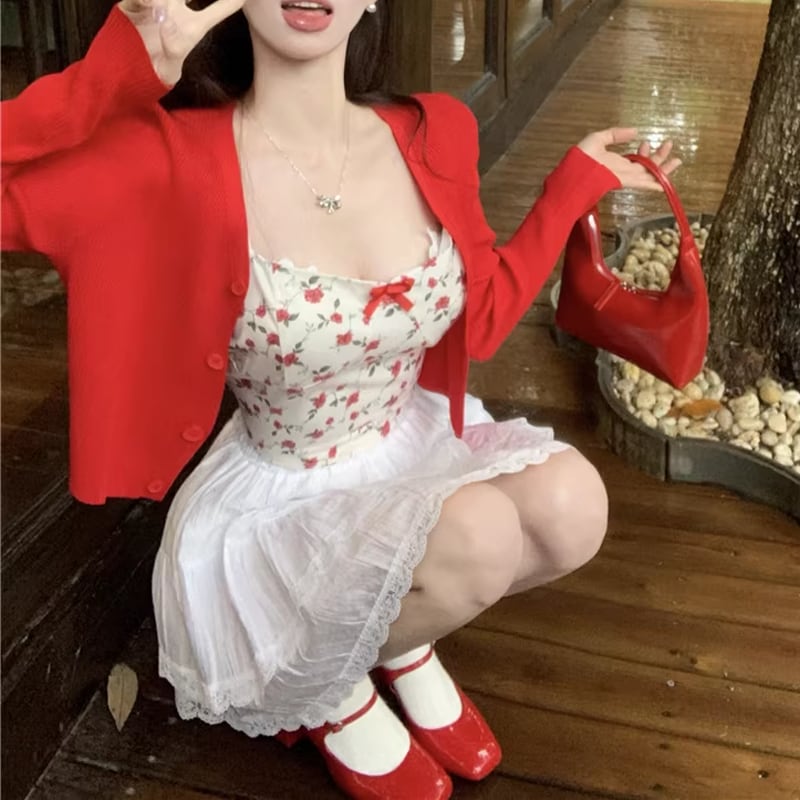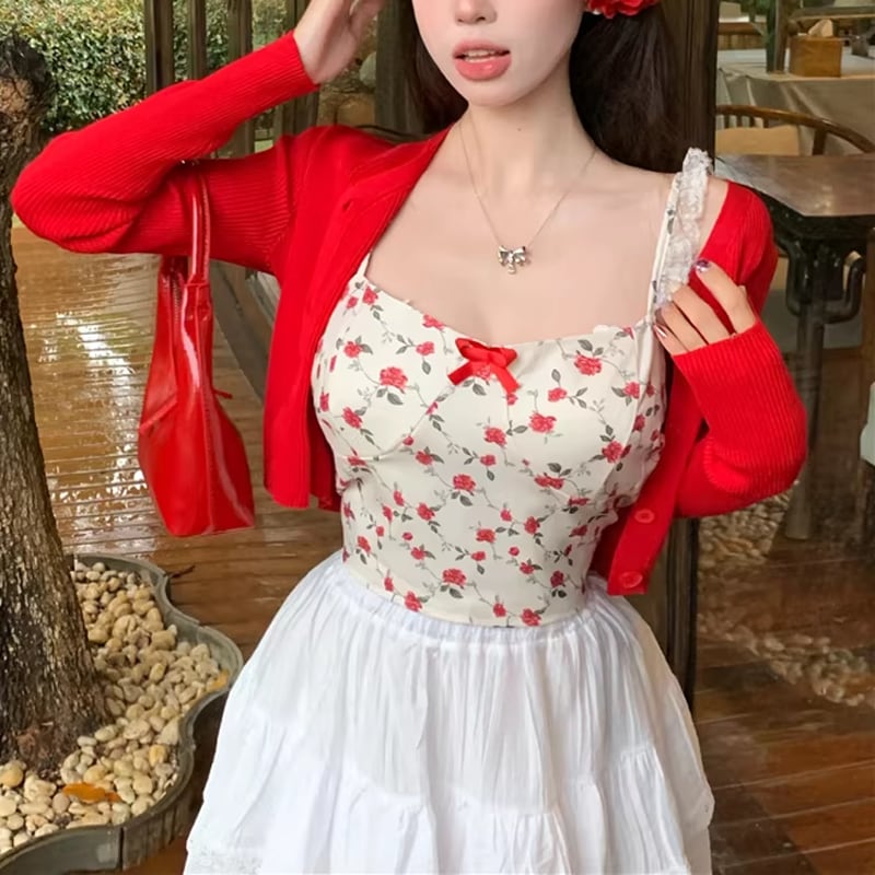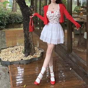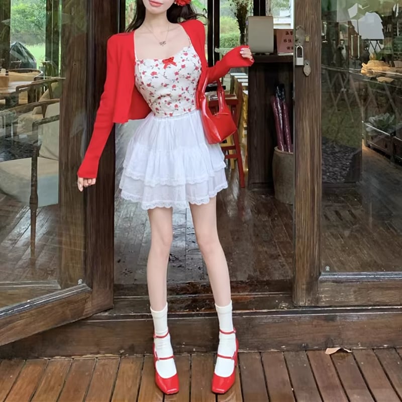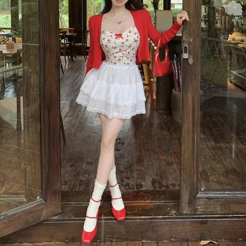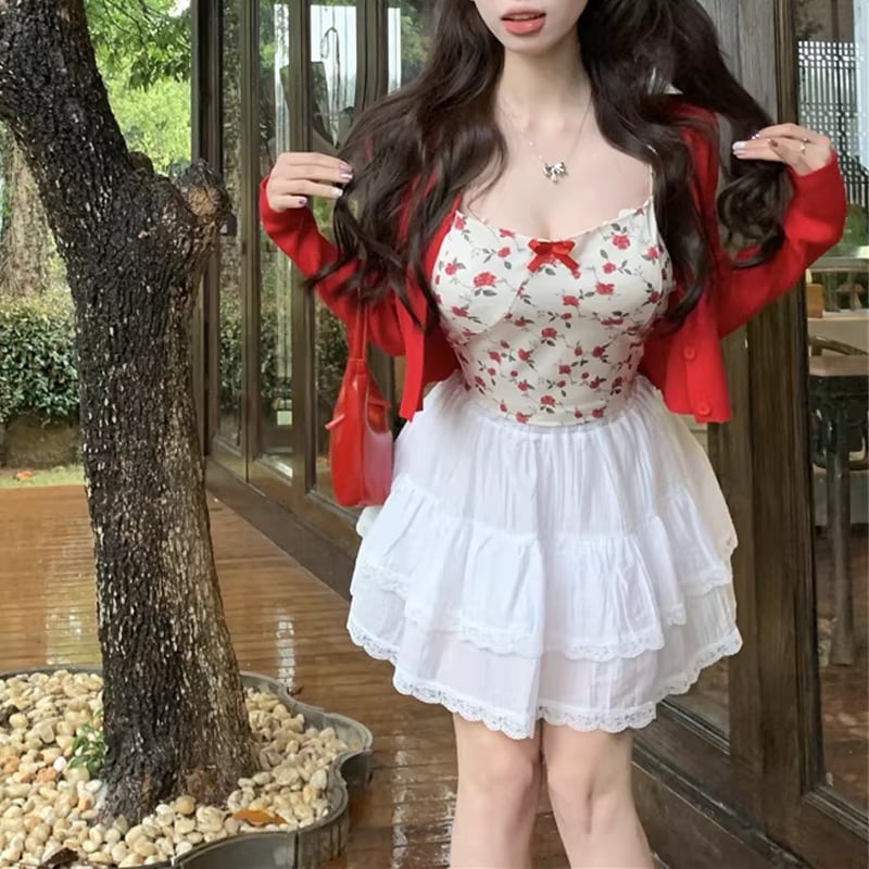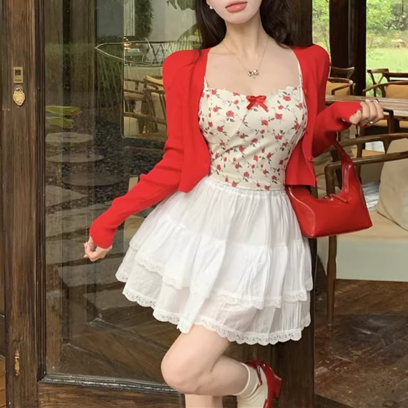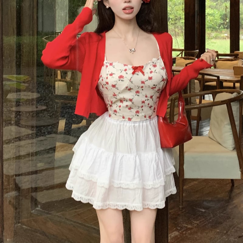【set】ニットカーディガン×キャミソール×ティアードスカート3点セット Q8141