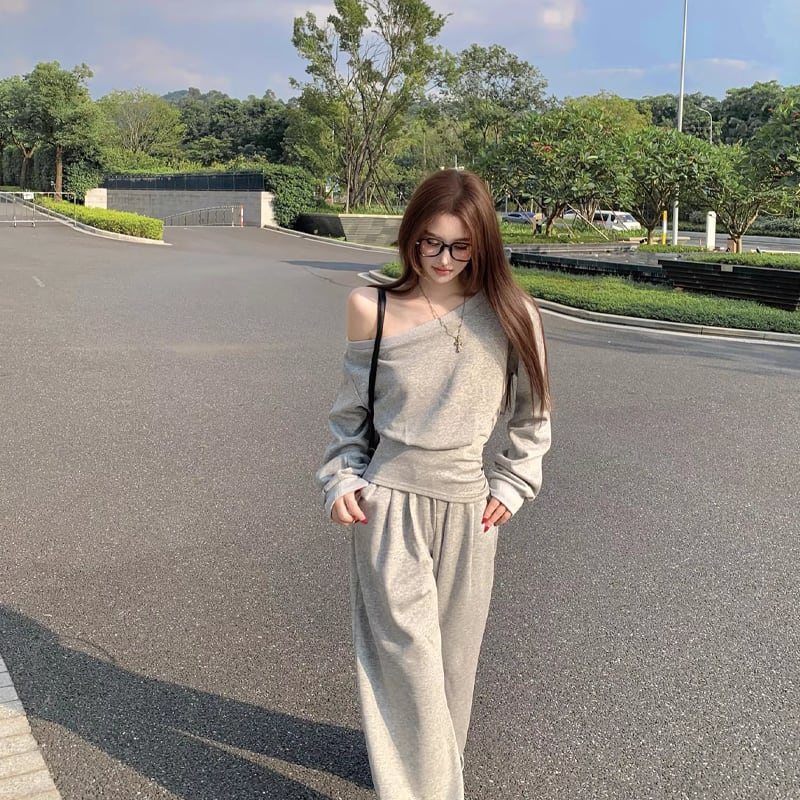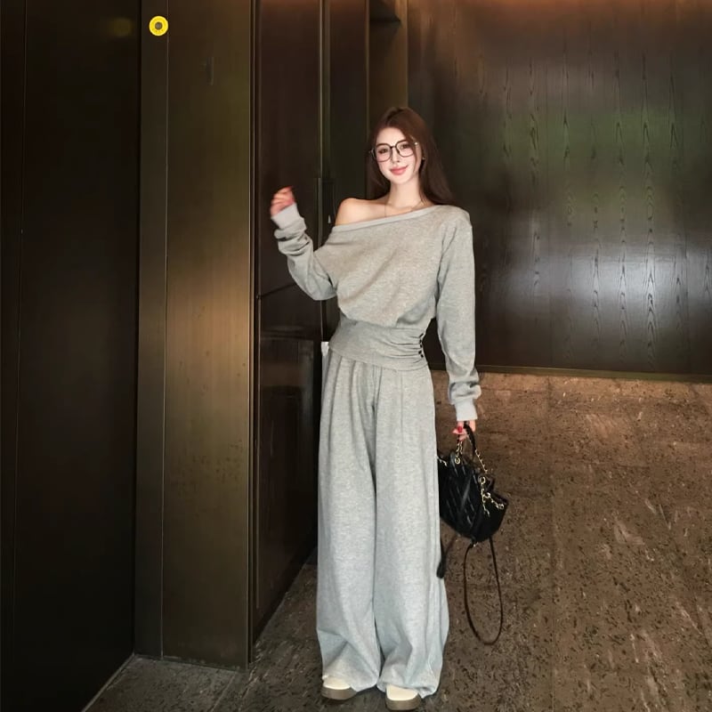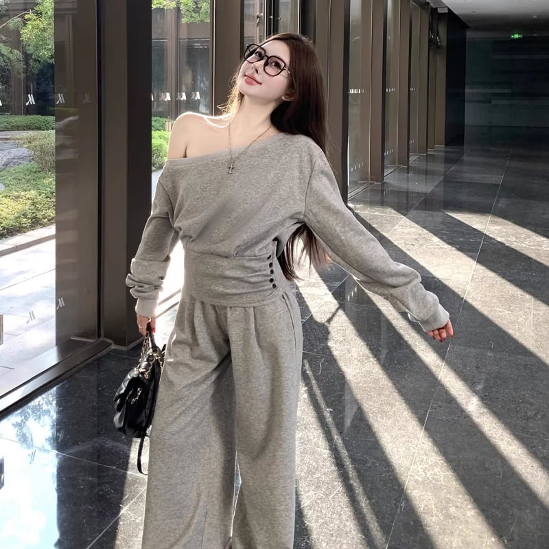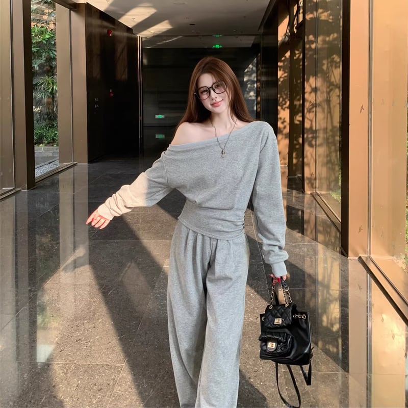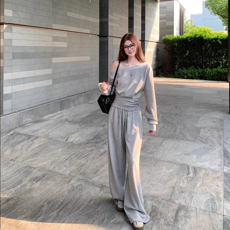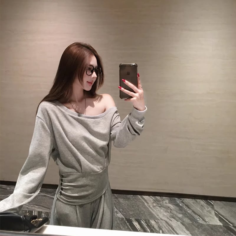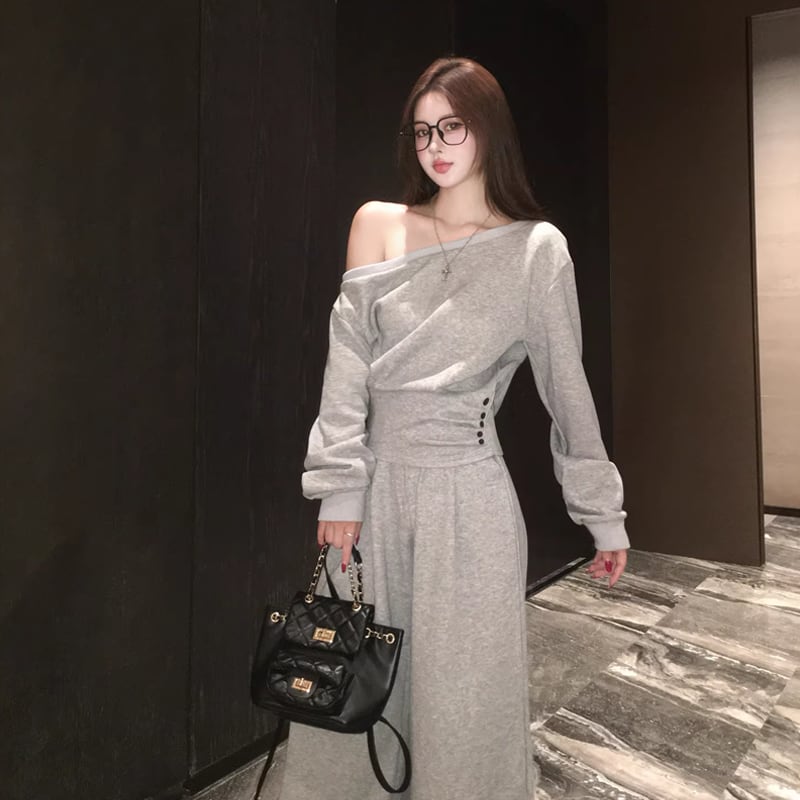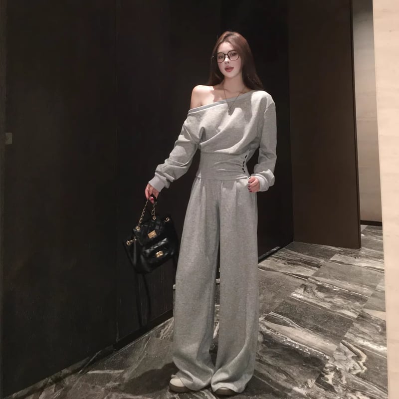【set】ワンショルダートップス×ワイドパンツセット Q8146