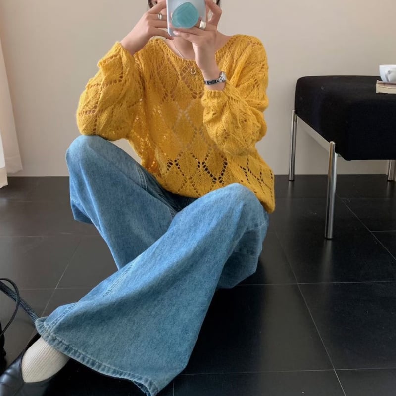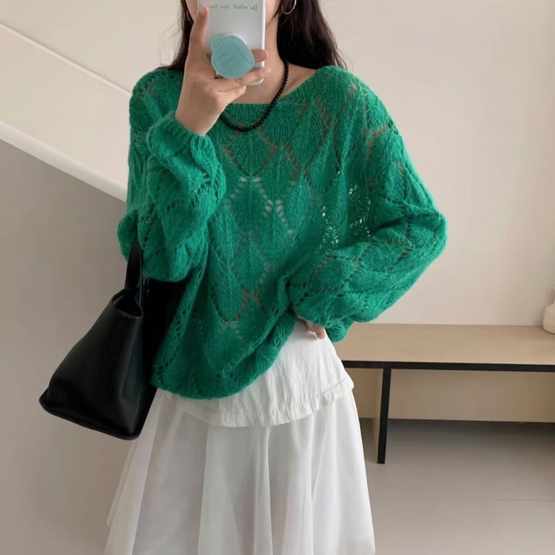 【tops】菱形ニットトップス Q8156