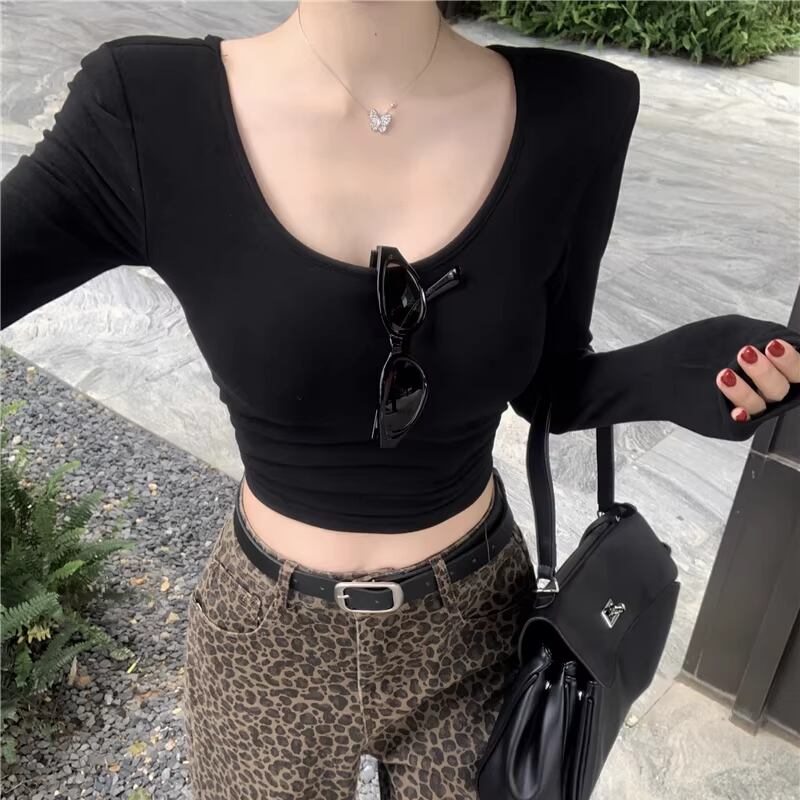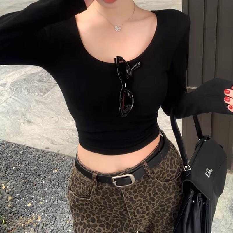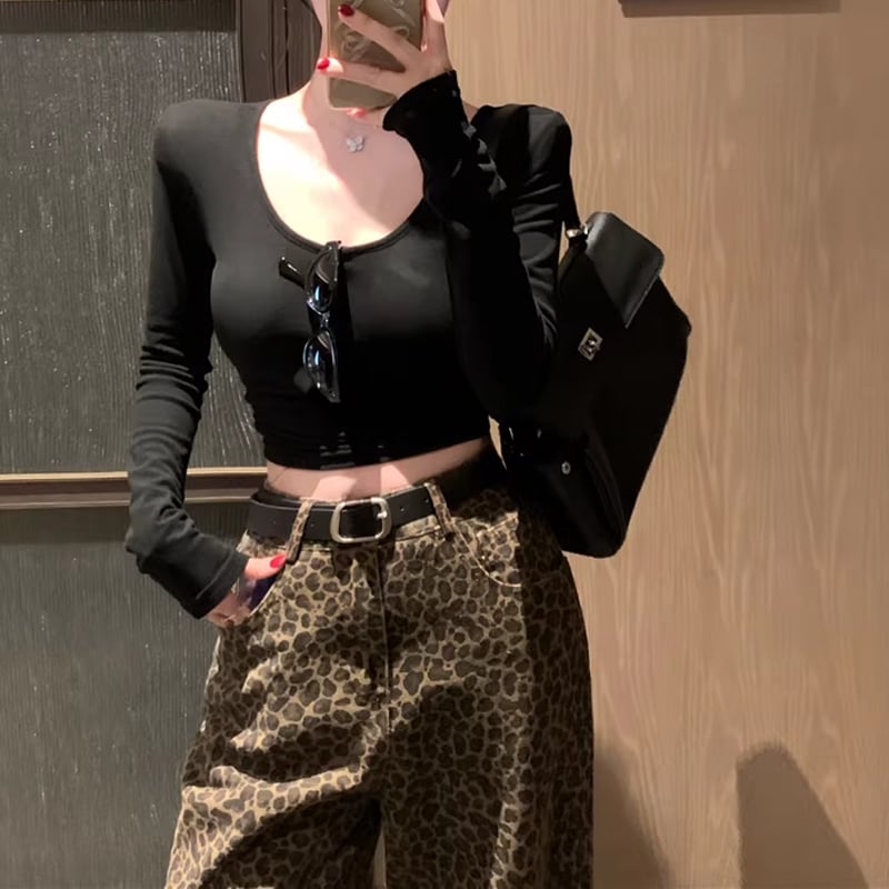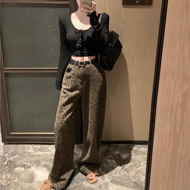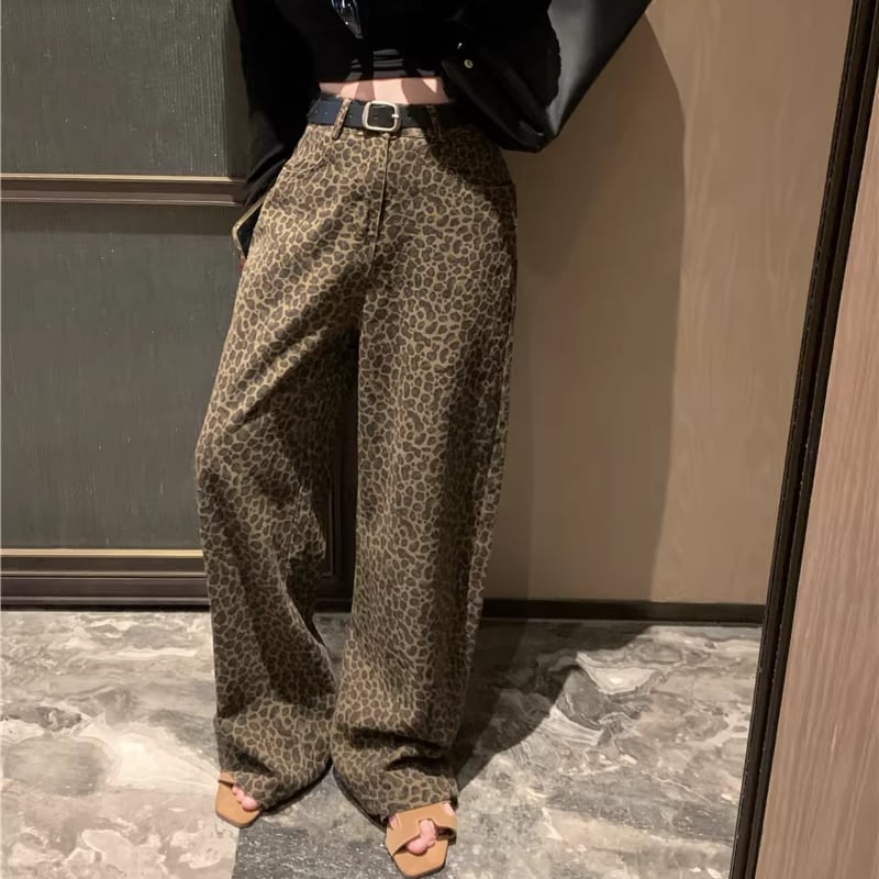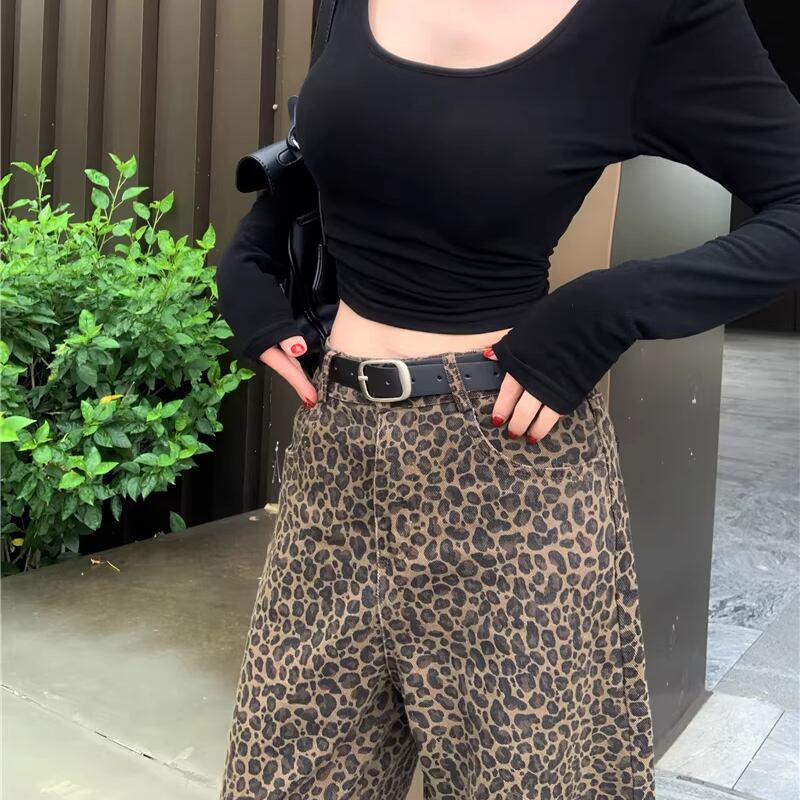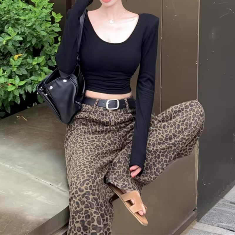 【set】ショートトップス×ベルト付きヒョウ柄パンツセット Q8170
