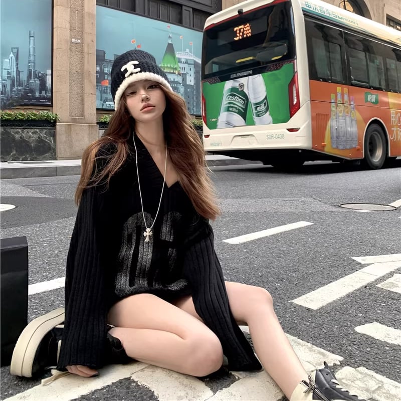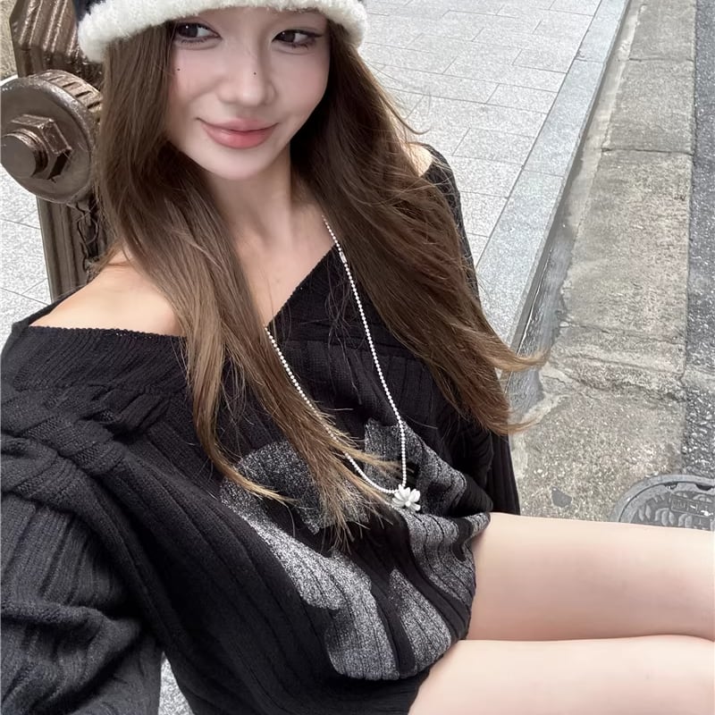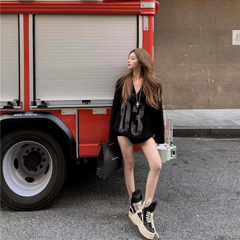 【tops】Vネックニットトップス Q8180