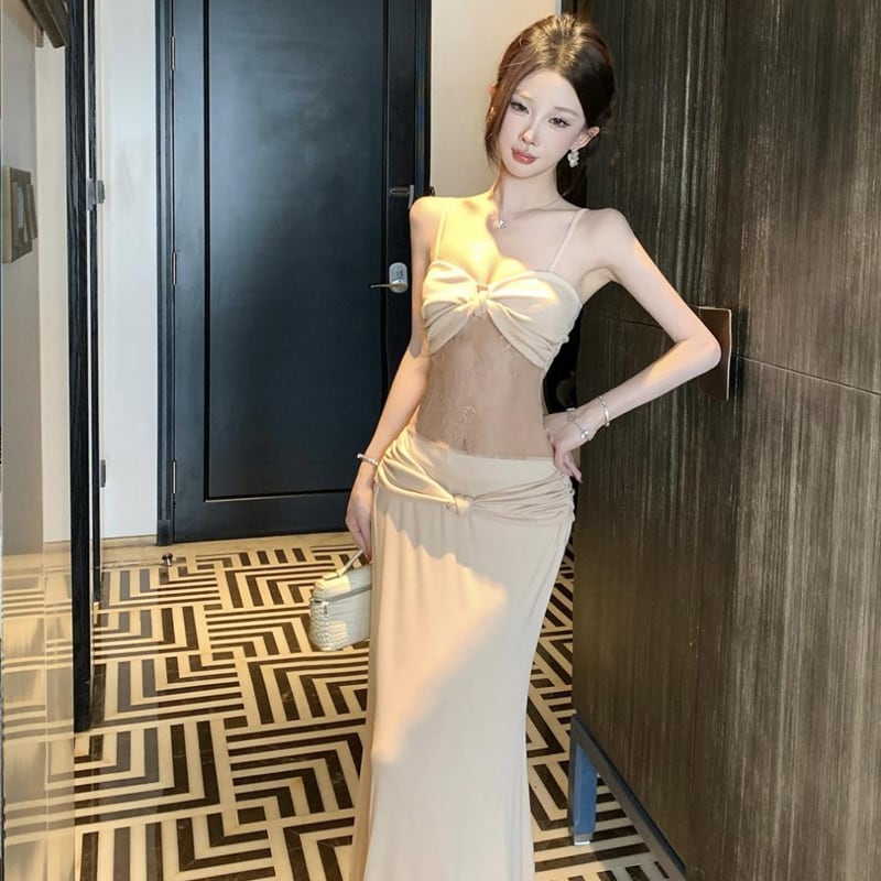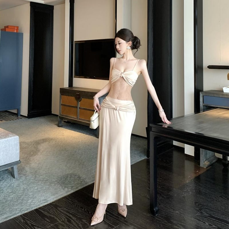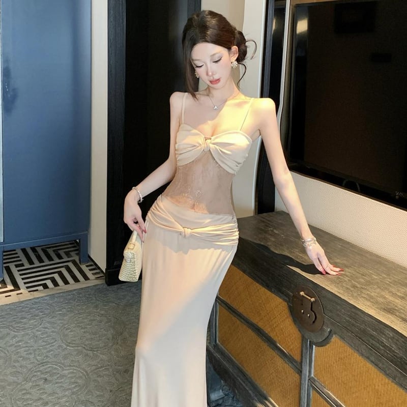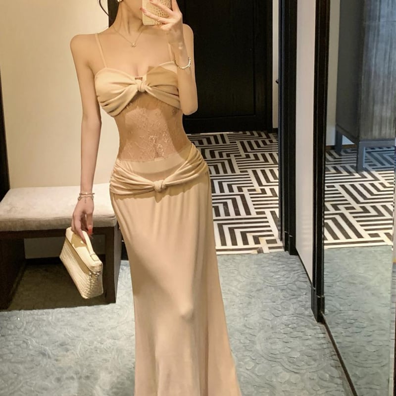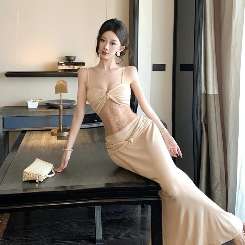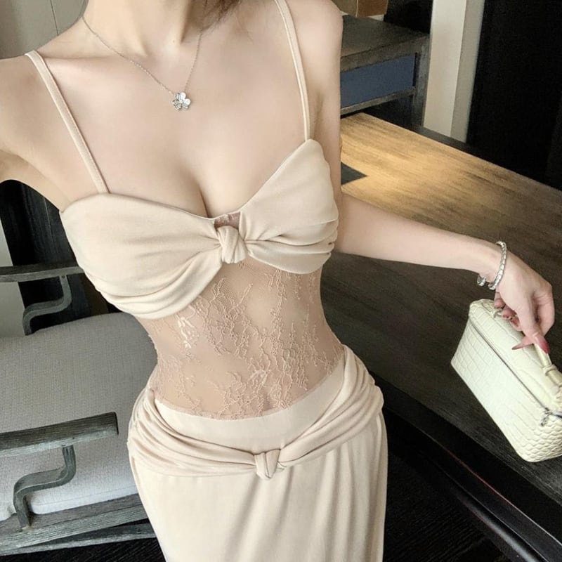 【dress】レースドッキングロングキャミワンピース Q8187