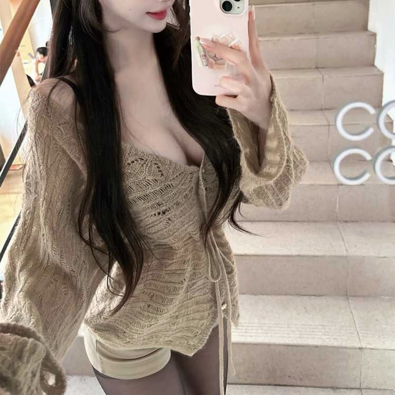【outer】Vネックニットカーディガン Q8193