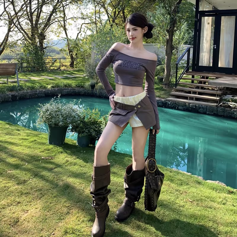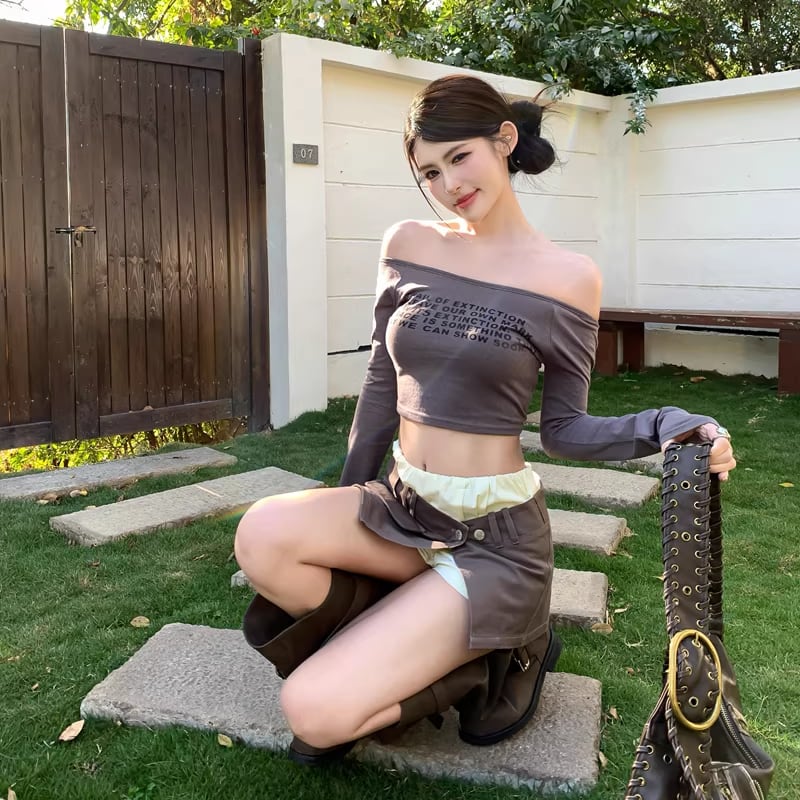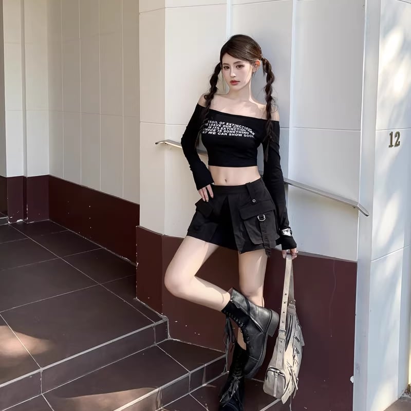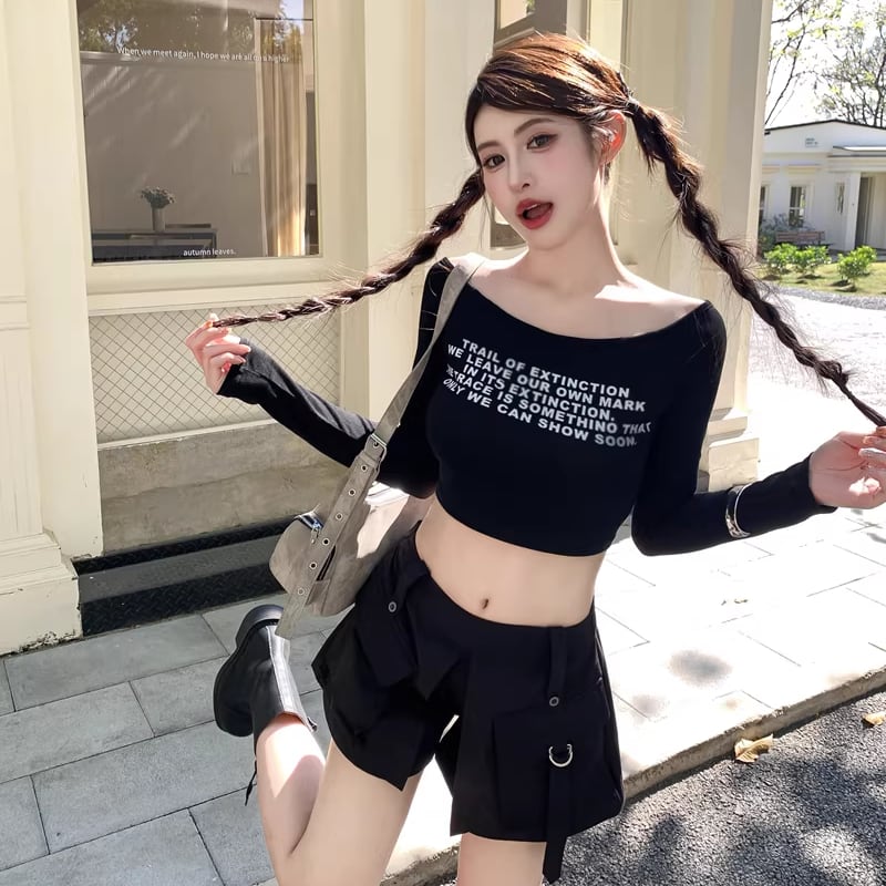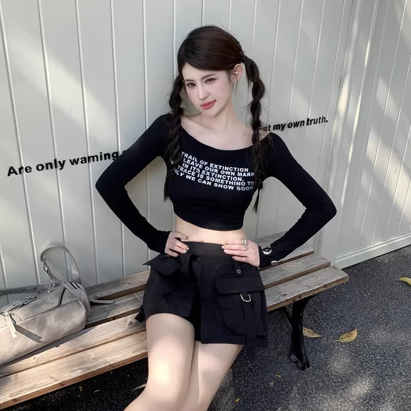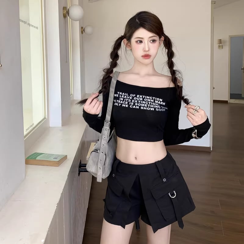 【tops】4色展開ショートトップス Q8196