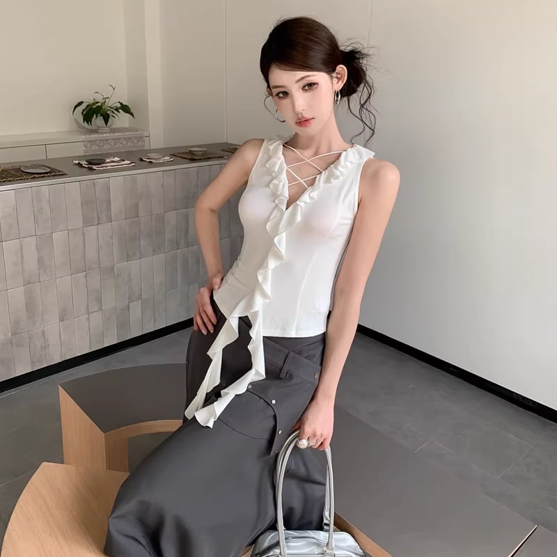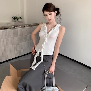 【tops】ストラップノースリーブトップス Q8211