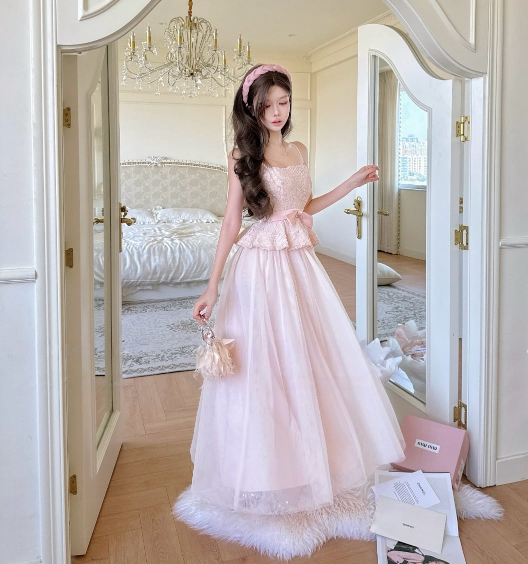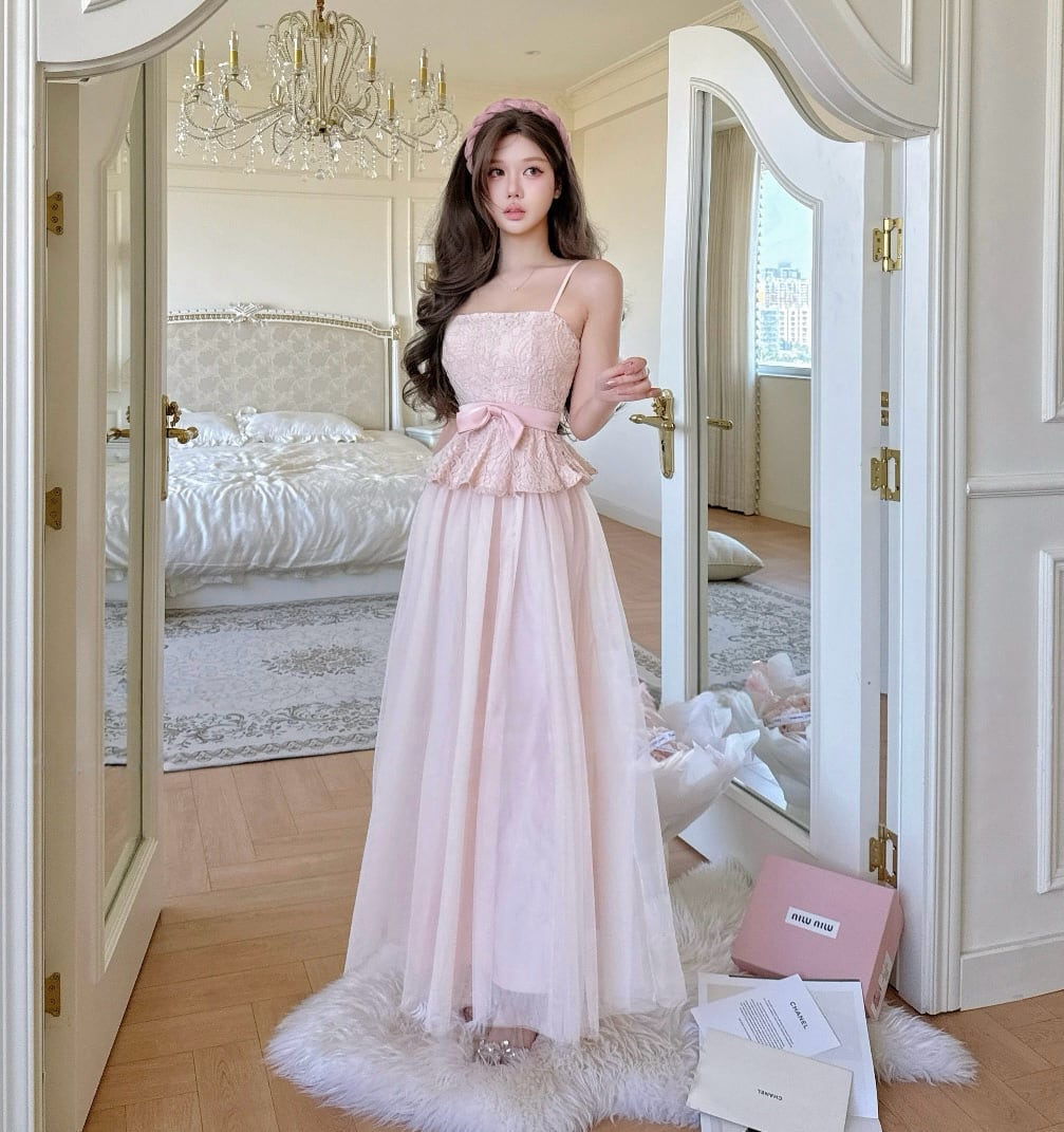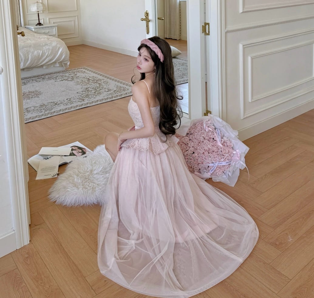 【dress】レースドッキングチュールロングワンピース N3529