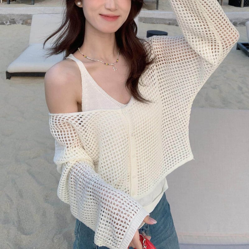 【set】ニットキャミソール×ニットカーディガンセット Q8232
