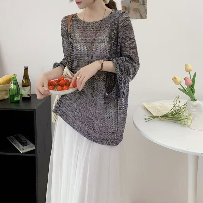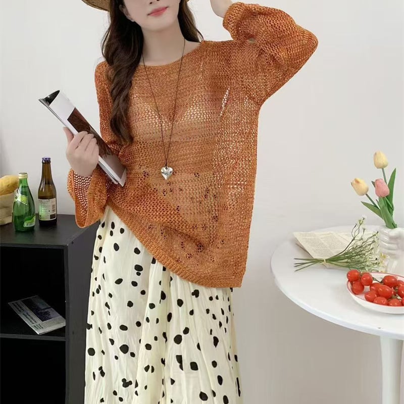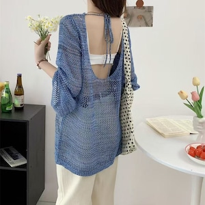 【tops】透け感オープンバックニットトップス Q8237