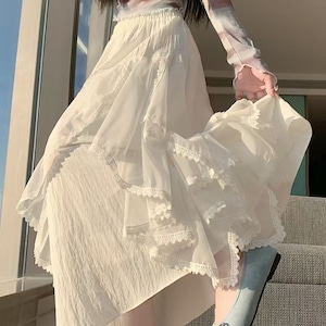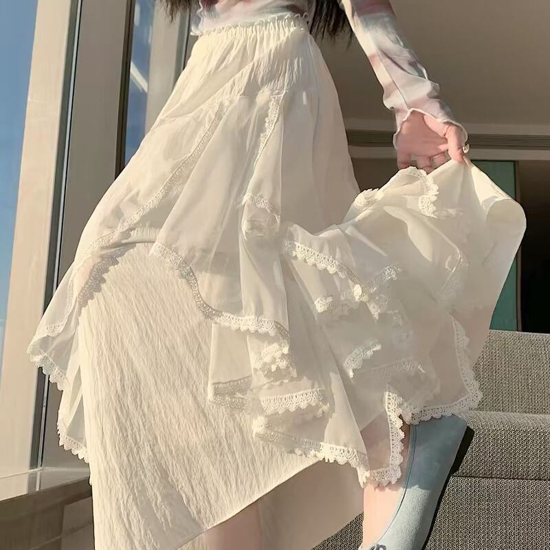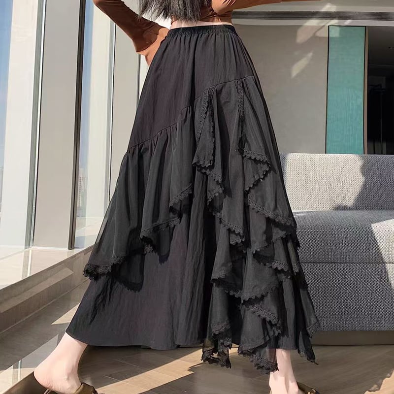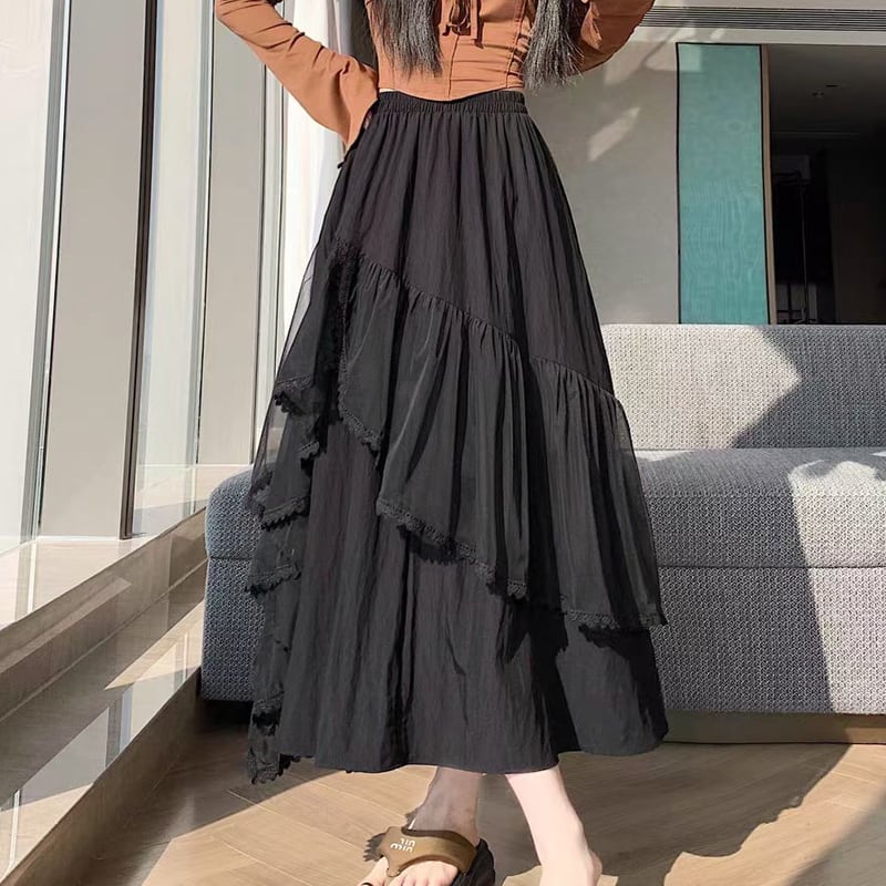 【bottoms】チュールドッキングイレヘムロングスカート Q8241