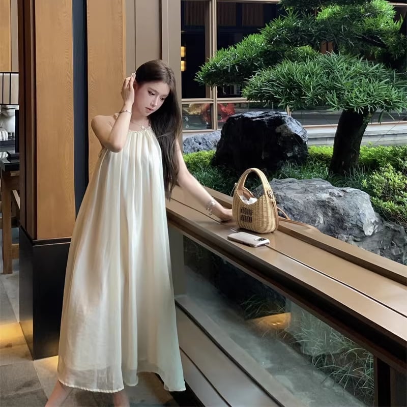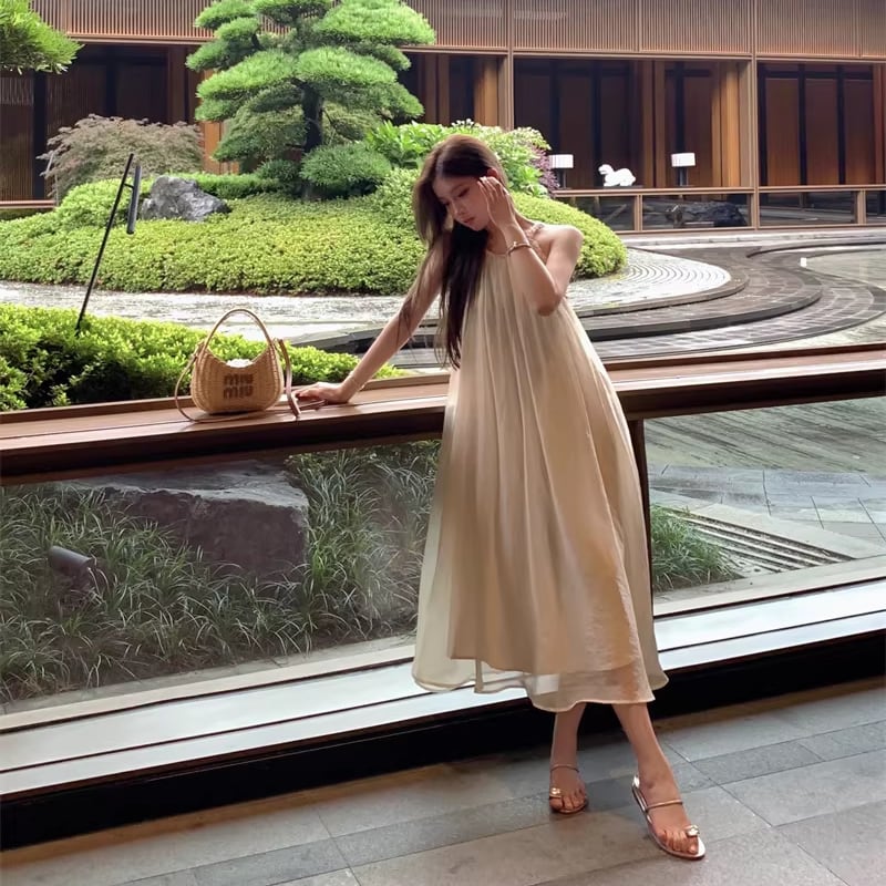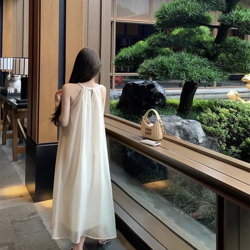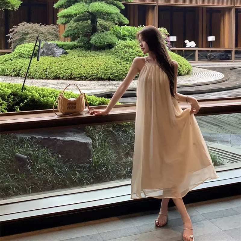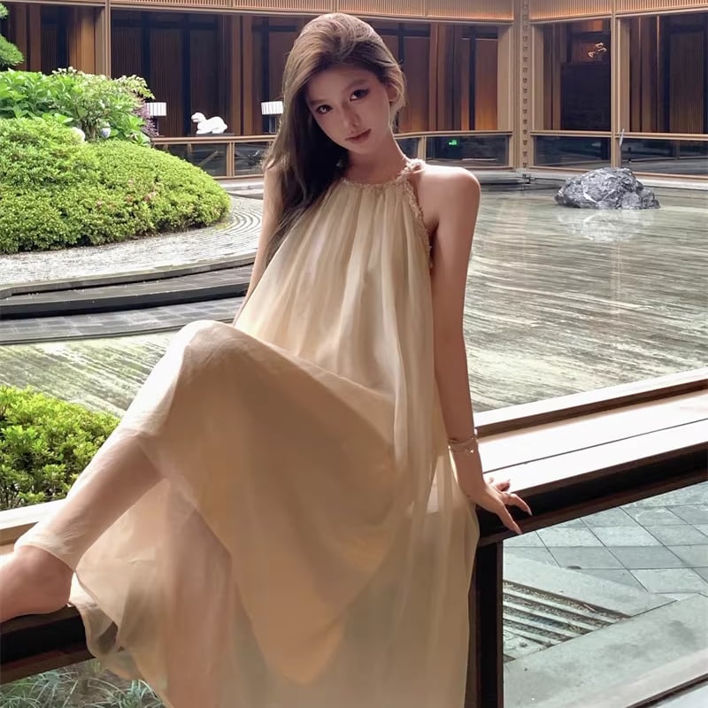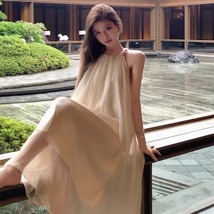 【dress】ホルターネックチュールロングワンピース Q8251