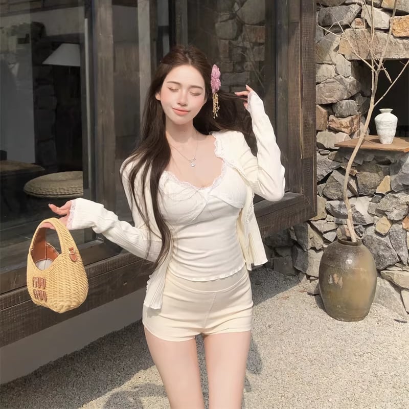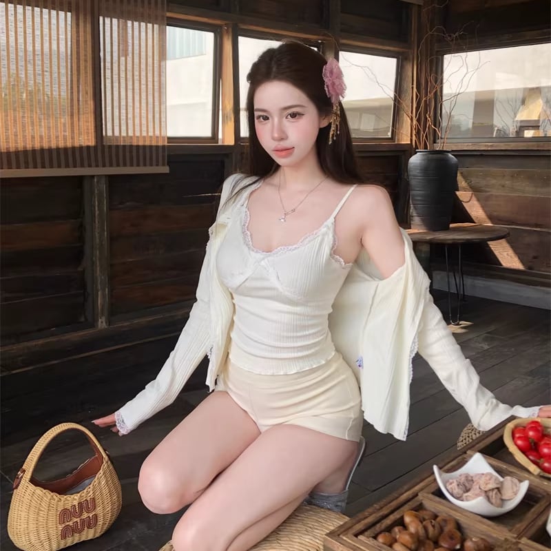 【set】レースドッキングキャミソール×カーディガンセット Q8272