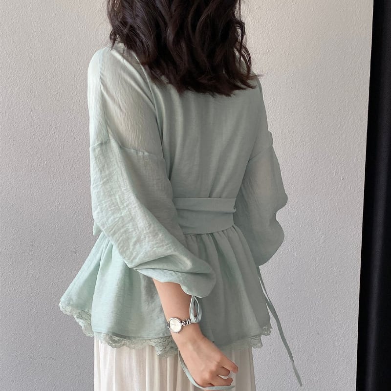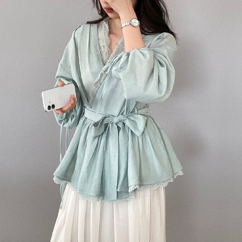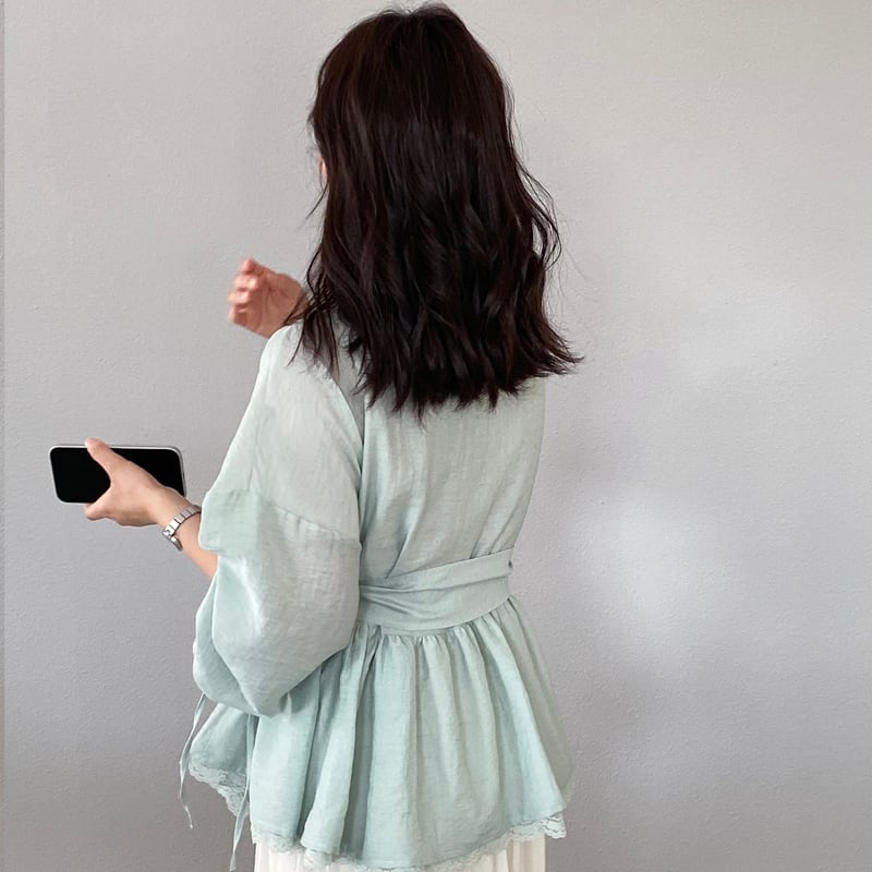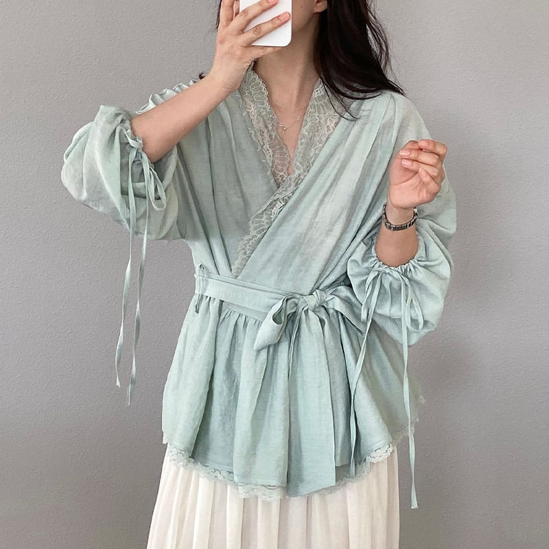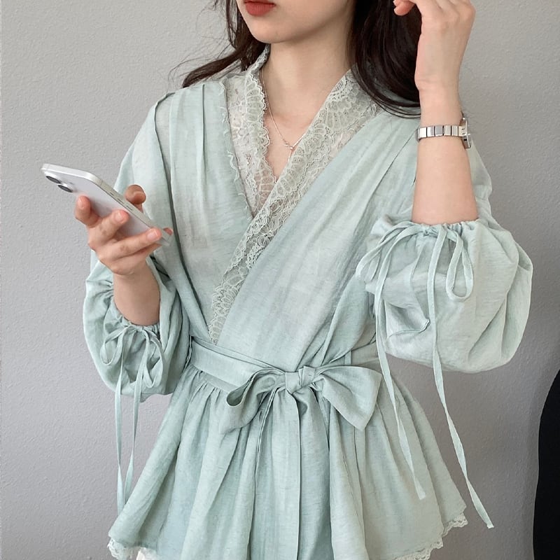 【tops】レースドッキングクロスネックトップス Q8282