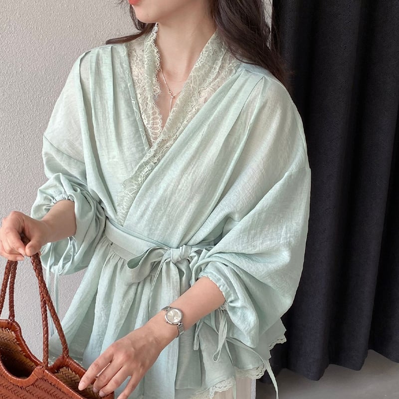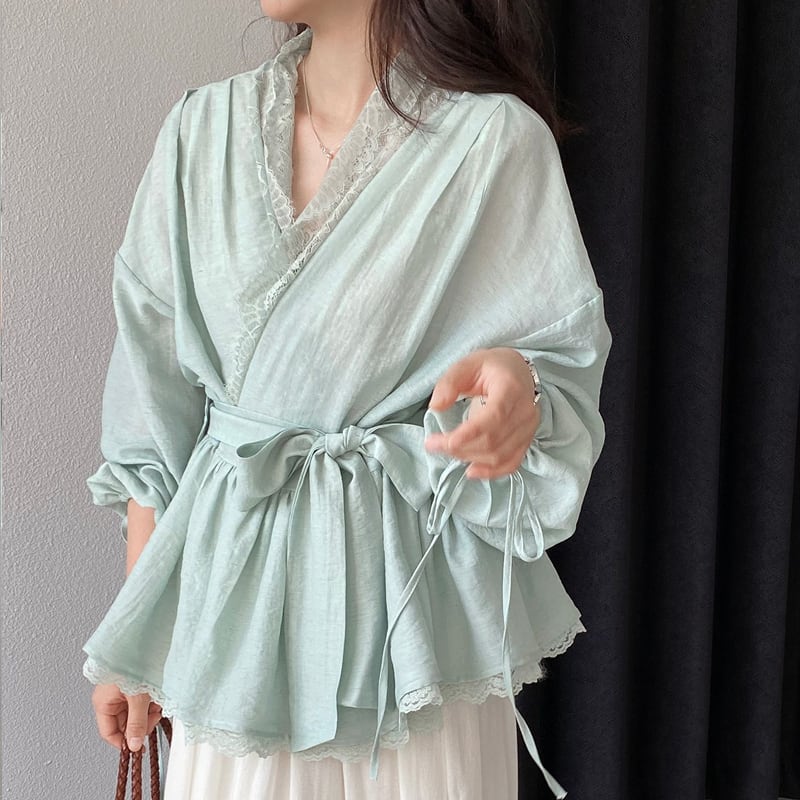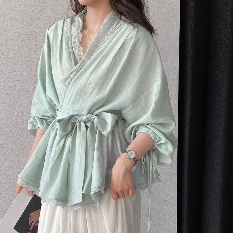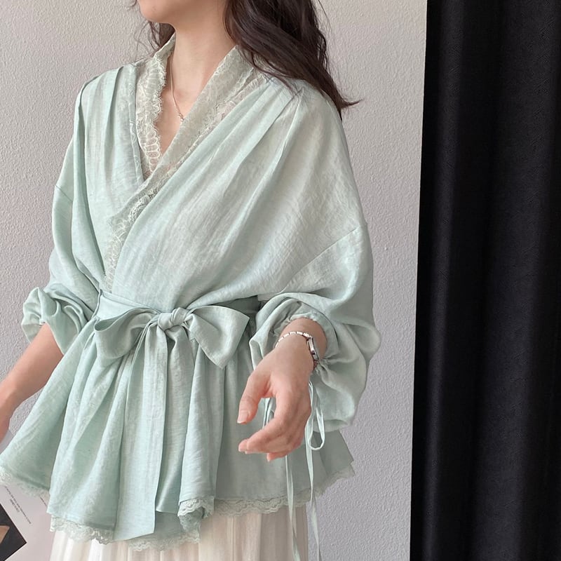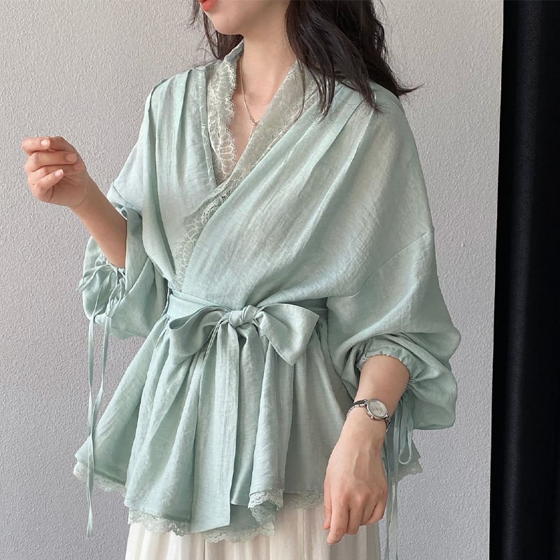 【tops】レースドッキングクロスネックトップス Q8282