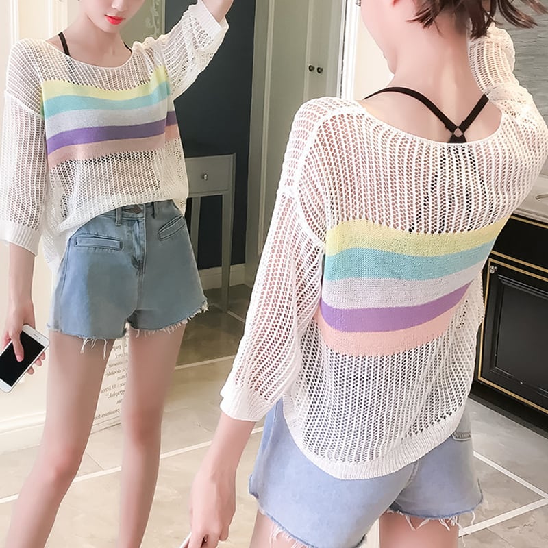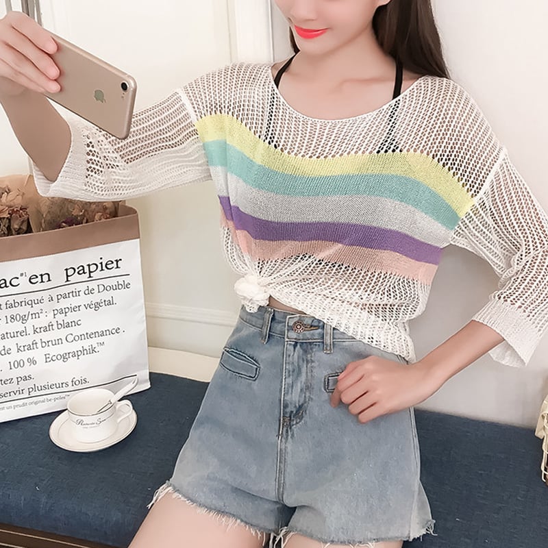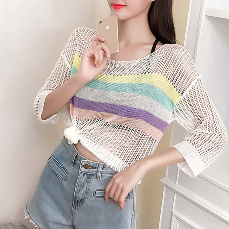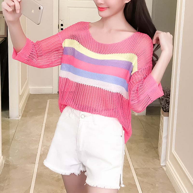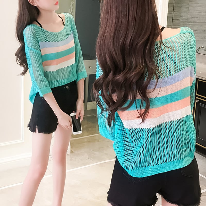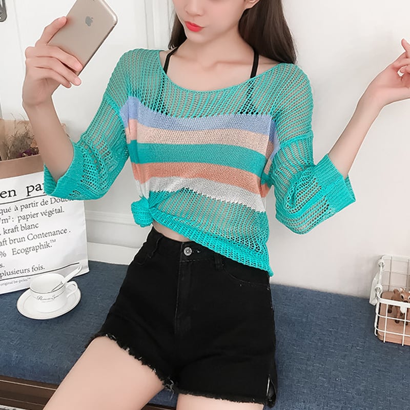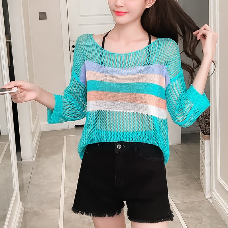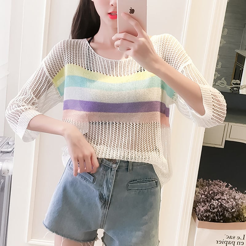 【tops】7 分袖透かしトップス Q8287