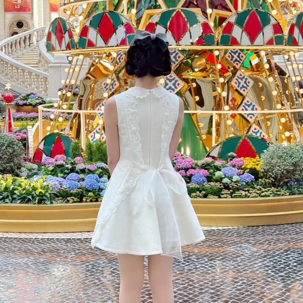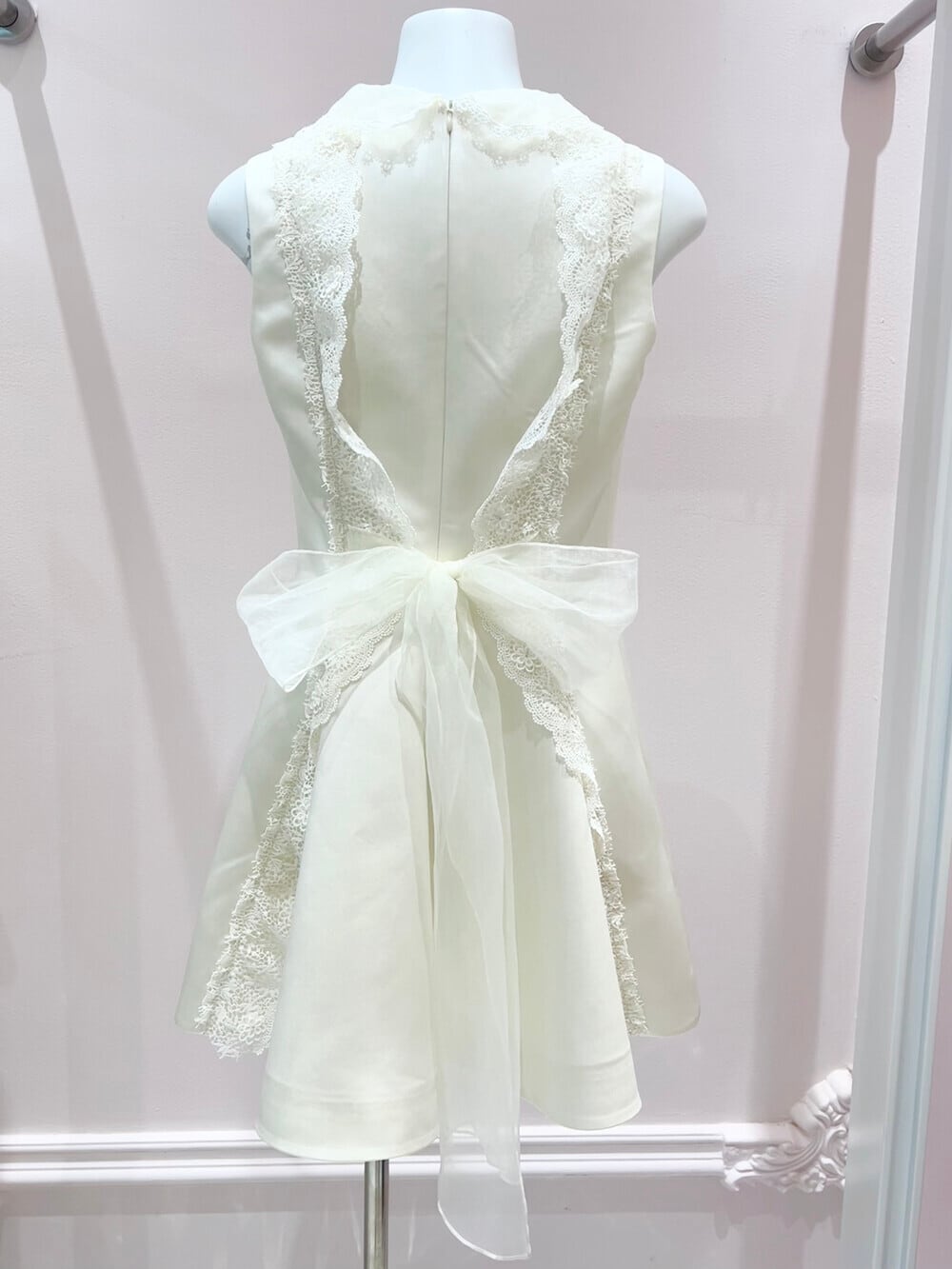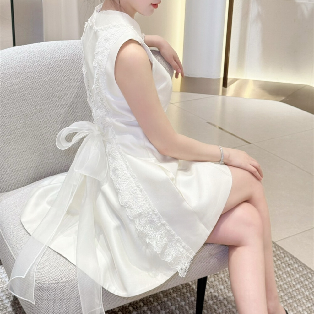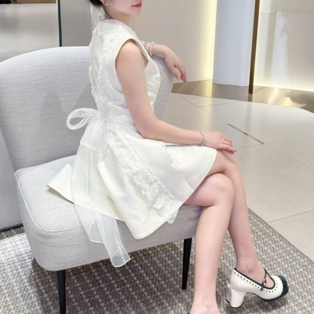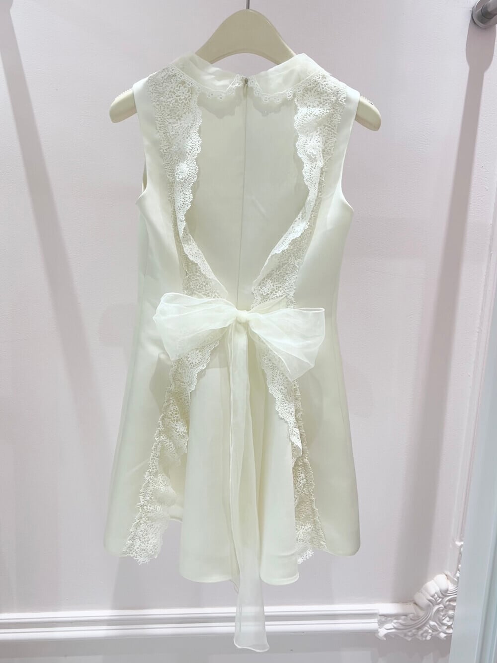 【dress】バックリボンレースドッキングミニワンピース N3535