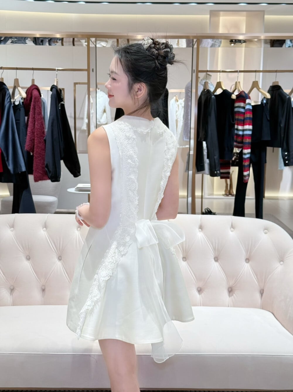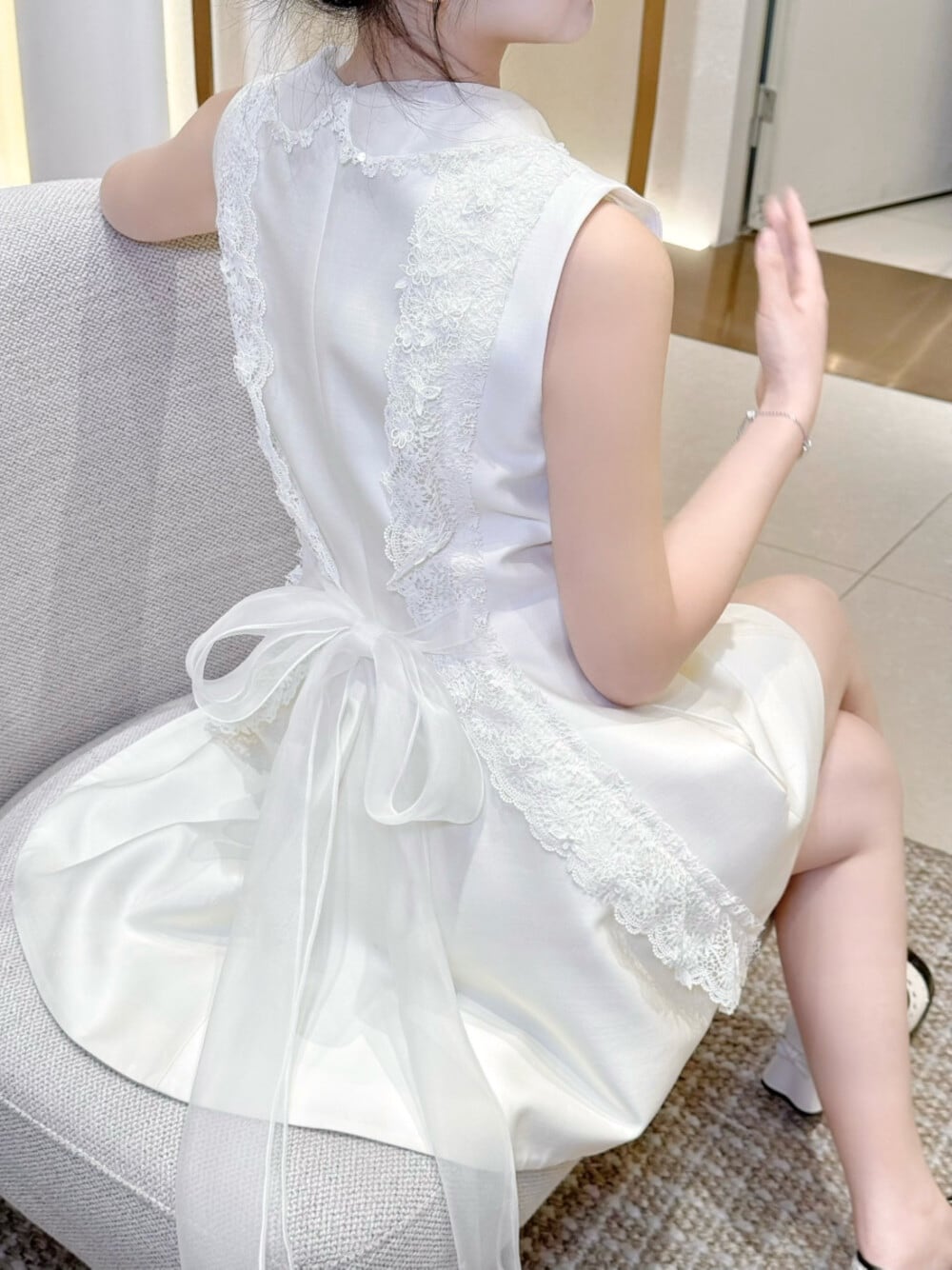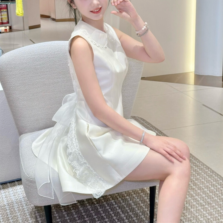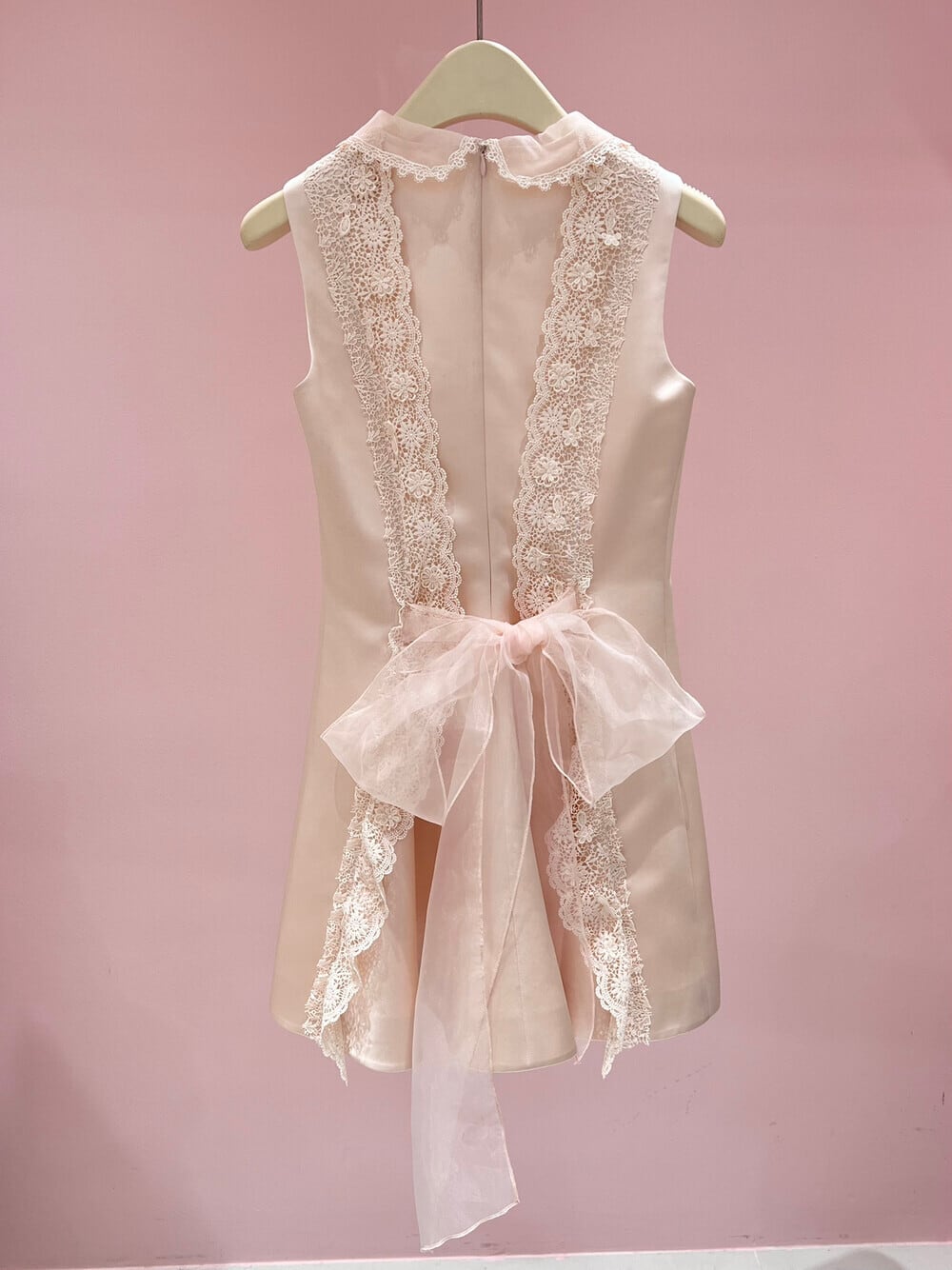 【dress】バックリボンレースドッキングミニワンピース N3535