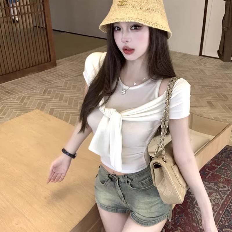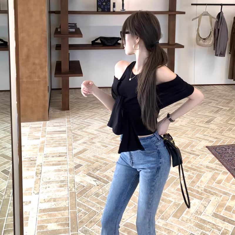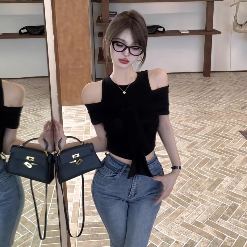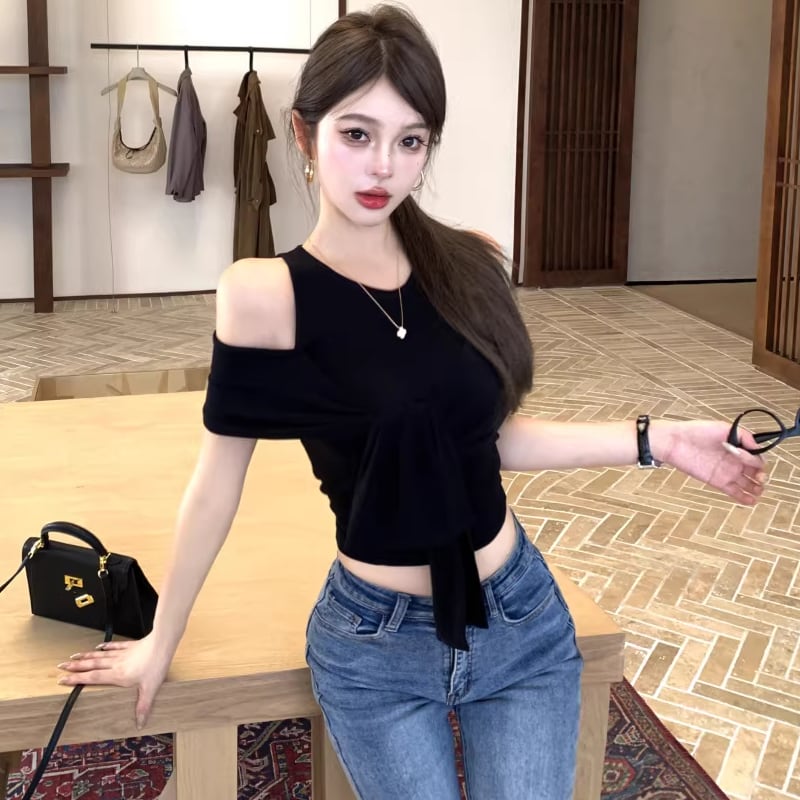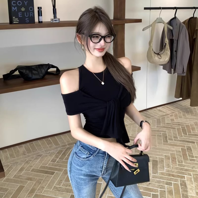 【tops】オープンショルダーフェイクレイヤードトップス Q8296
