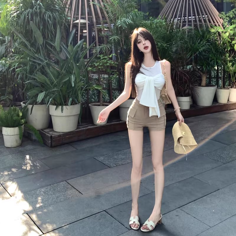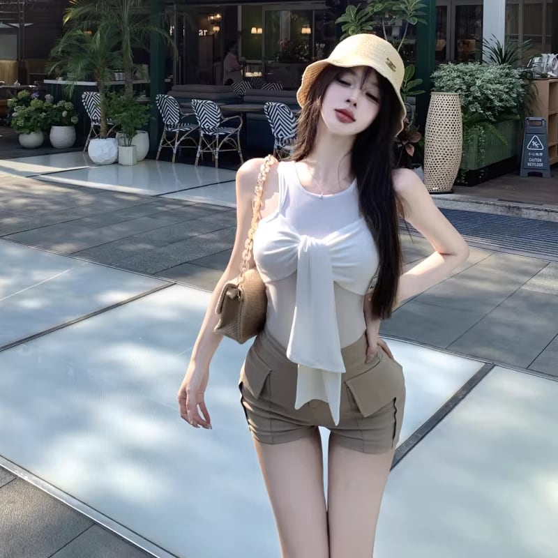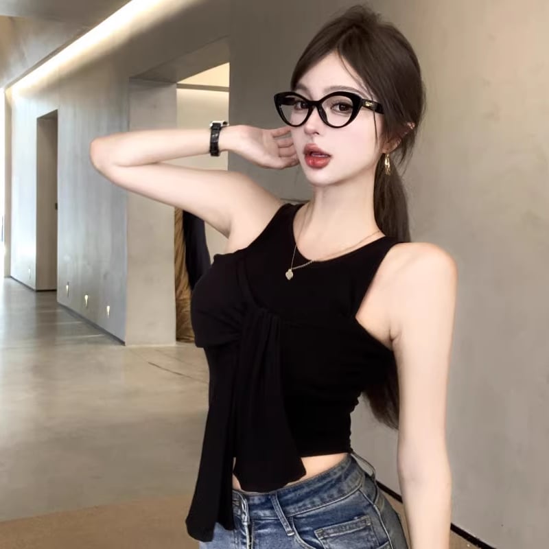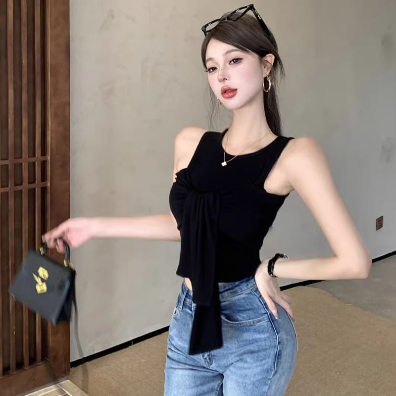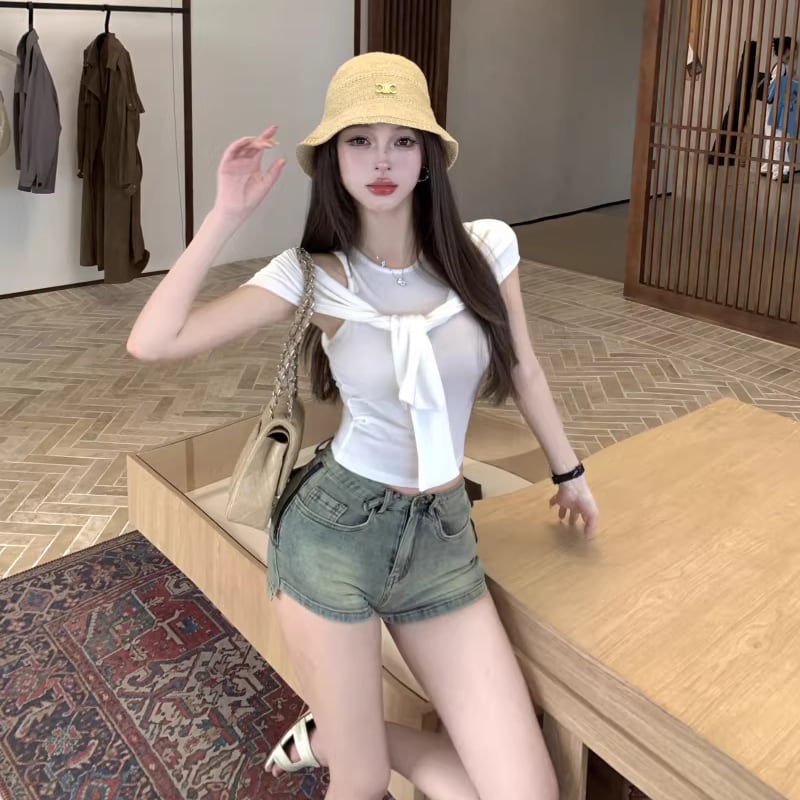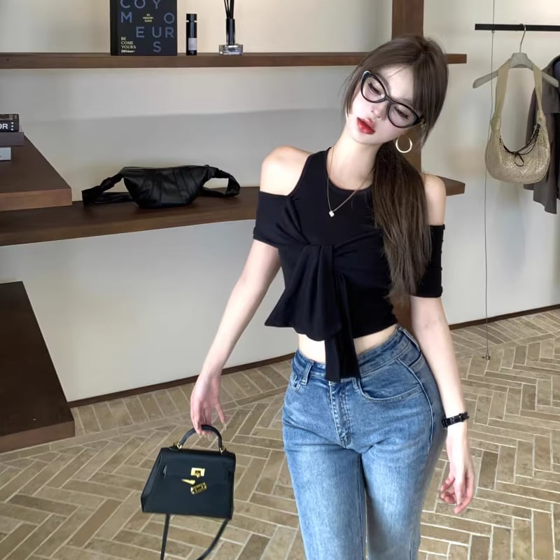 【tops】オープンショルダーフェイクレイヤードトップス Q8296