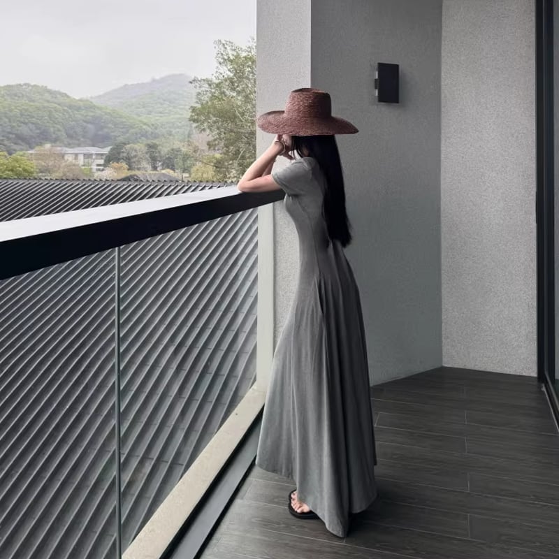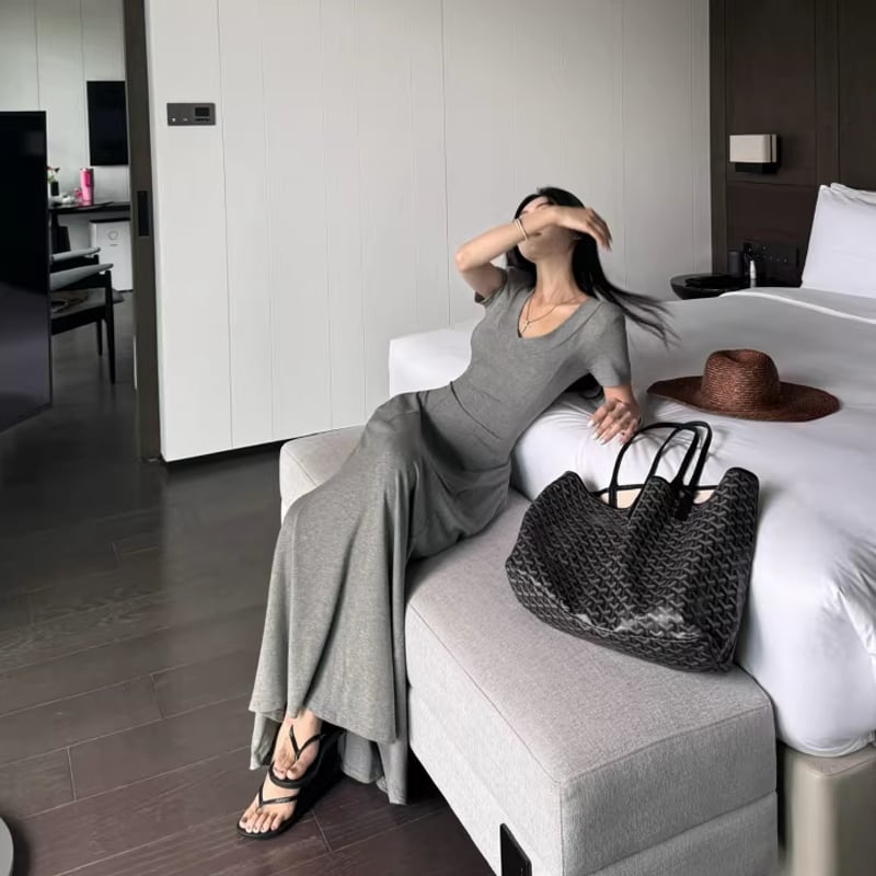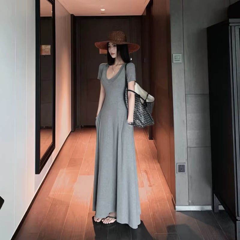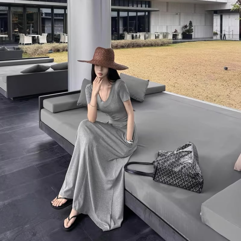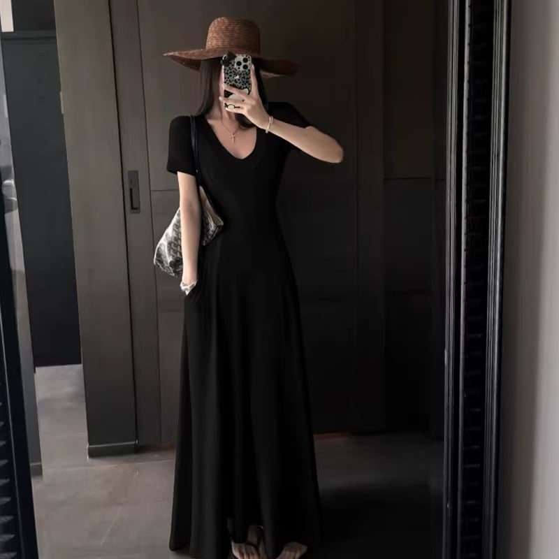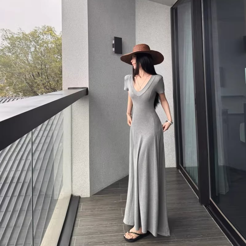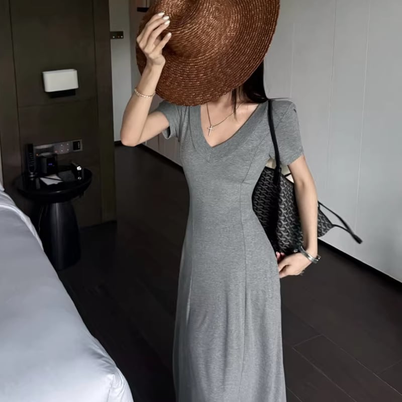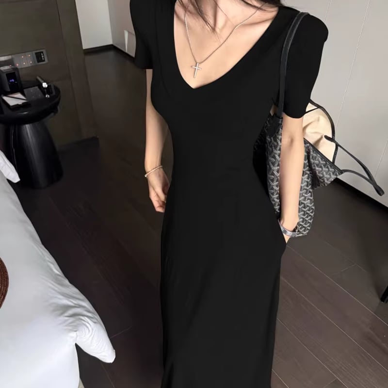 【dress】Vネックタイトロングワンピース Q8302