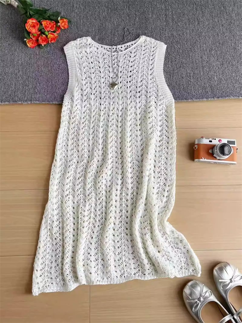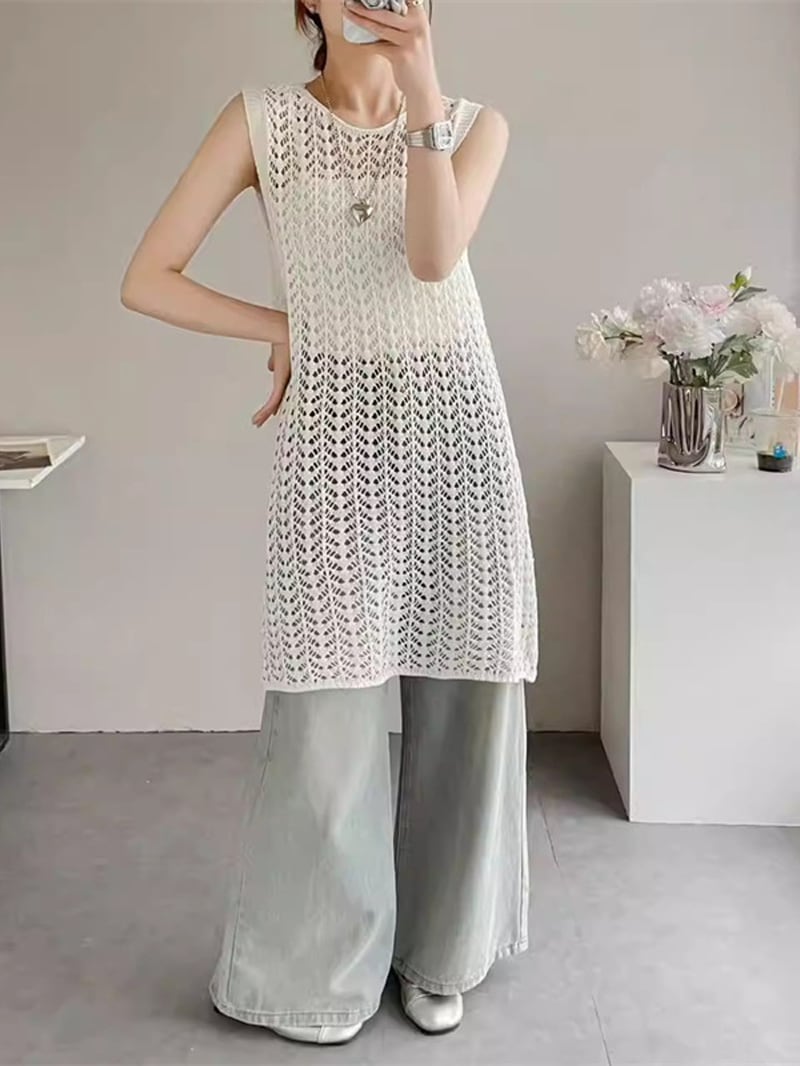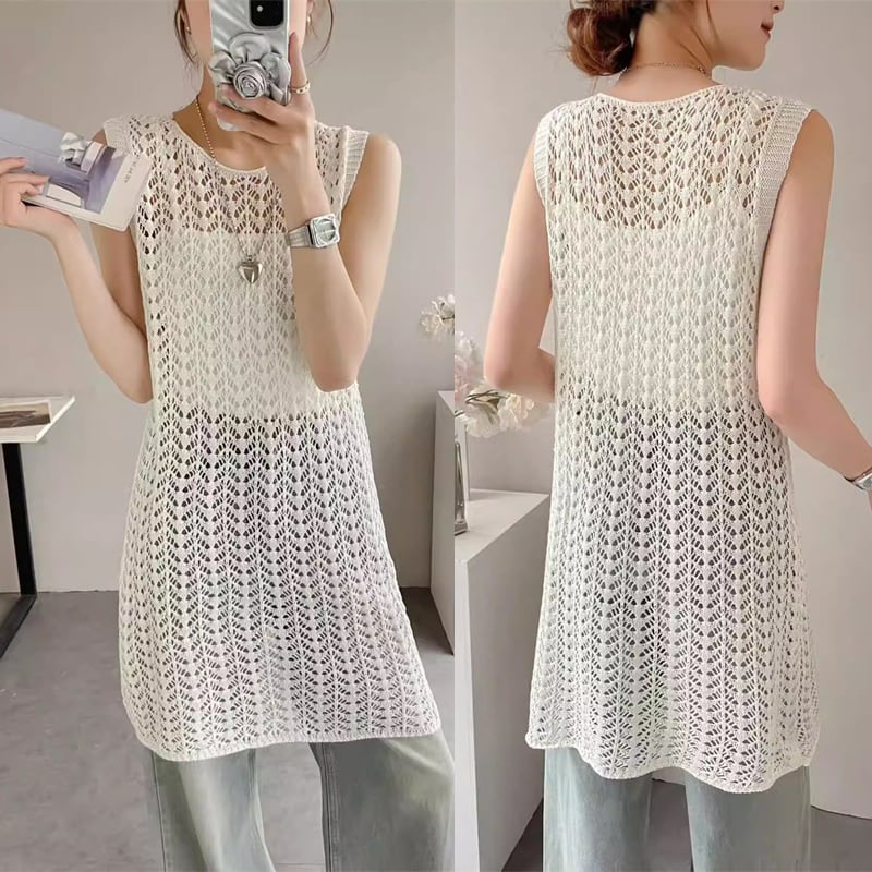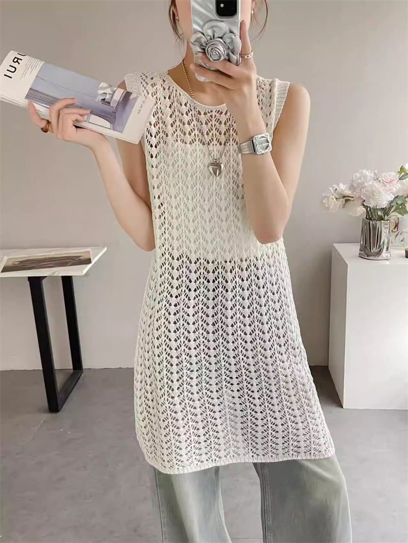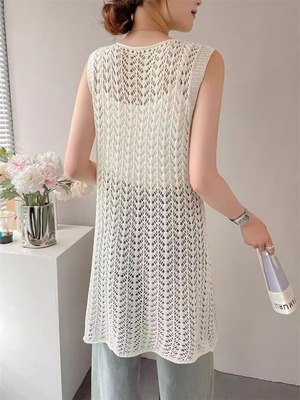 【tops】透かしロングニットベスト Q8310