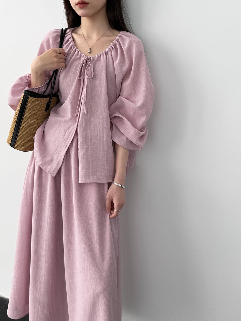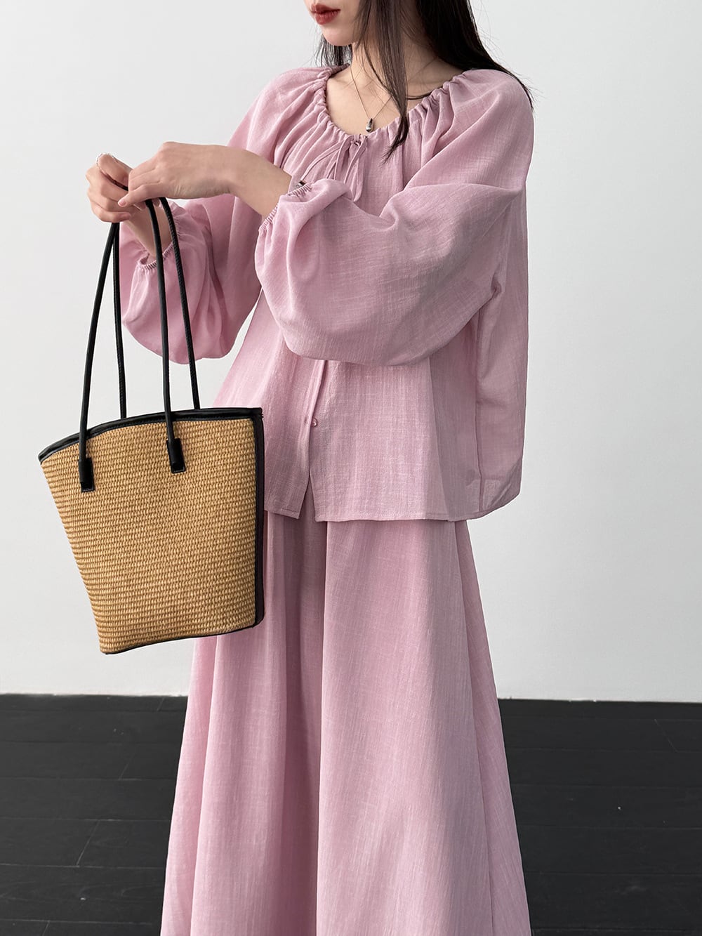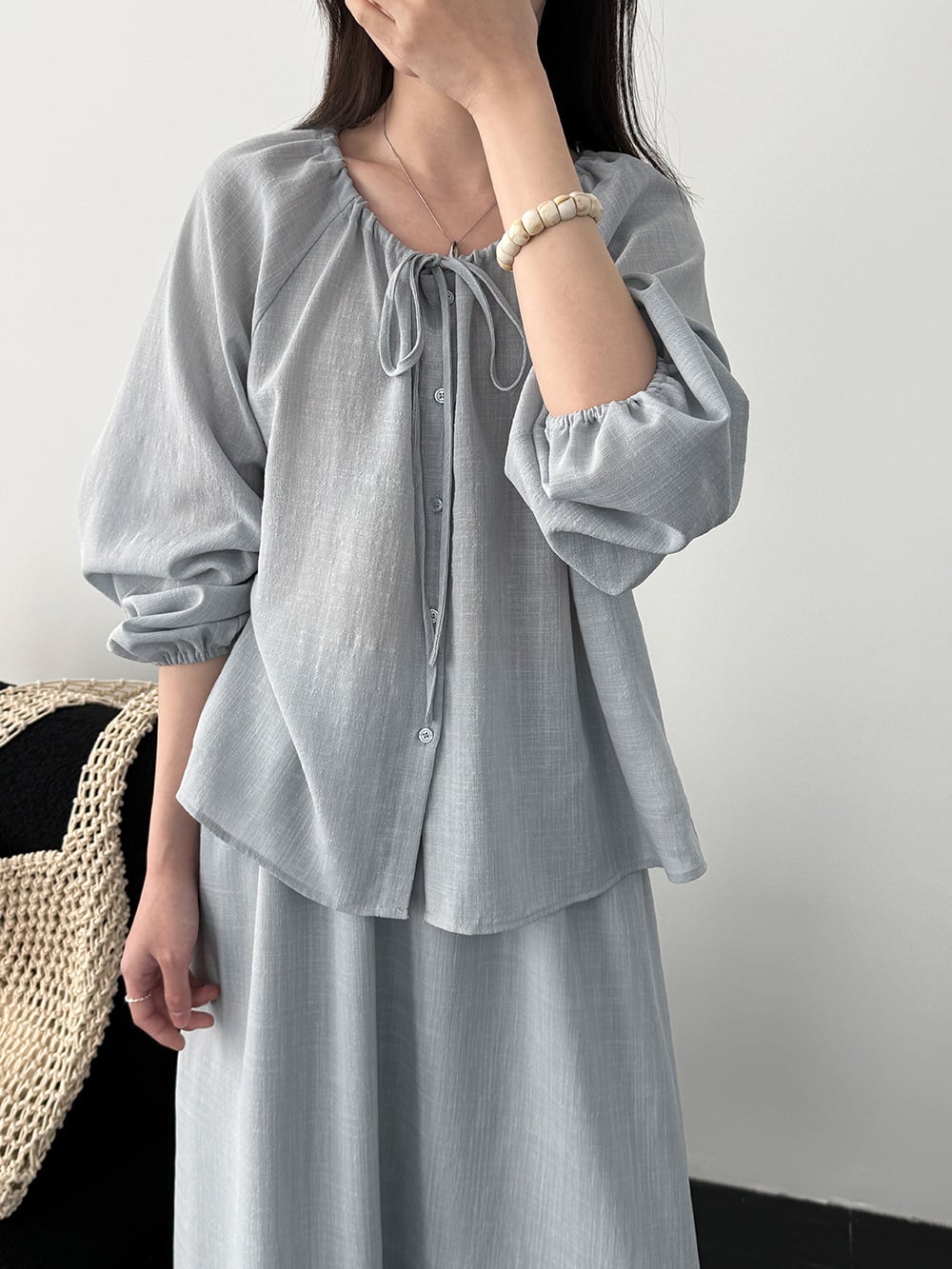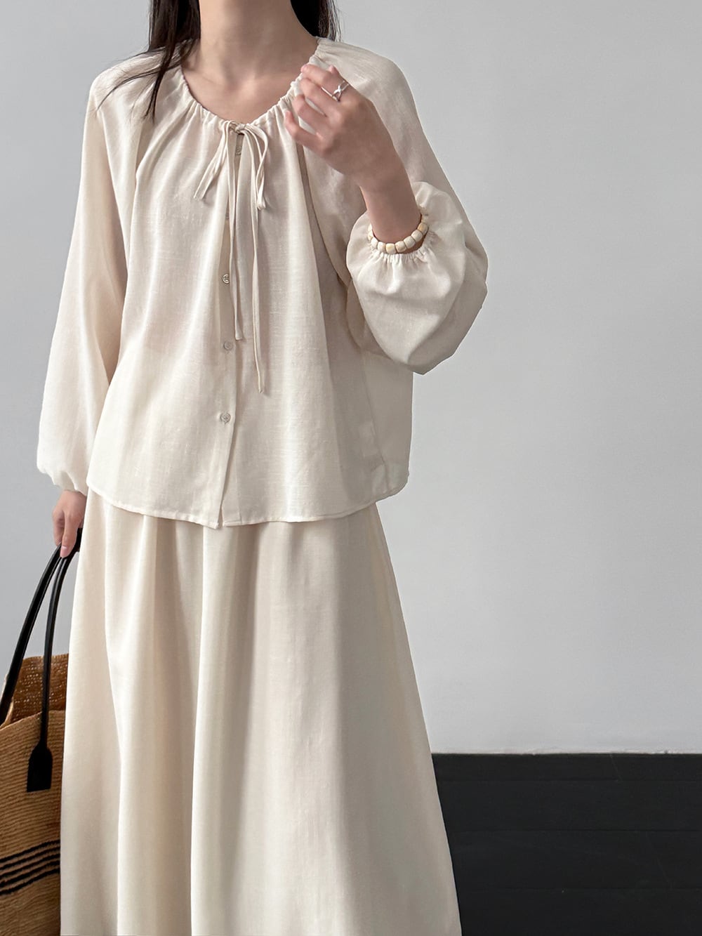 【set】リボン付きトップス×ロングスカートセット Q8324