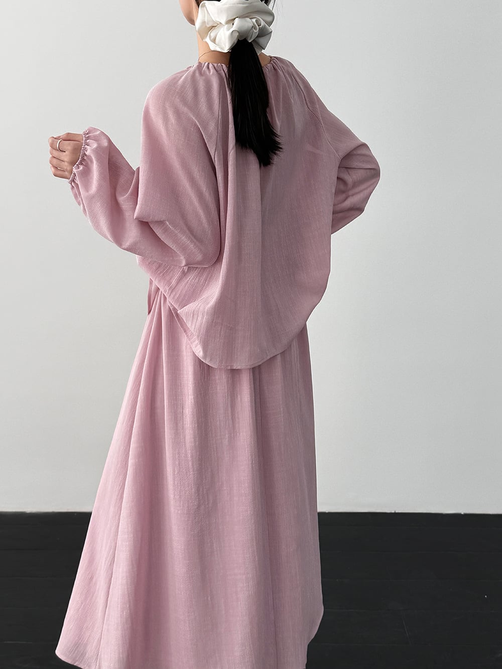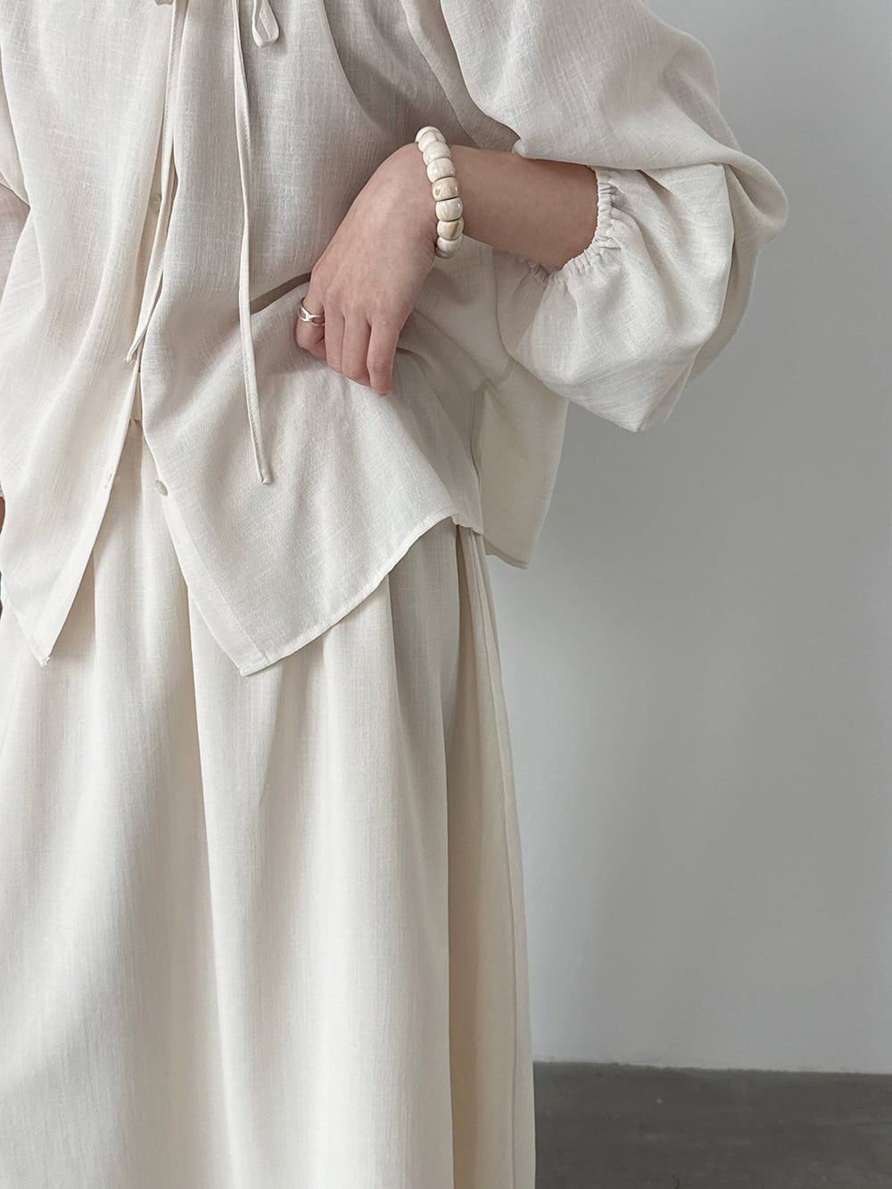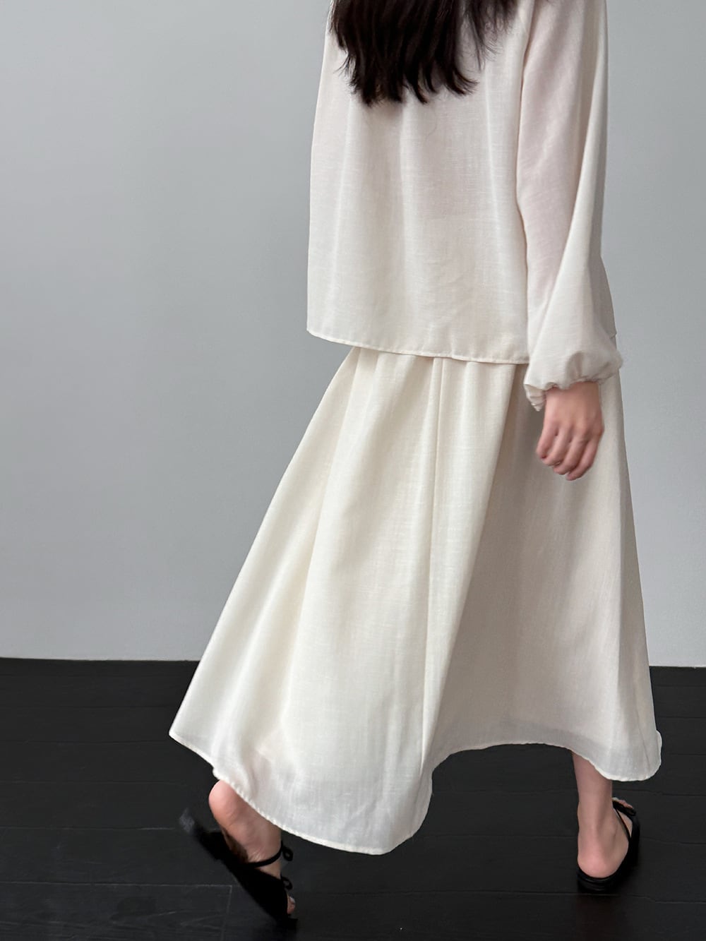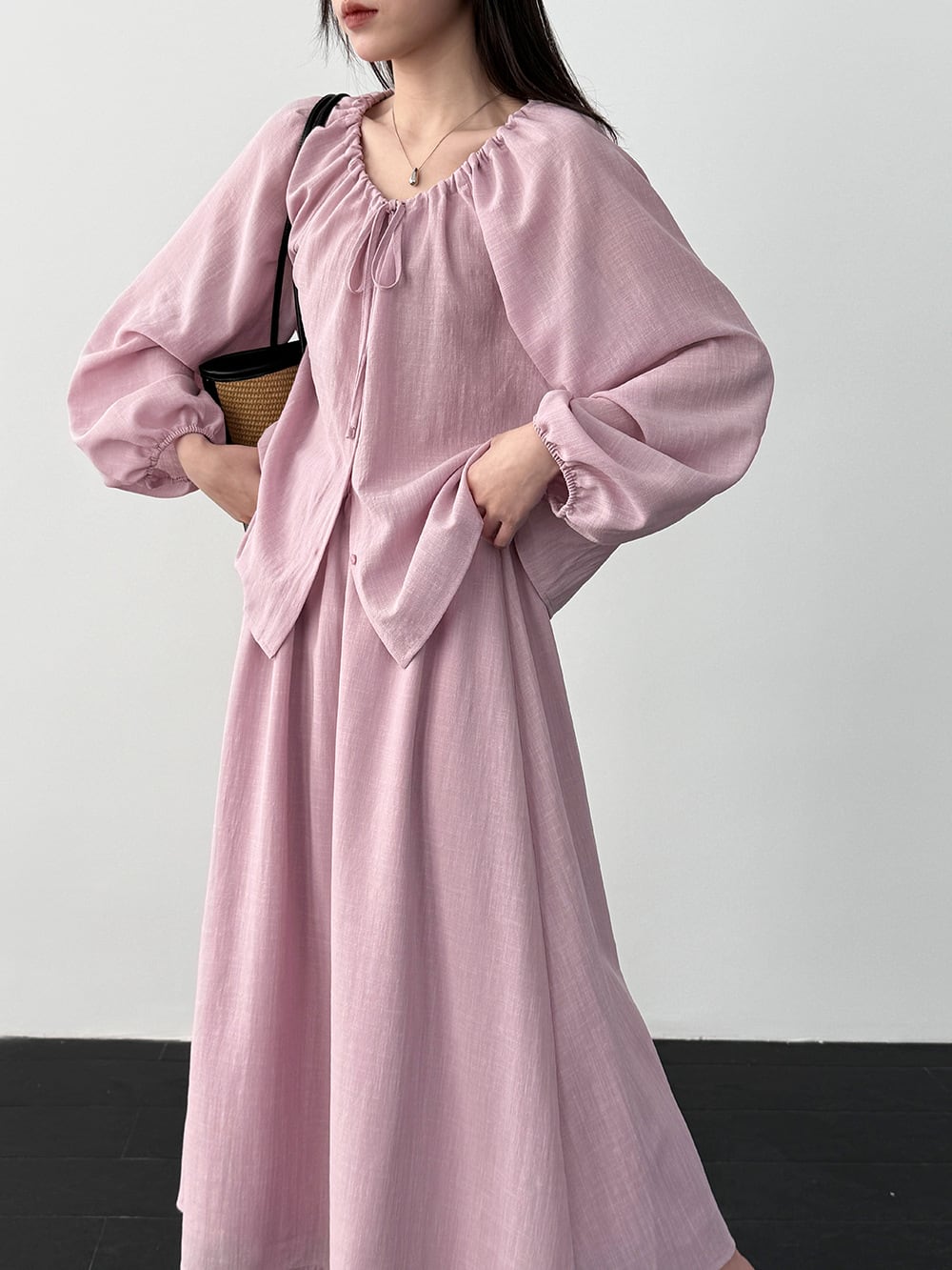 【set】リボン付きトップス×ロングスカートセット Q8324