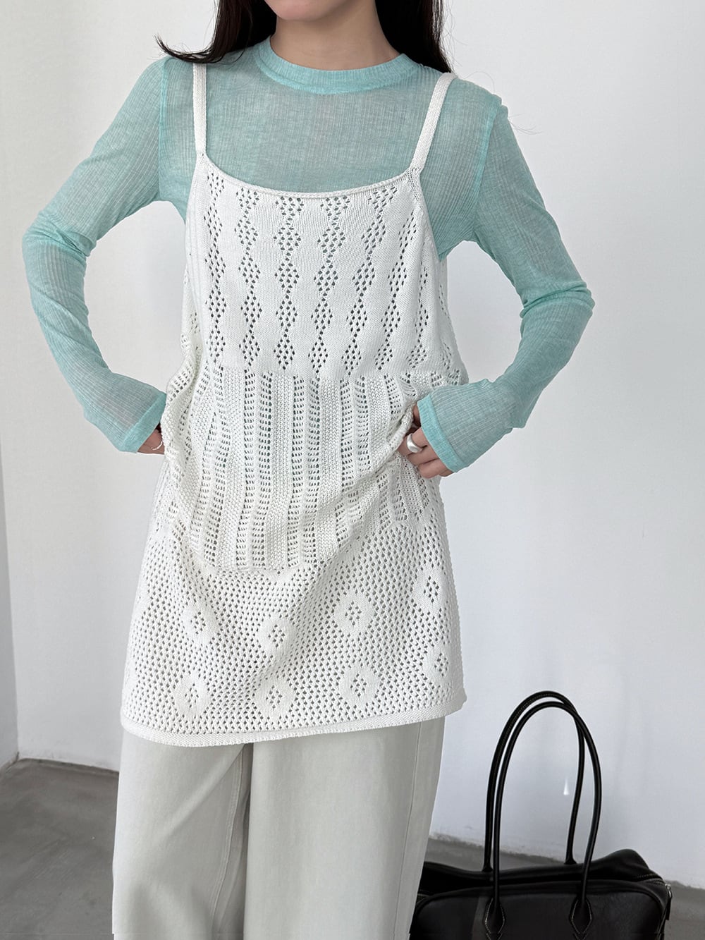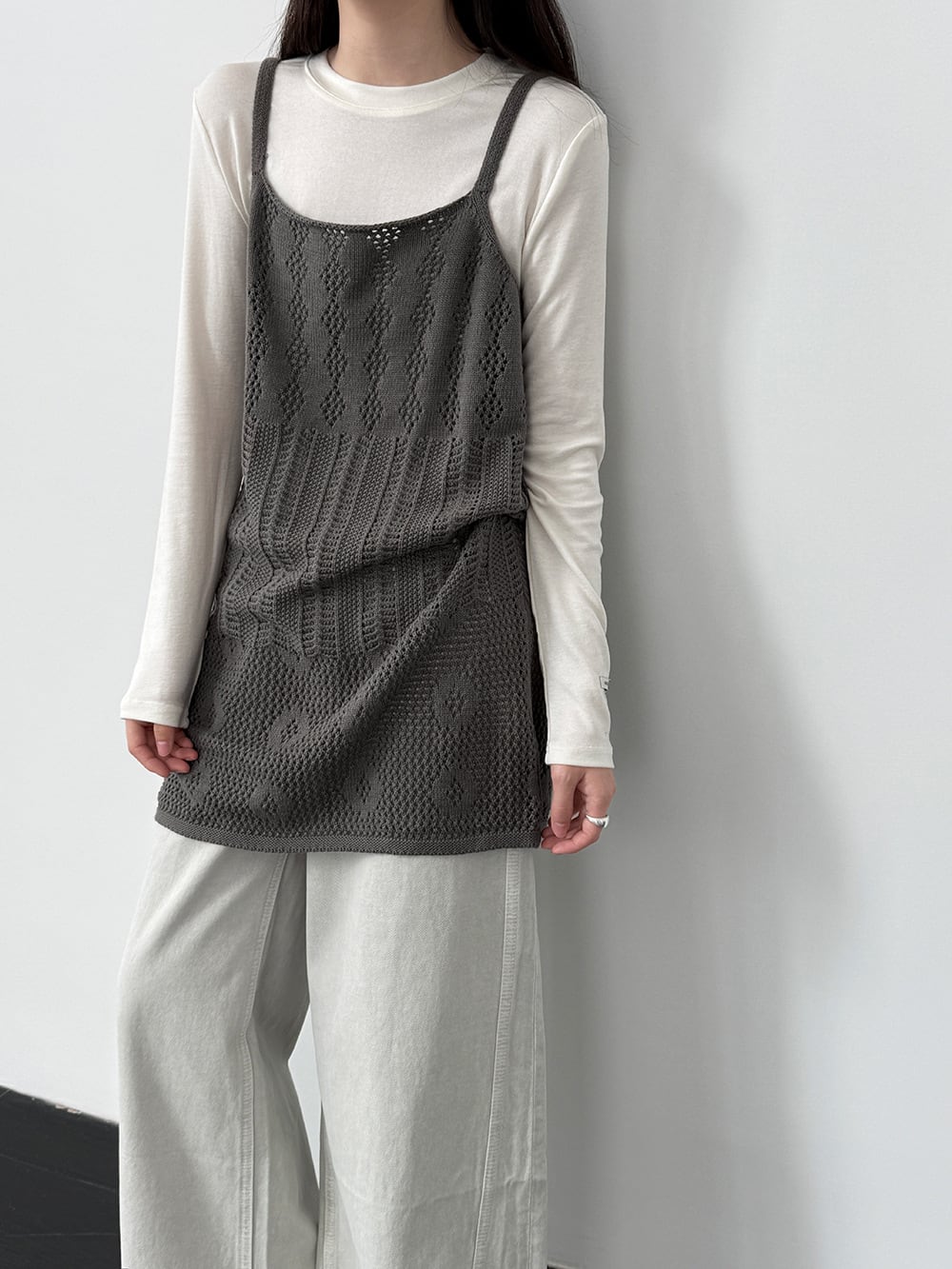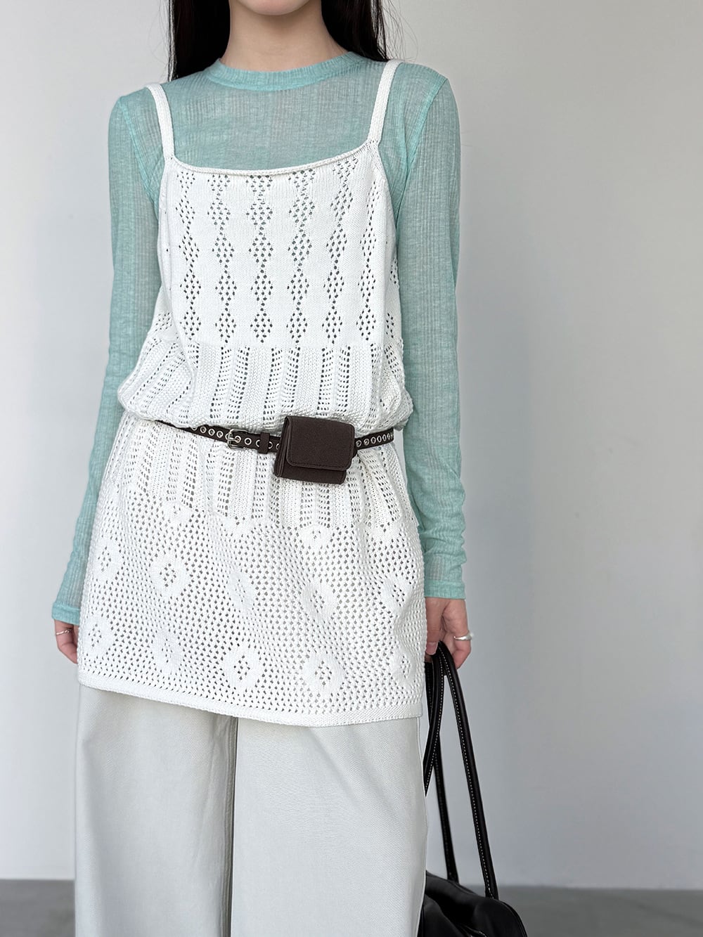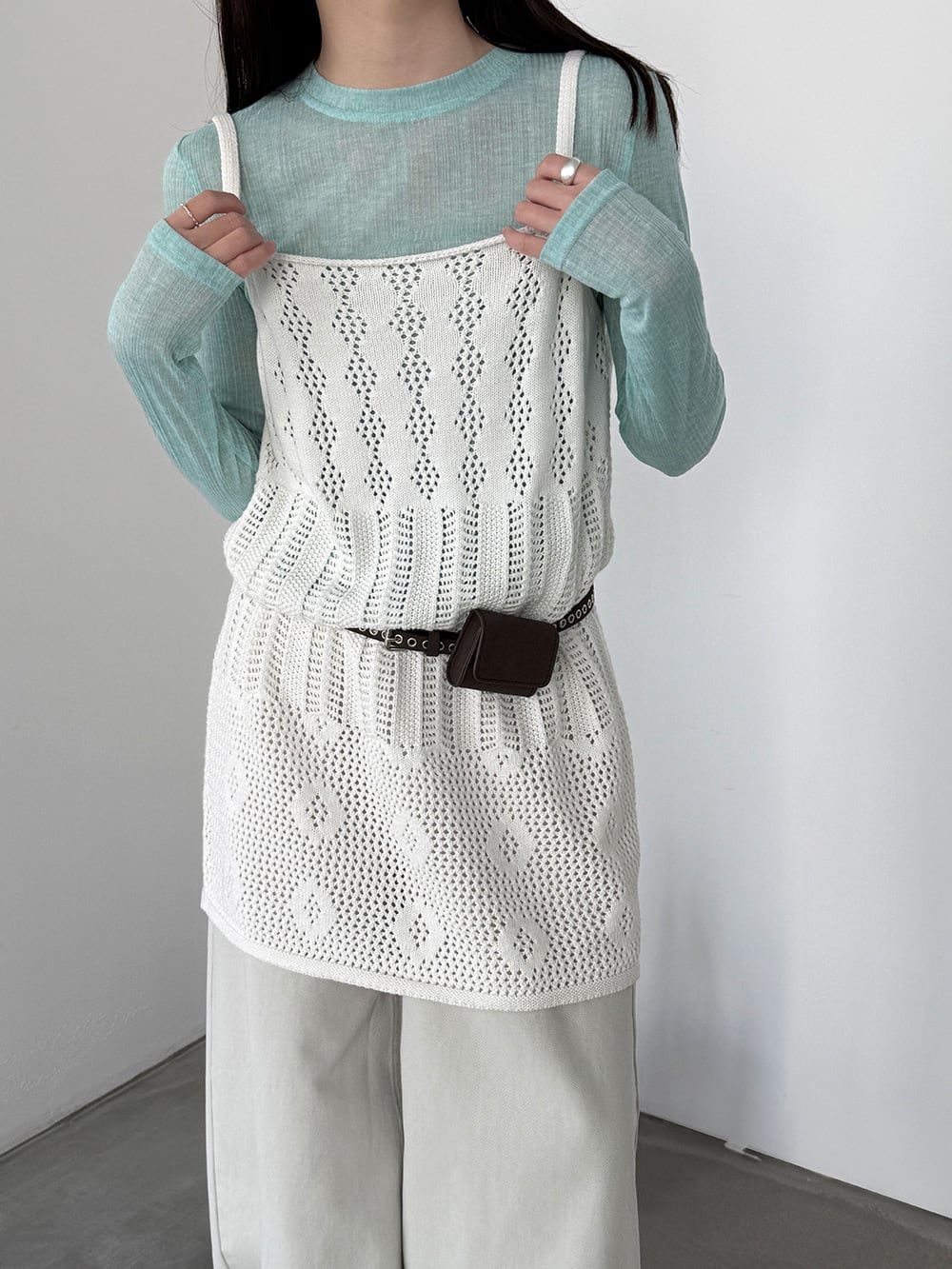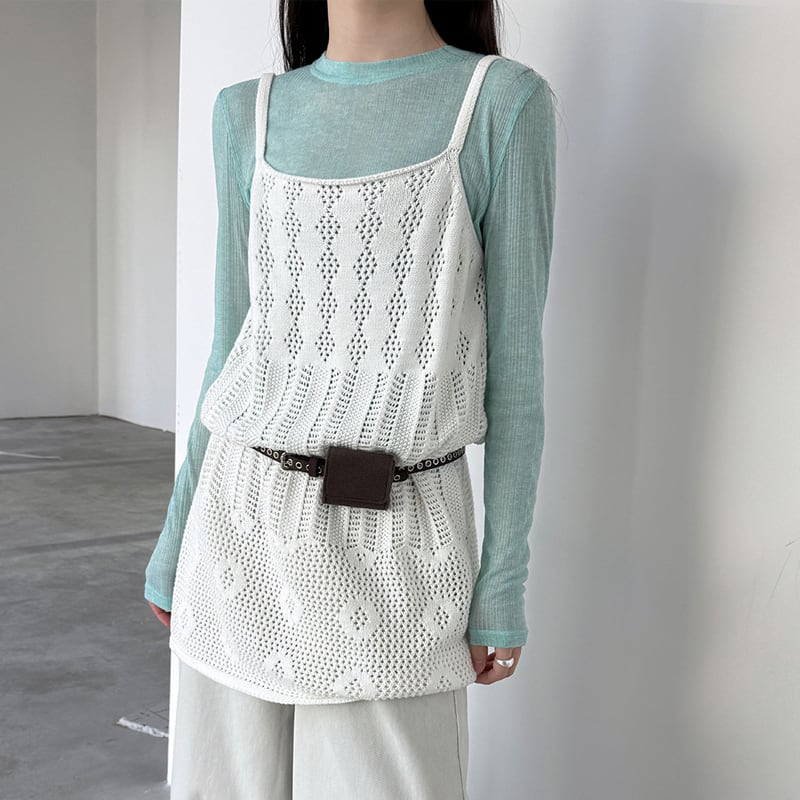 【tops】透かしニットキャミソール Q8326