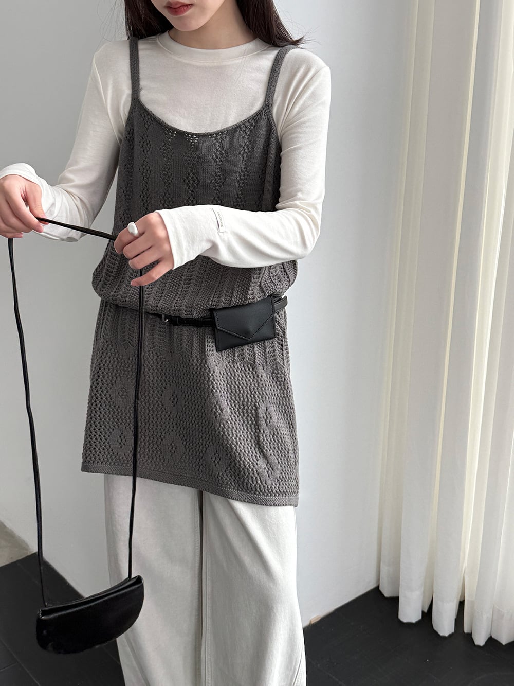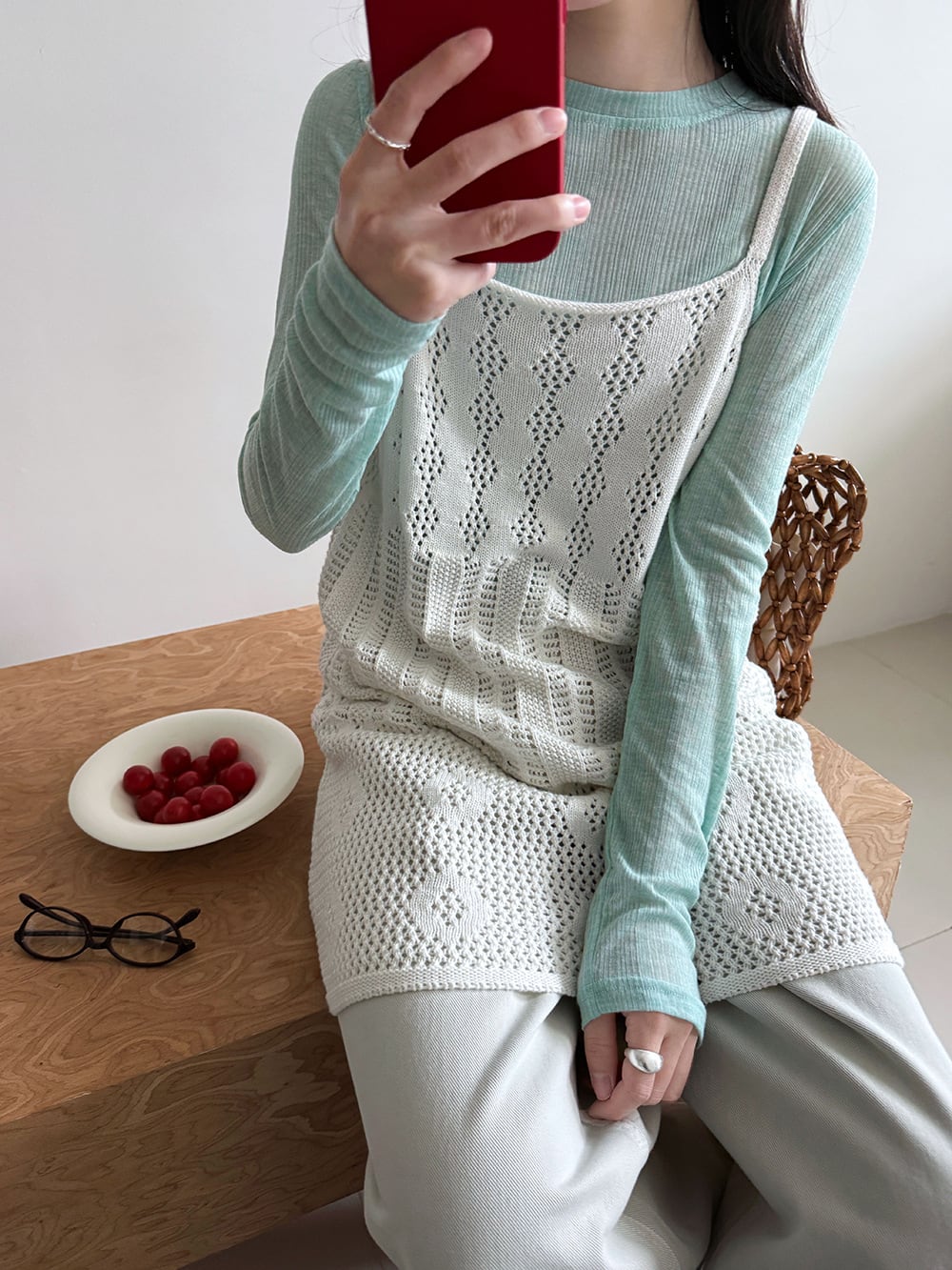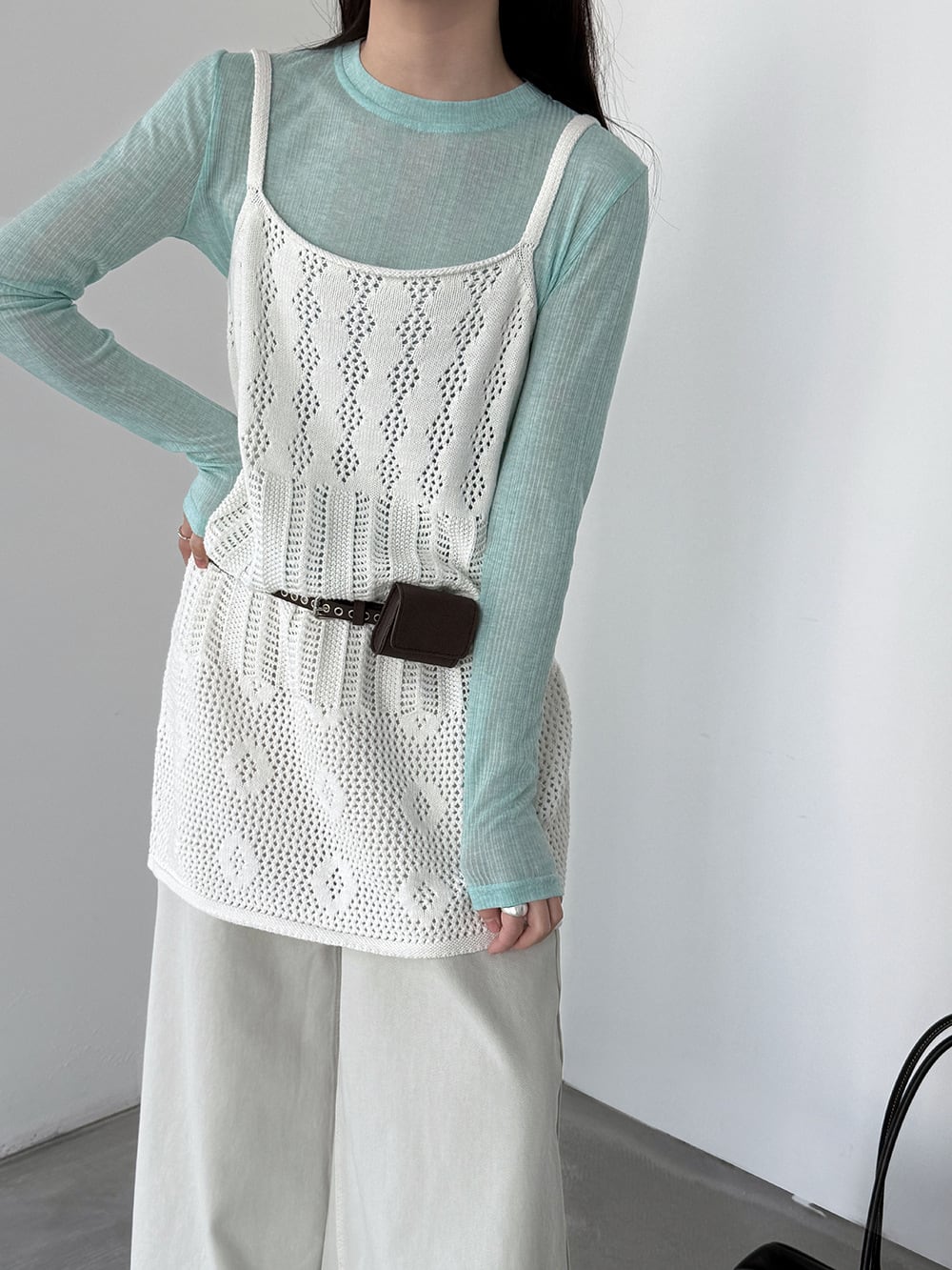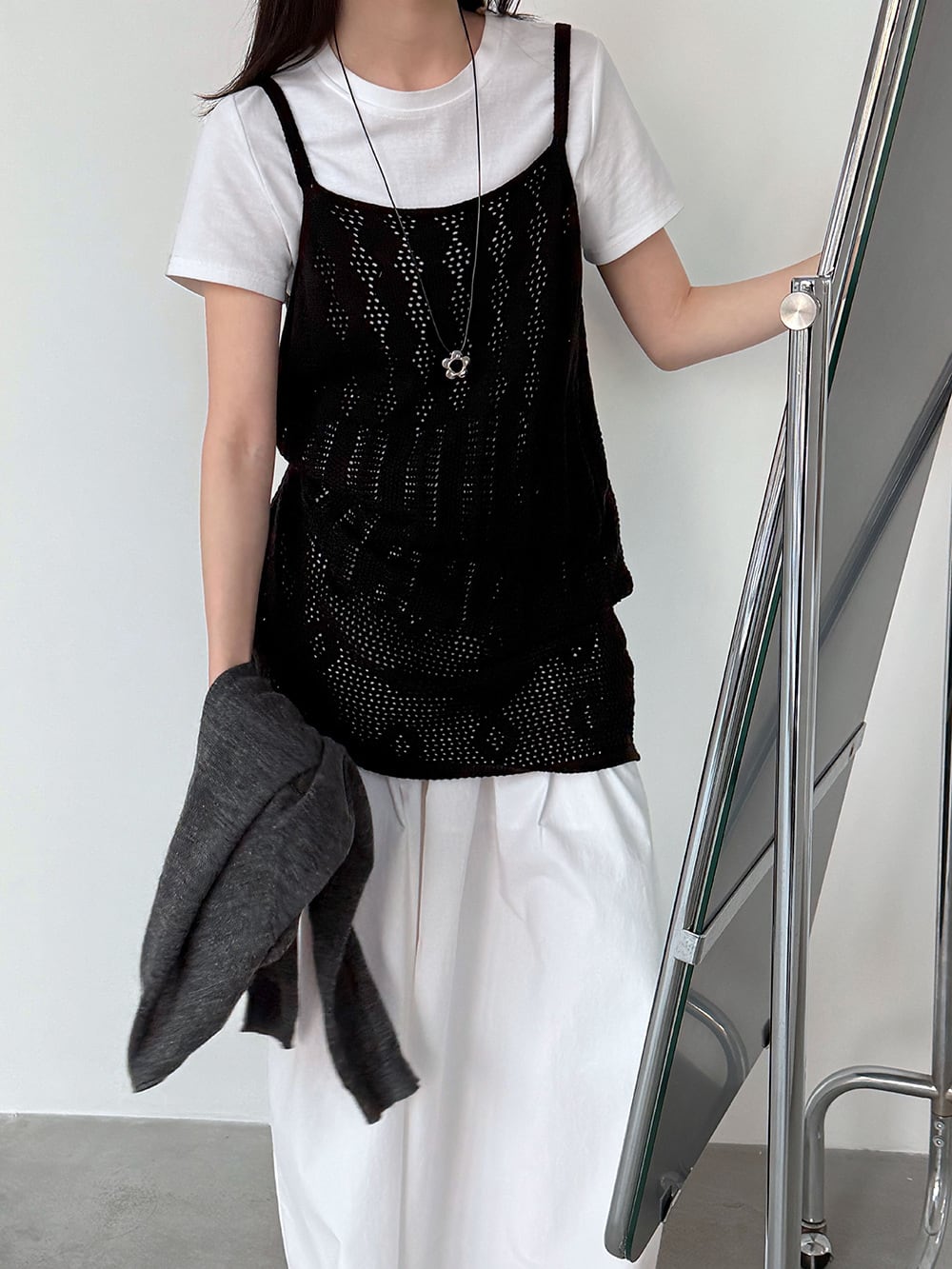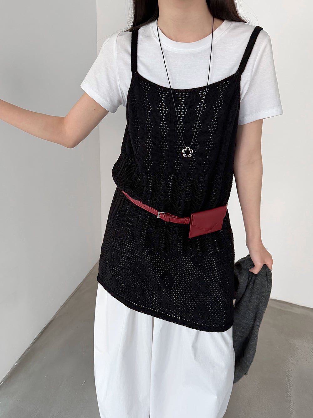 【tops】透かしニットキャミソール Q8326