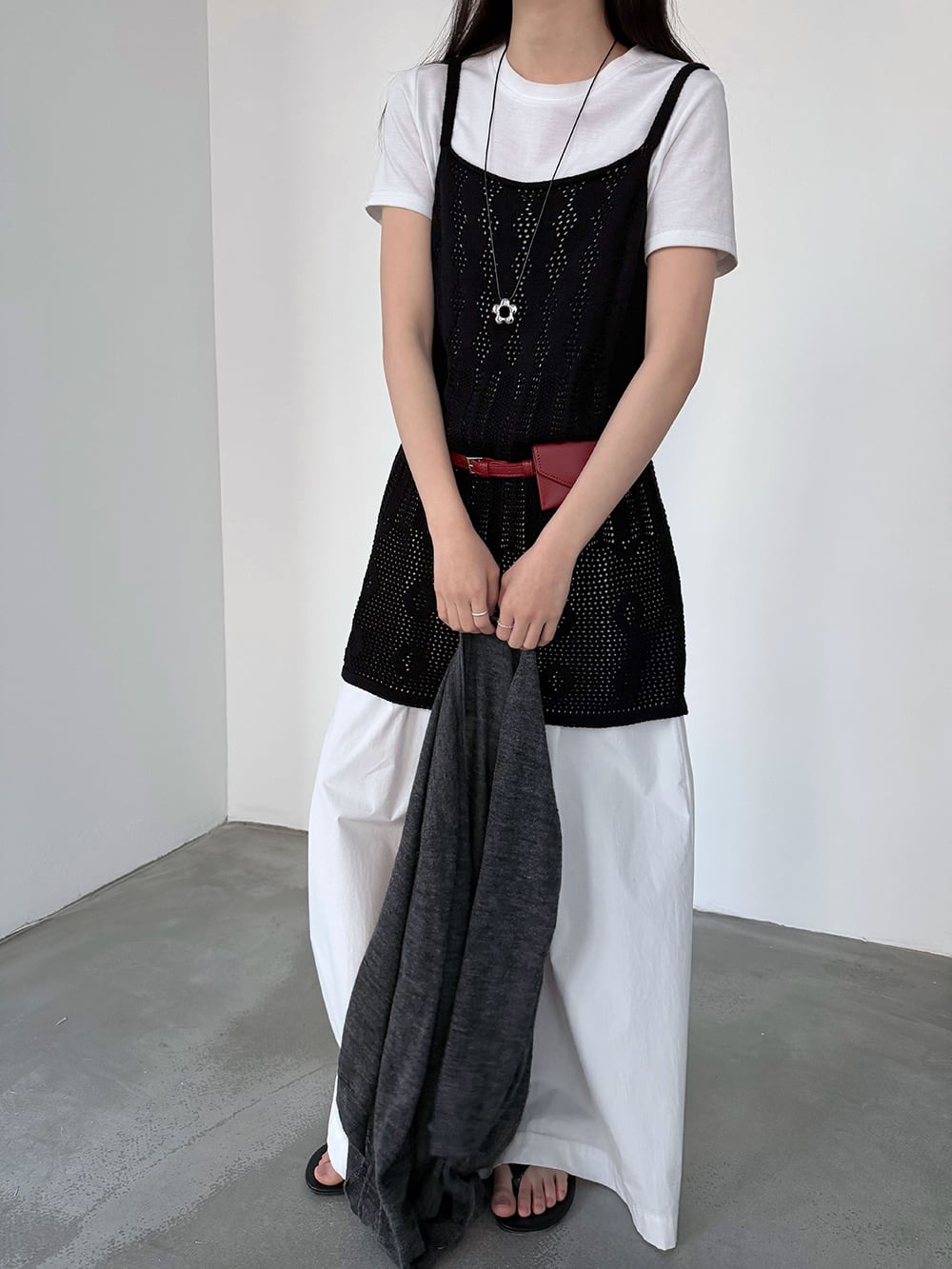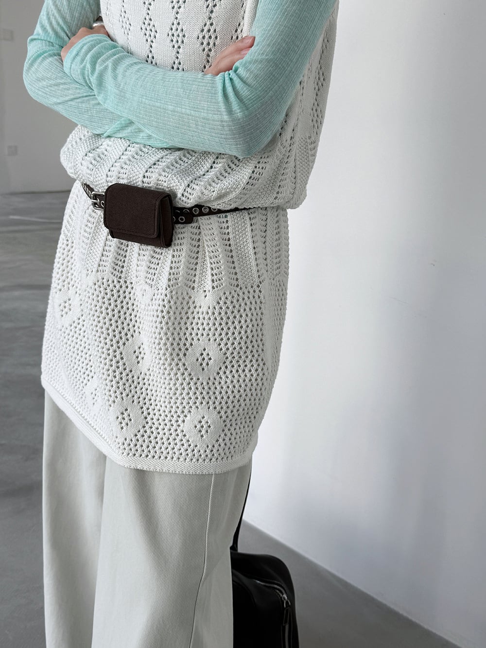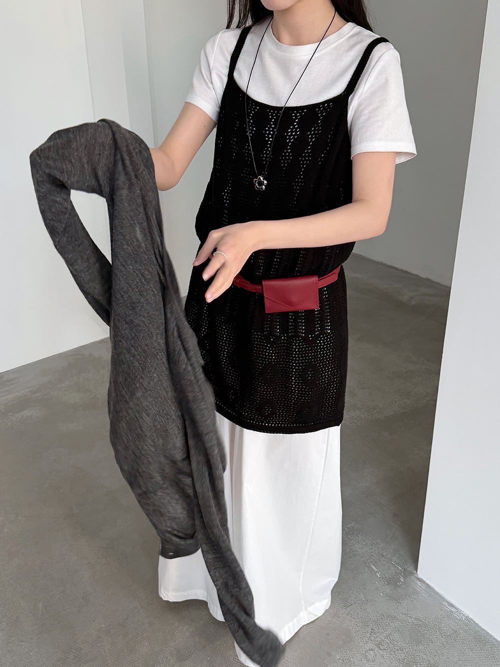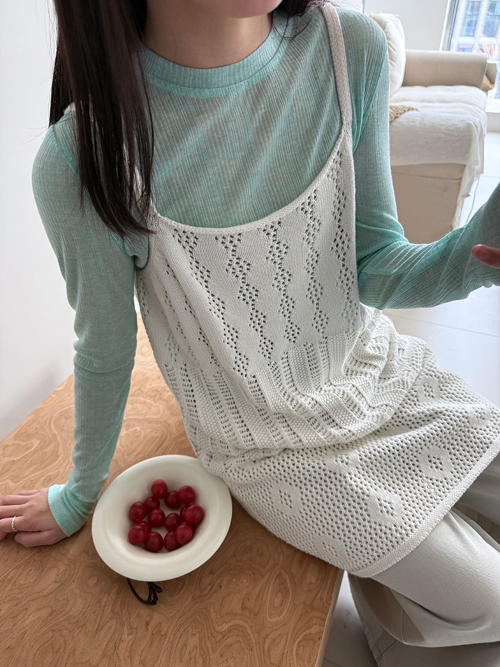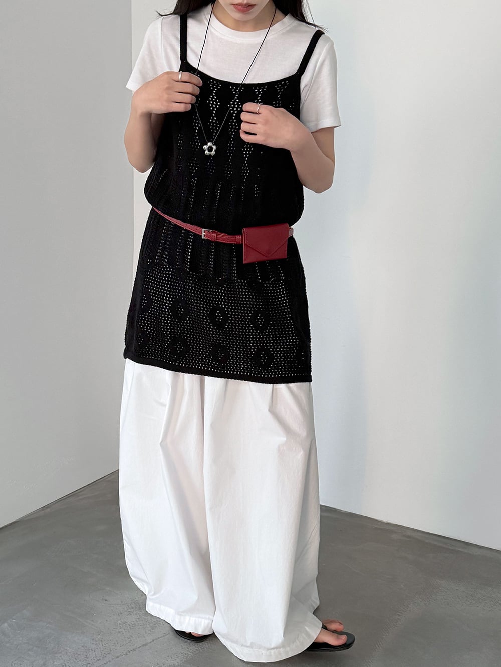 【tops】透かしニットキャミソール Q8326