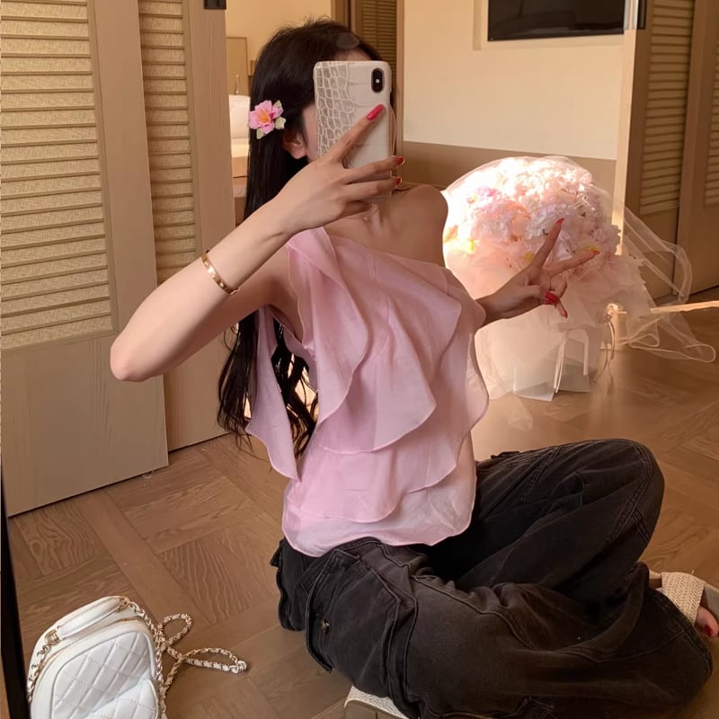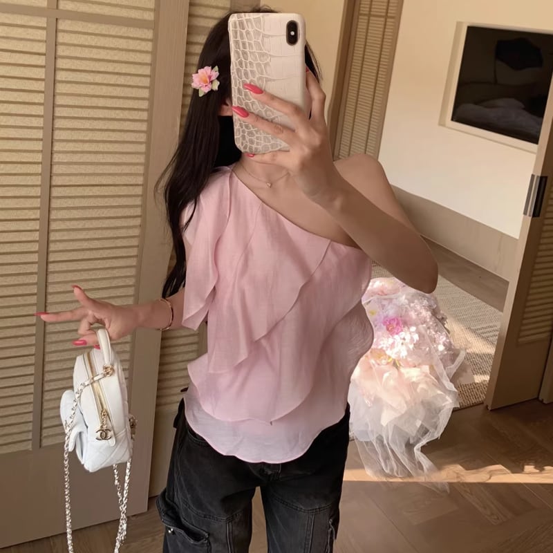 【tops】ワンショルダーフリルトップス Q8329