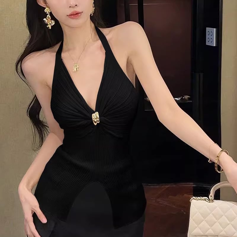 【tops】ホルターネックニットトップス Q8333