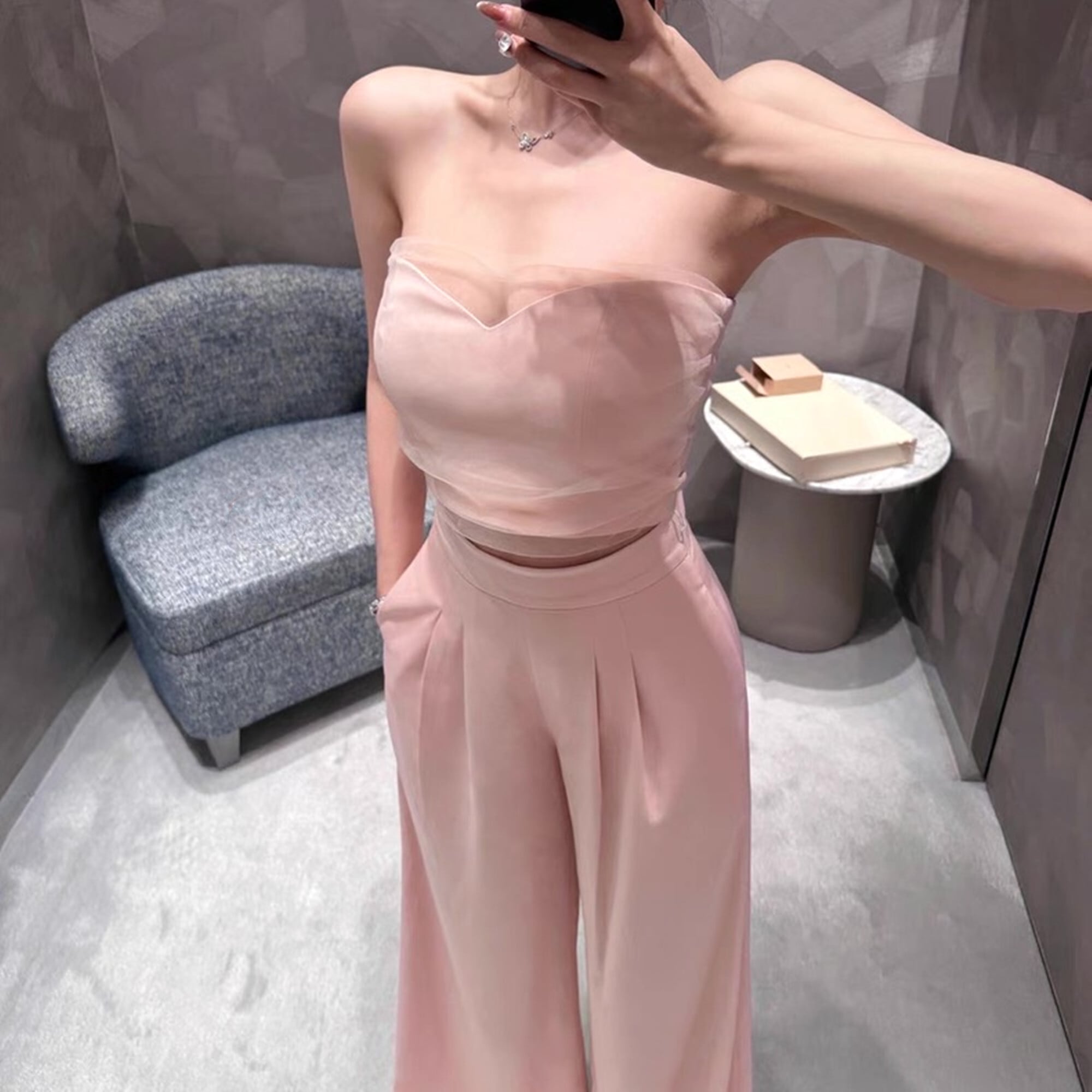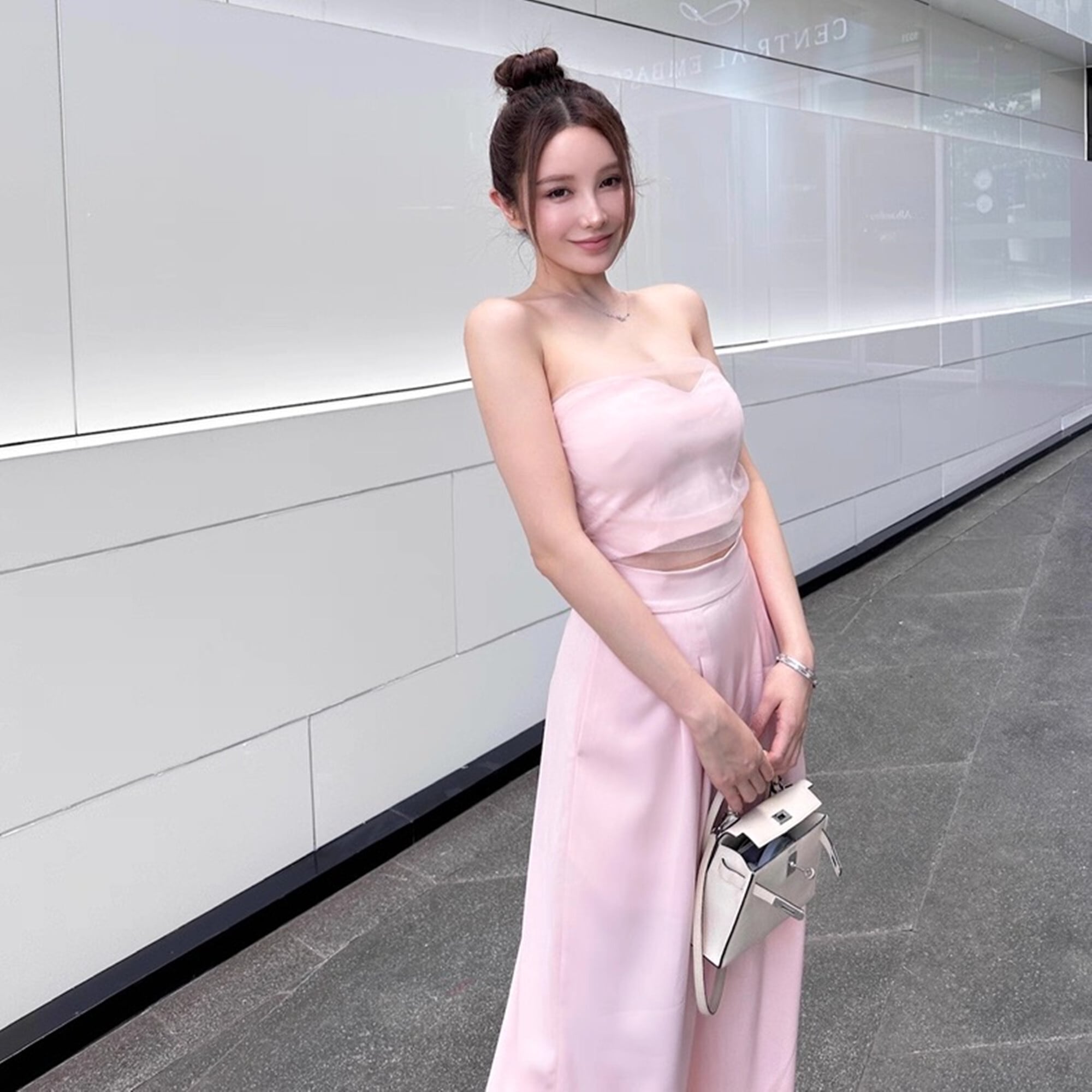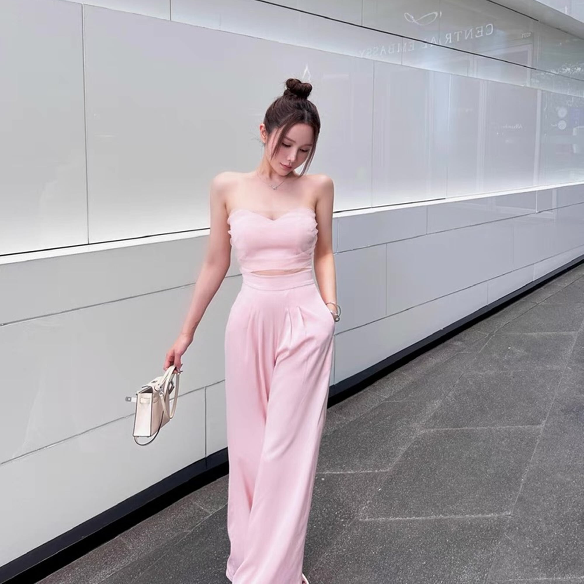 【set】チュールベアトップ×ワイドパンツセット N3536