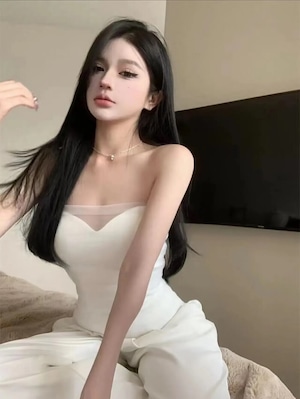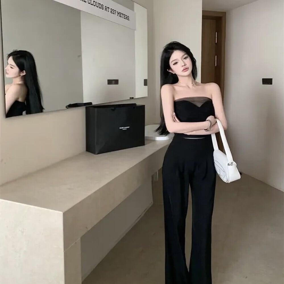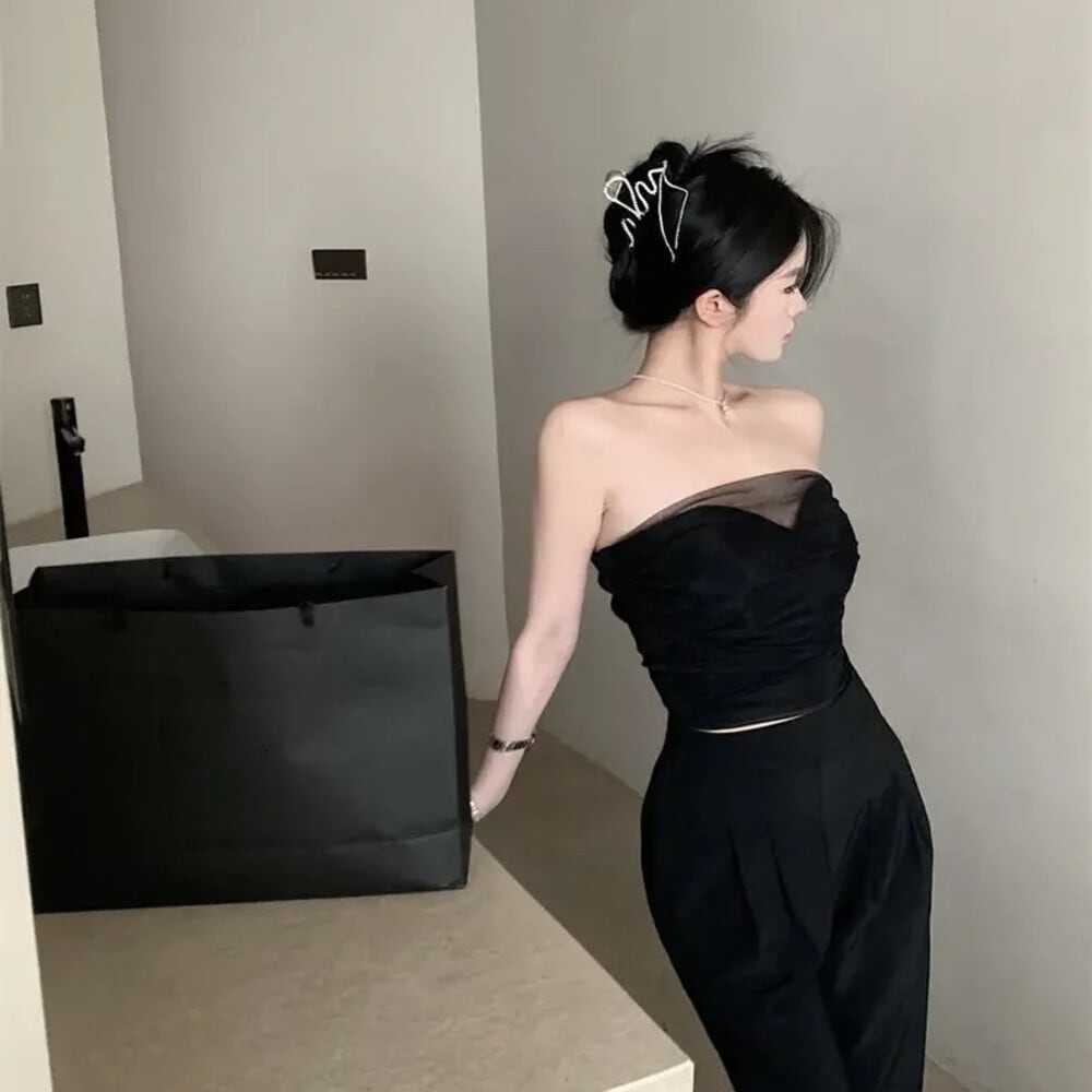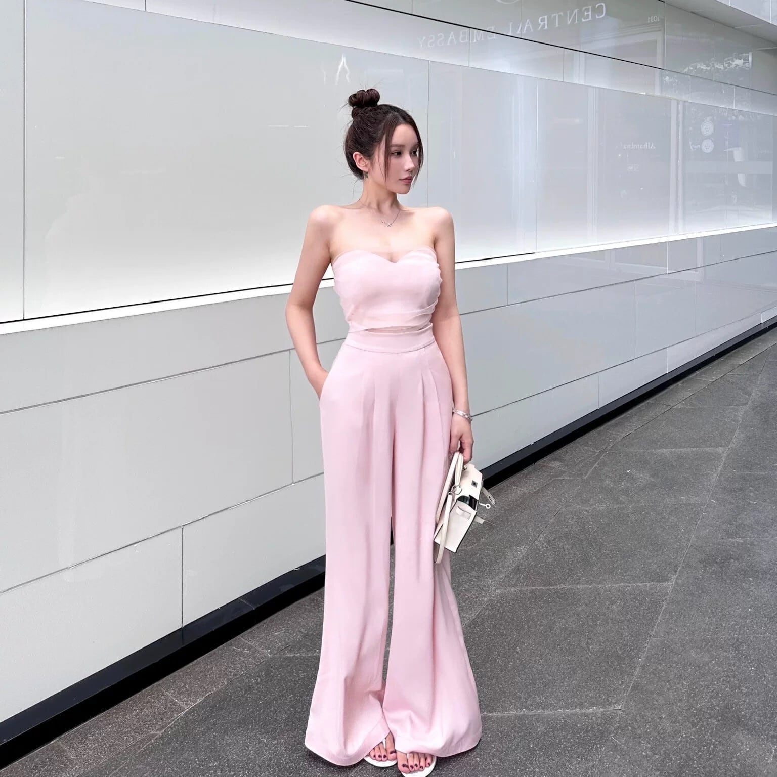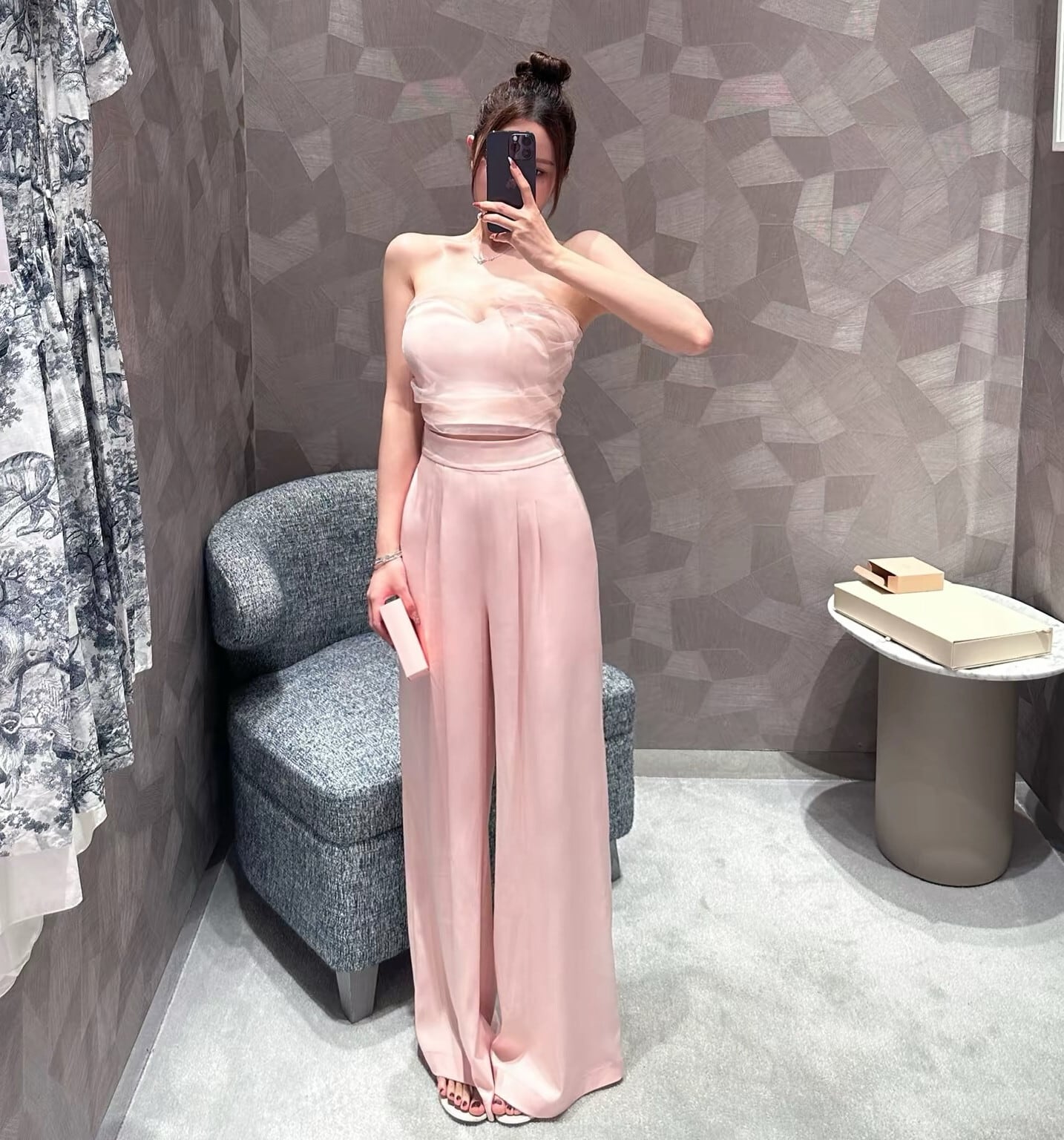 【set】チュールベアトップ×ワイドパンツセット N3536