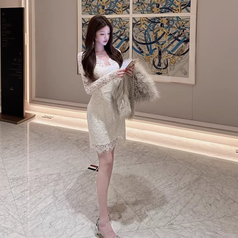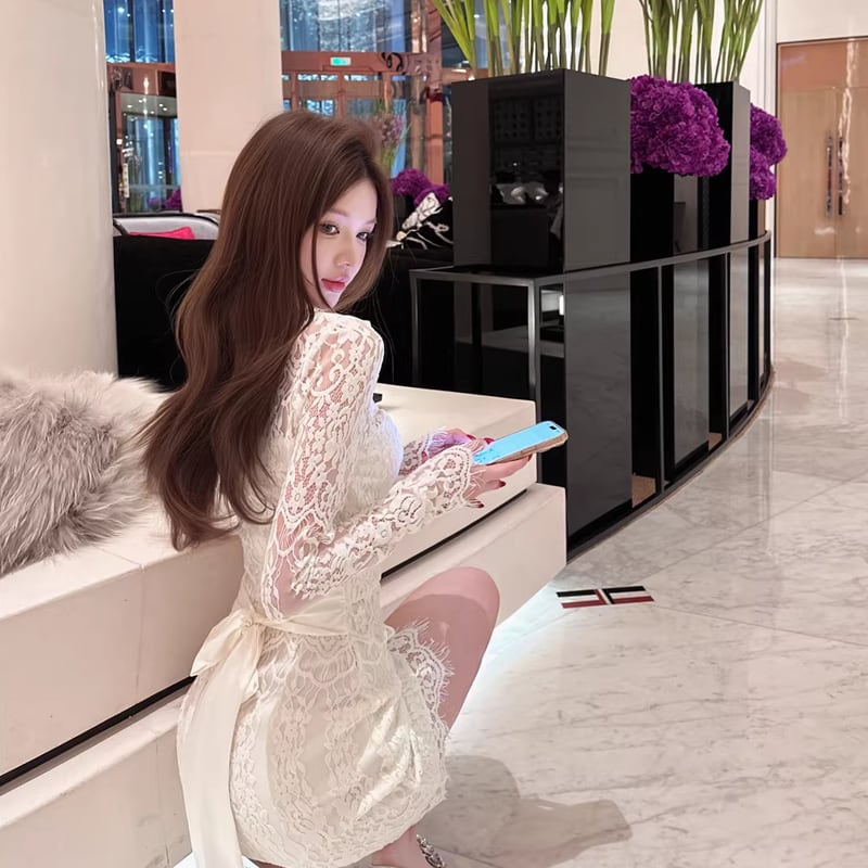 【dress】レースミニワンピース Q8343
