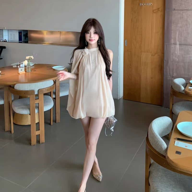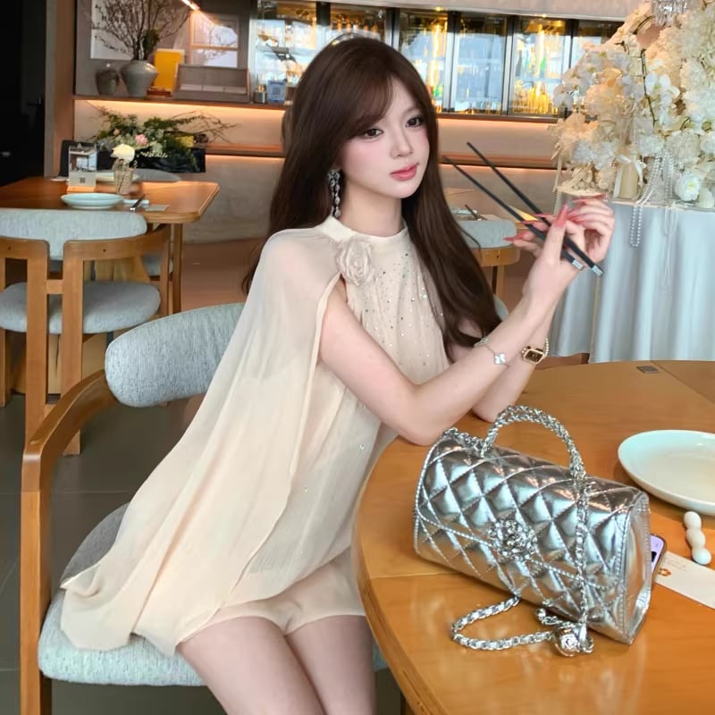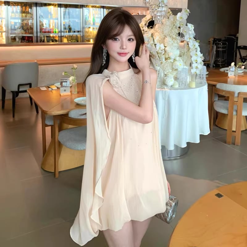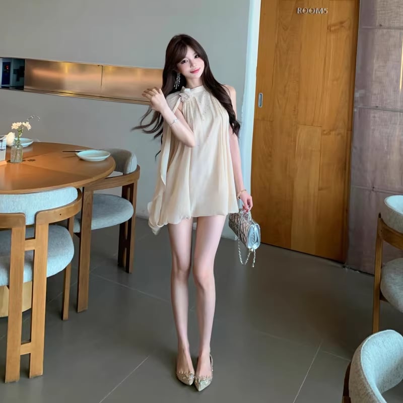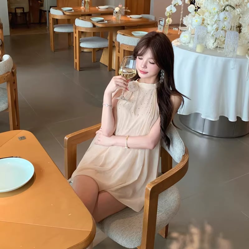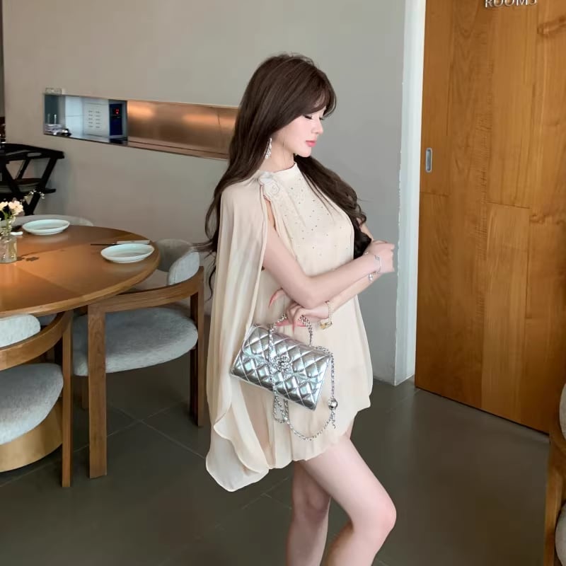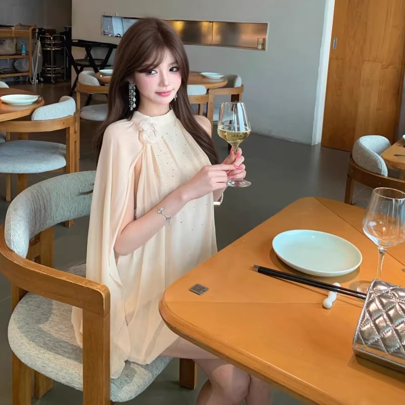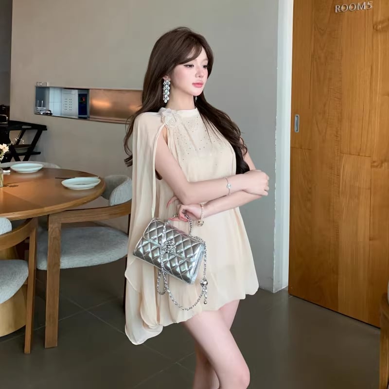 【dress】ラインストーン付きシフォンワンピース Q8345