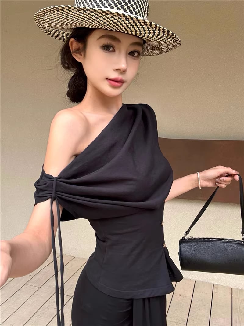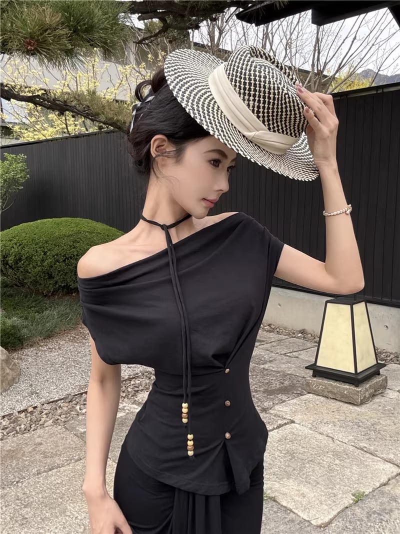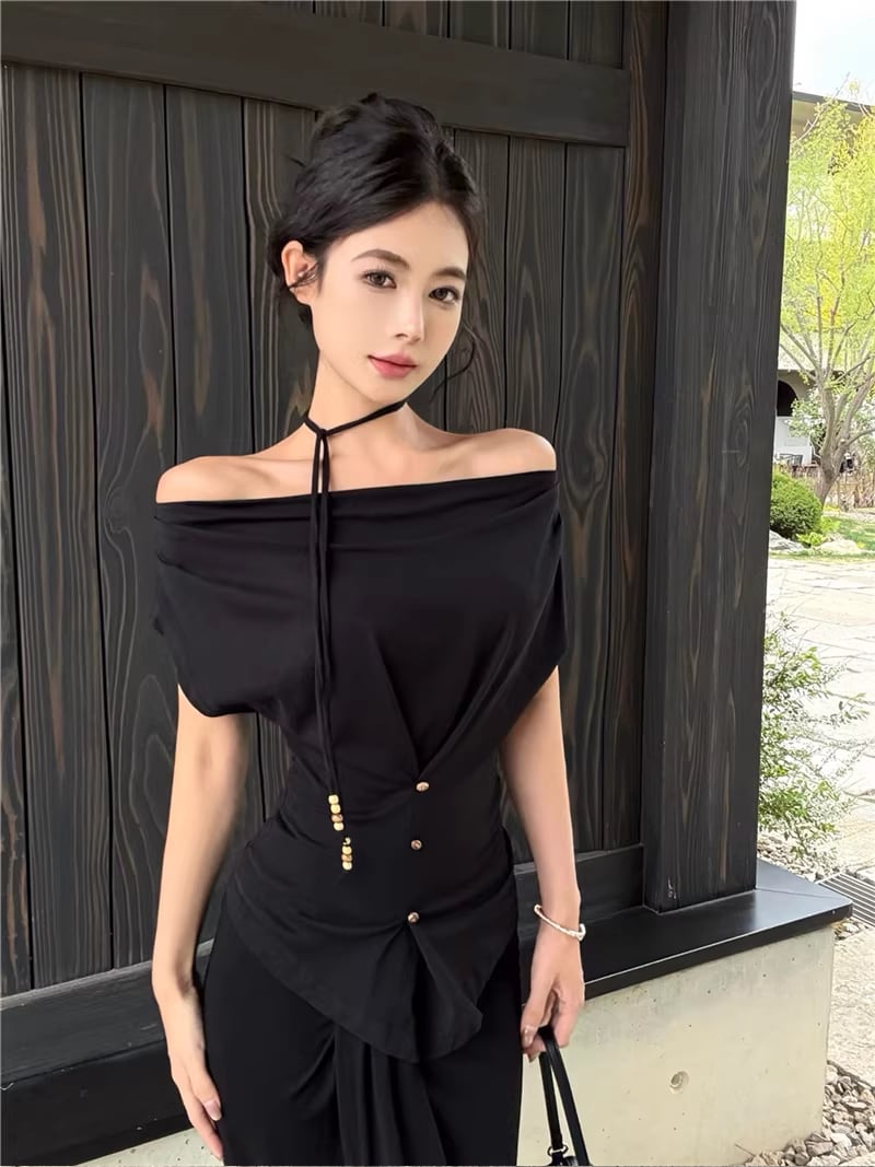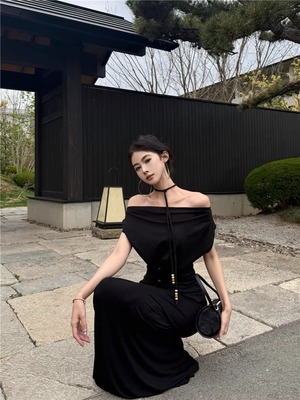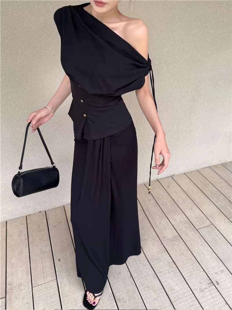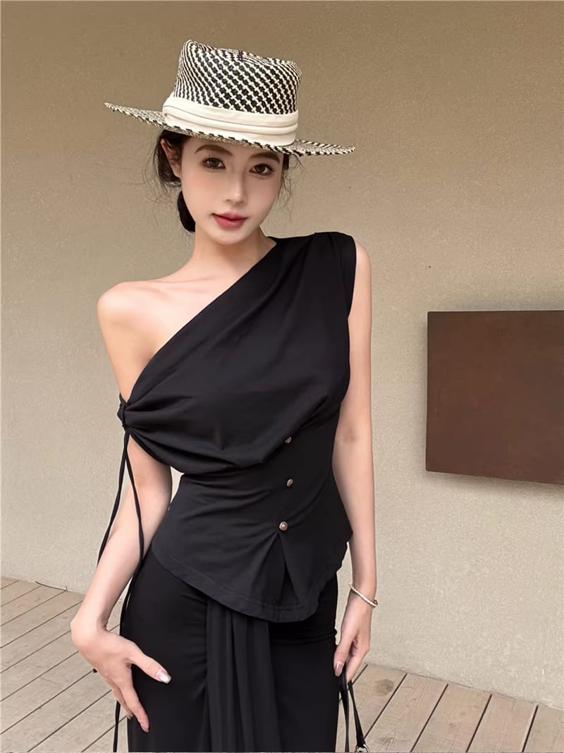 【set】ストラップ付ノースリーブトップス×ロングスカートセット Q8347