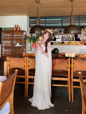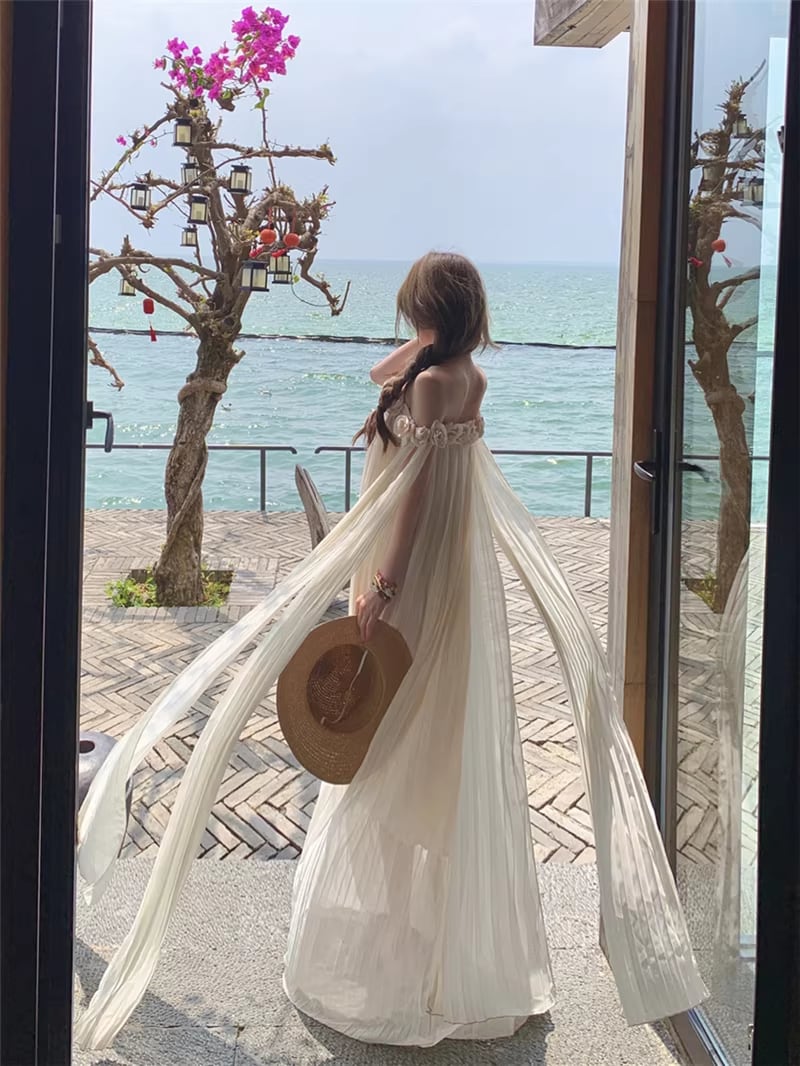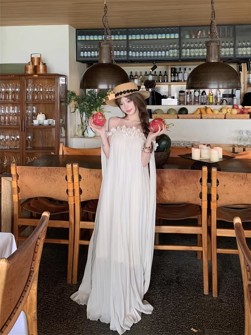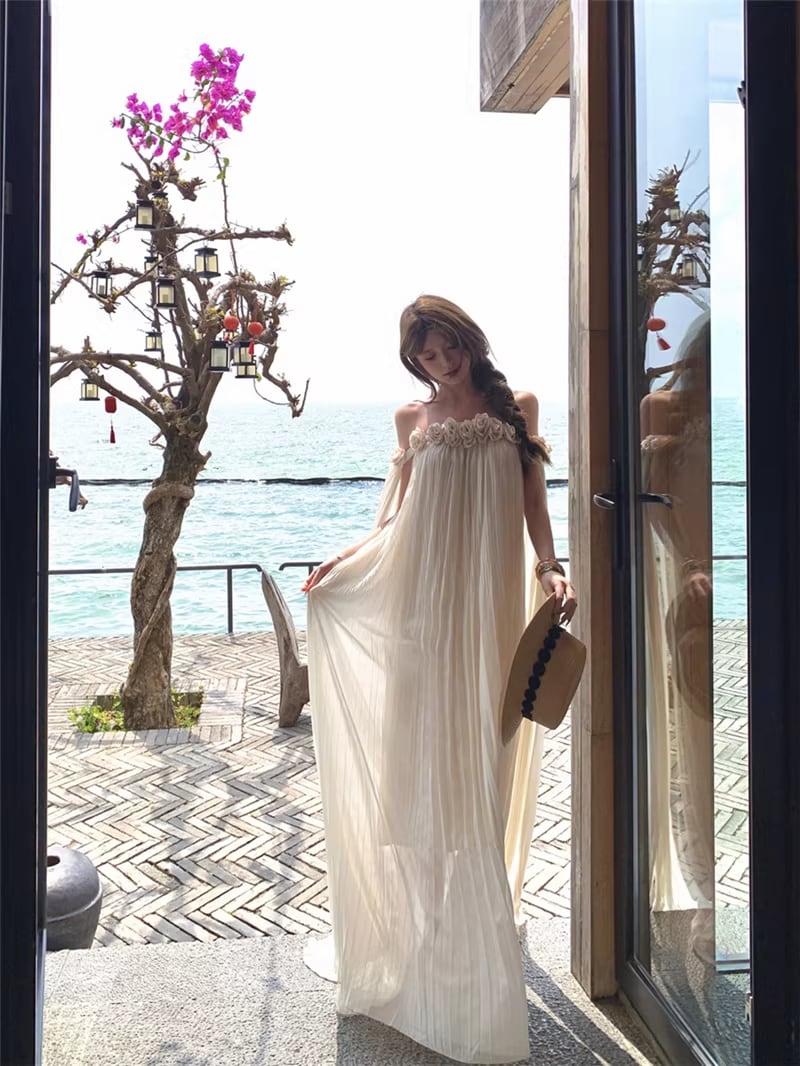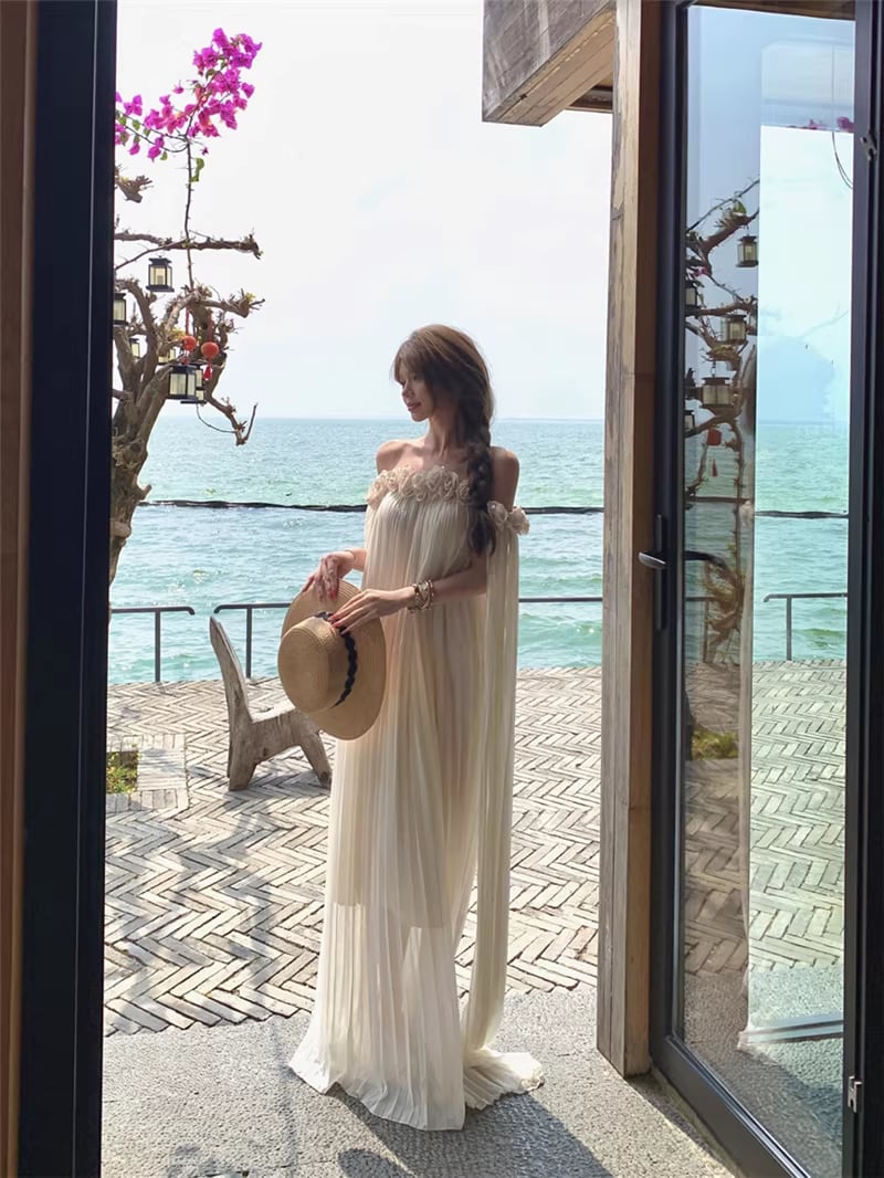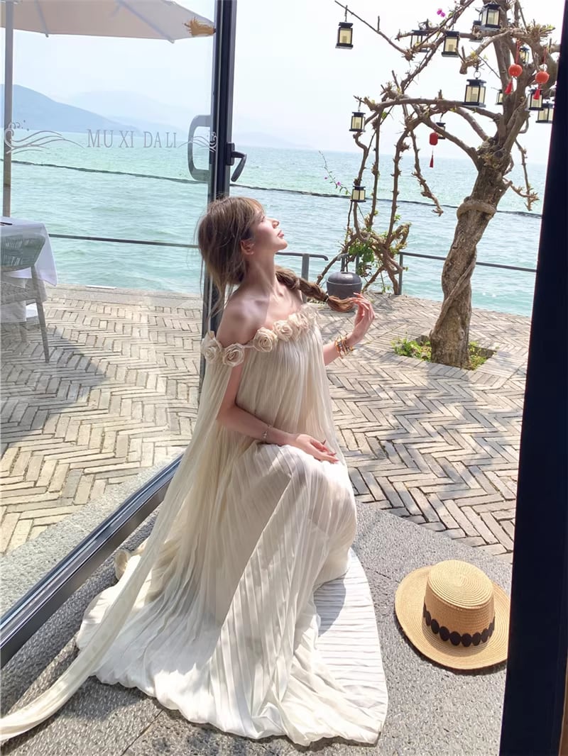 【dress】立体感フラワー付きオフショルダーワンピース Q8351