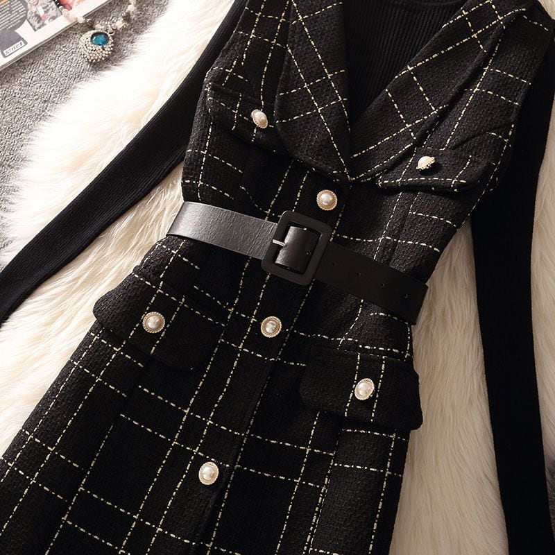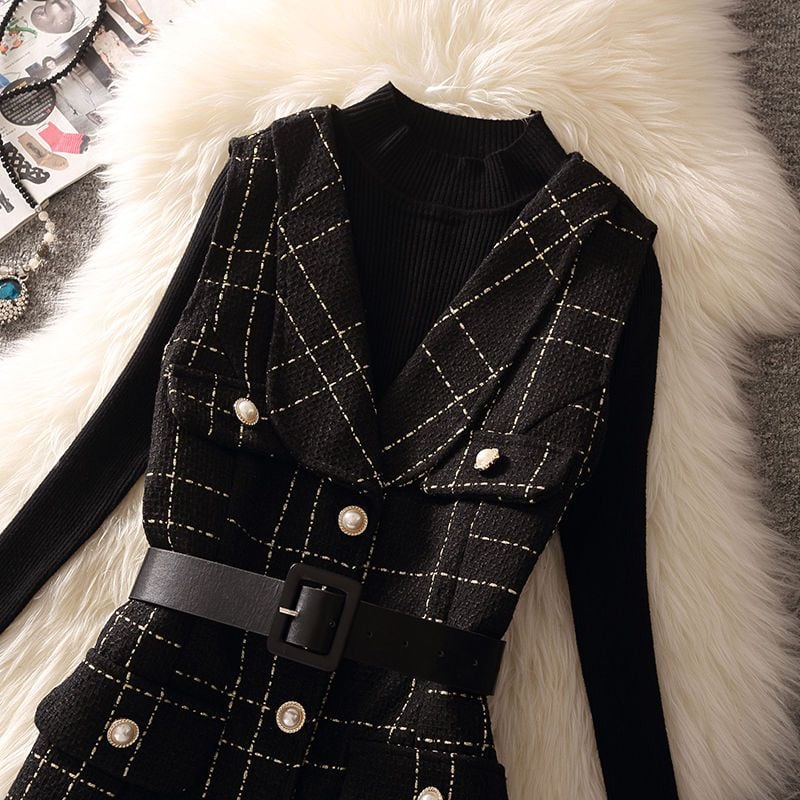 【set】ニットトップス×ベストワンピースセット Q8362