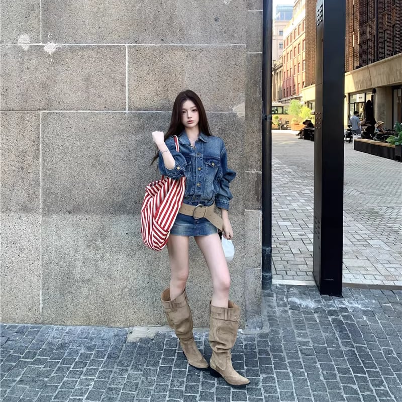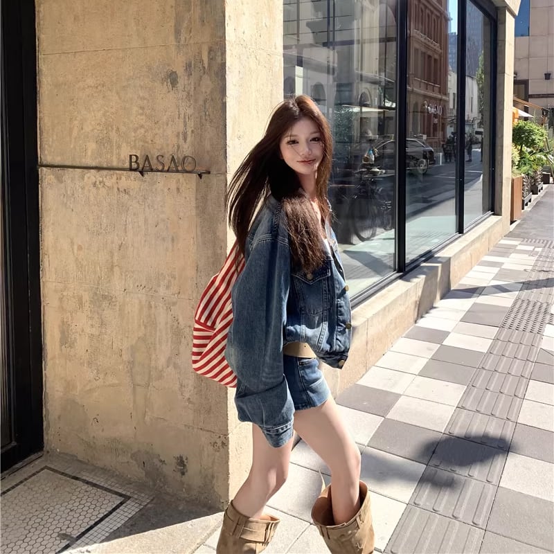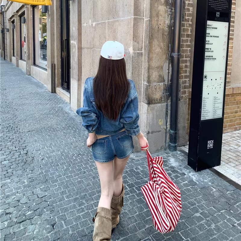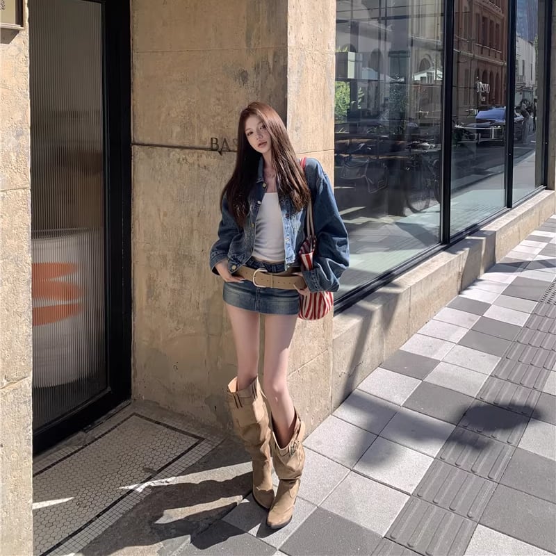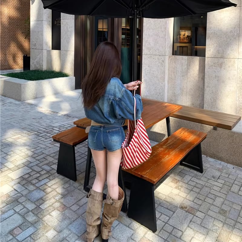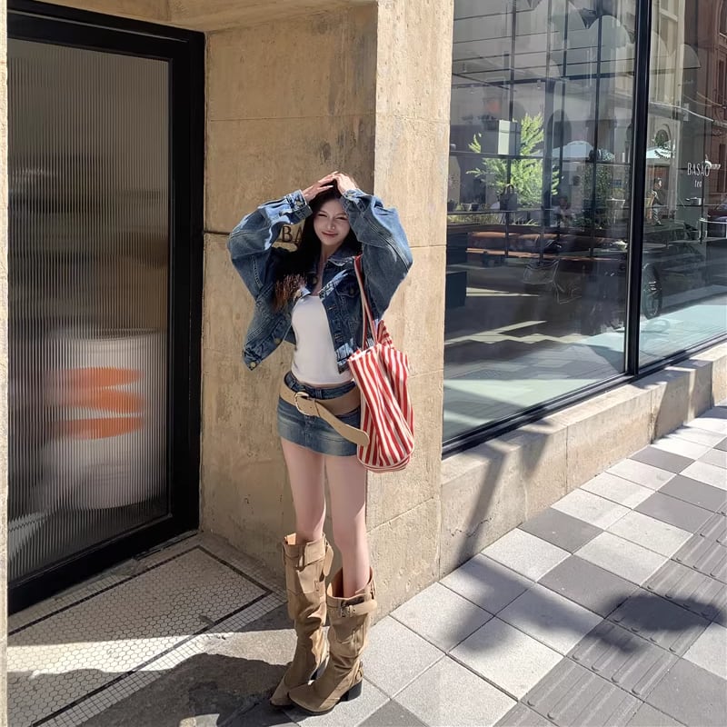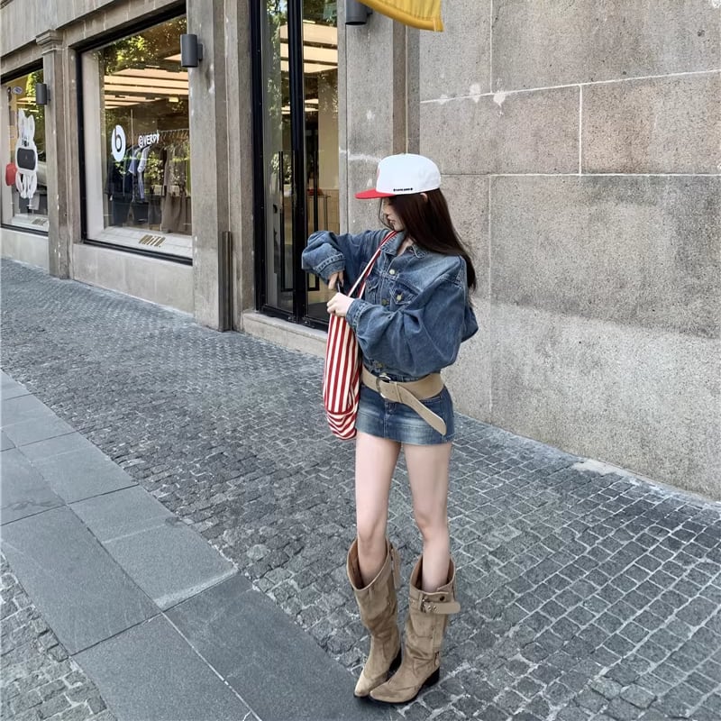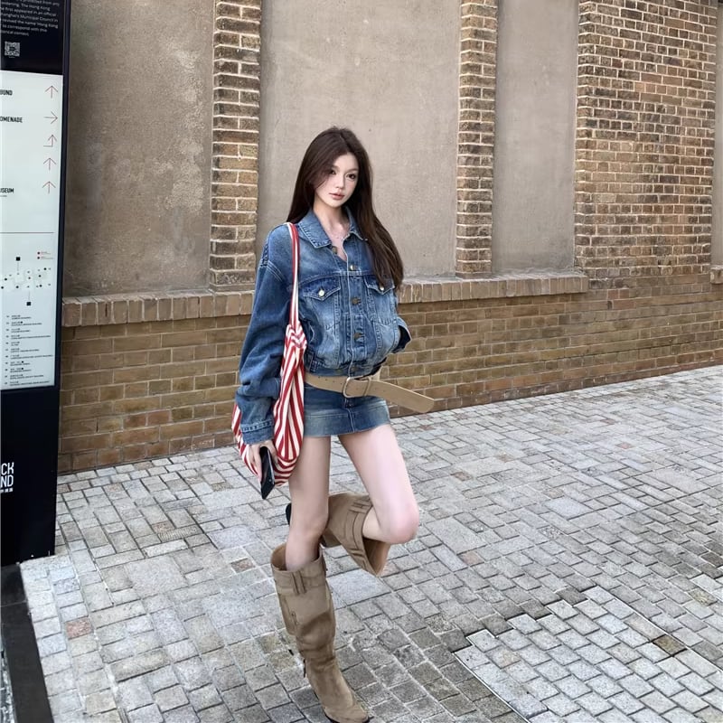 【set】デニムジャケット×ベルト付きデニムミニスカートセット Q8372