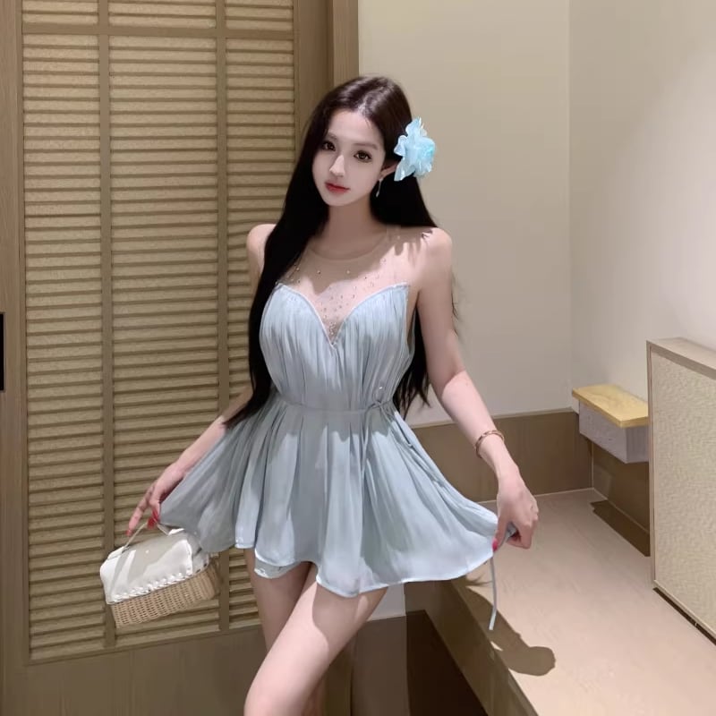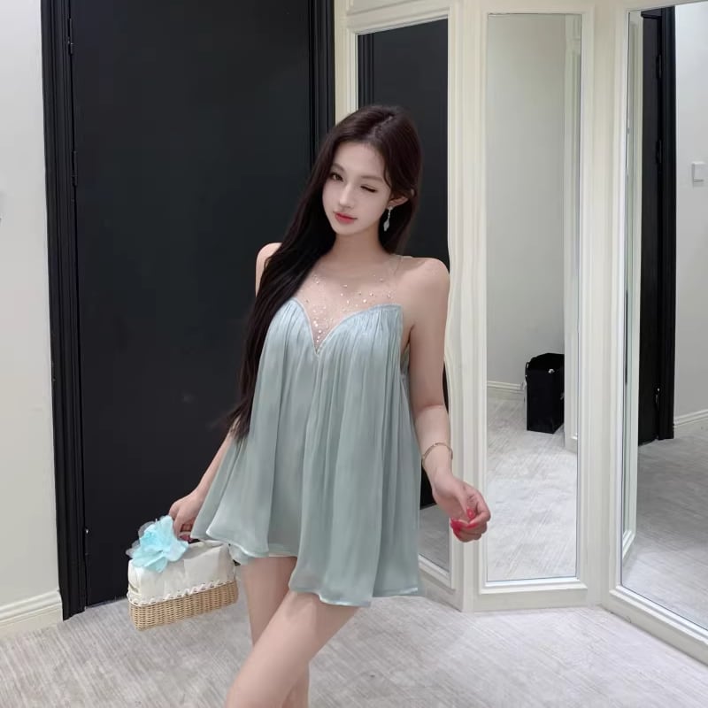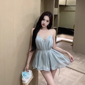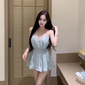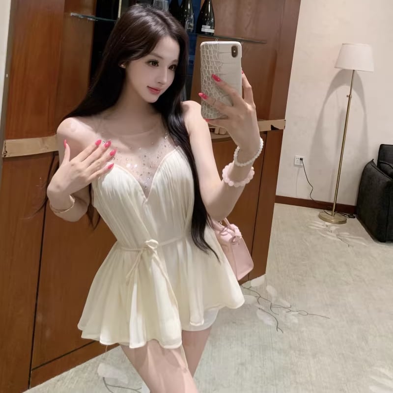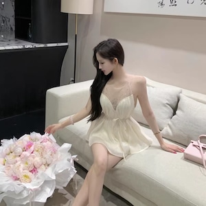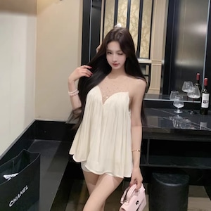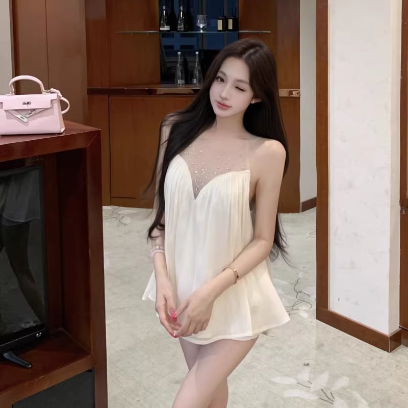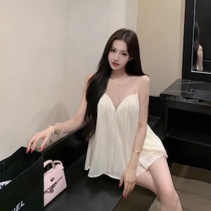 【tops】ラインストーン付きチュールドッキングトップス Q8376