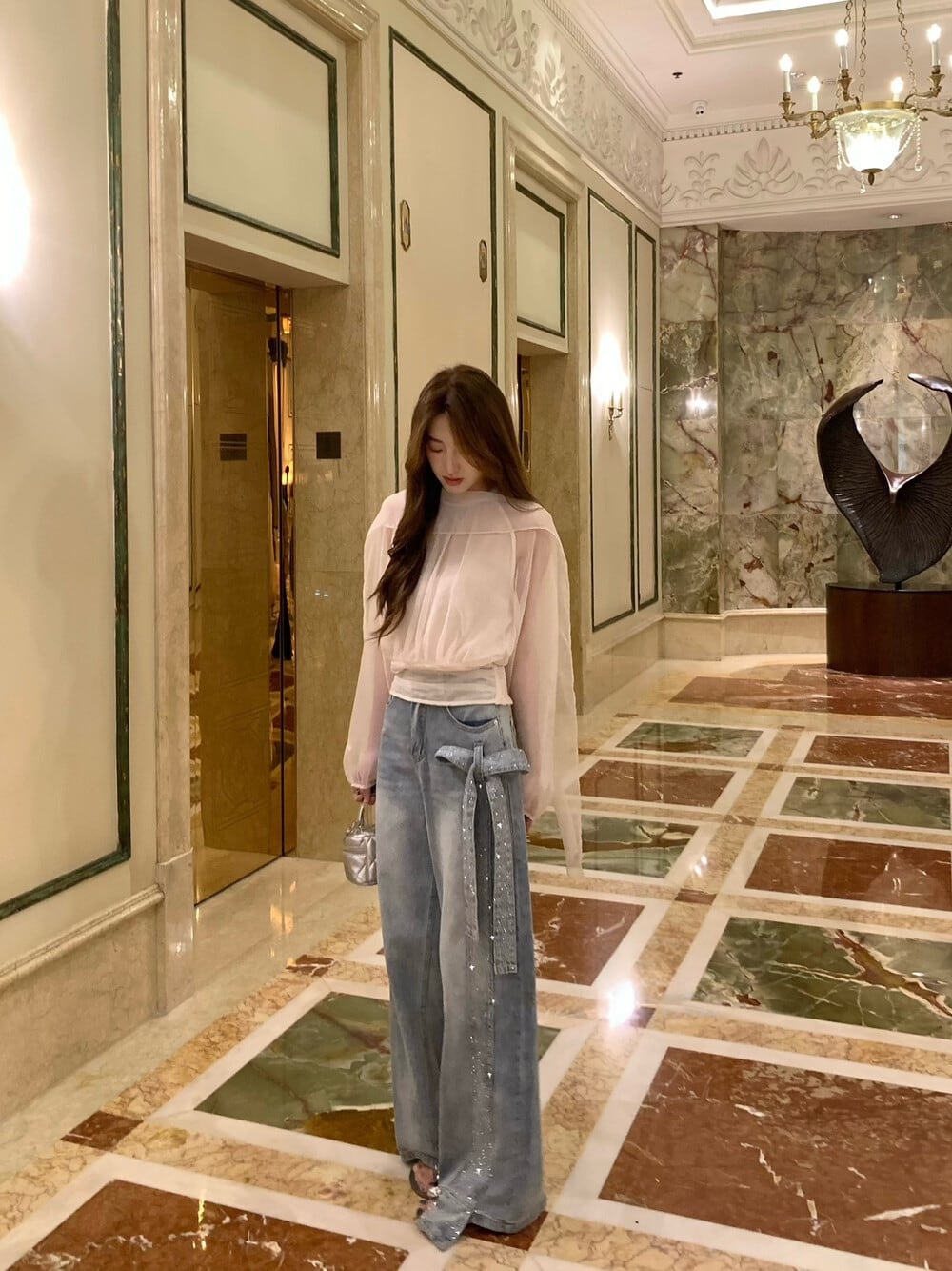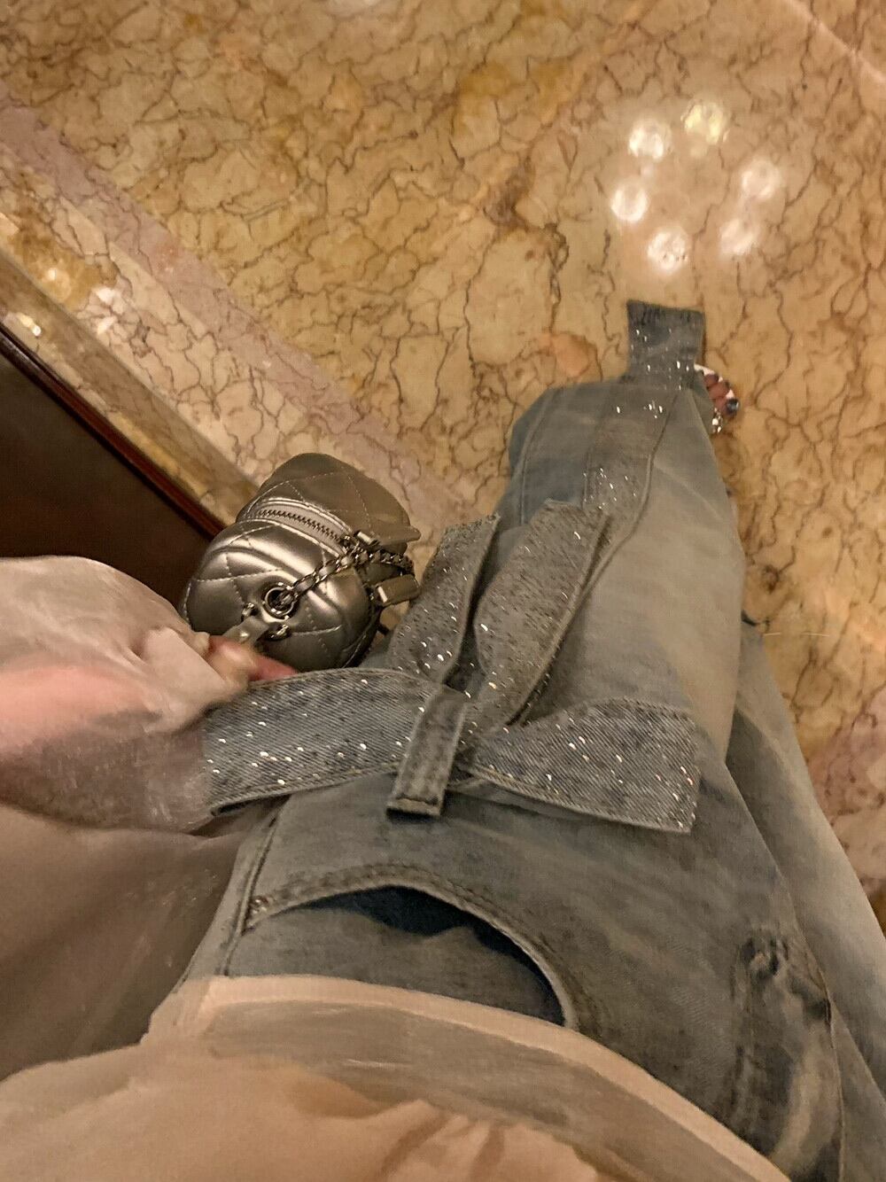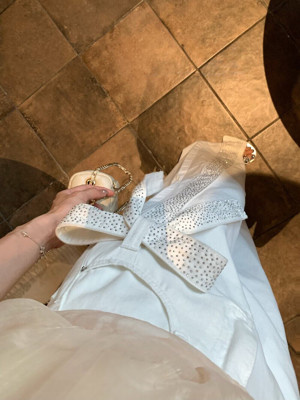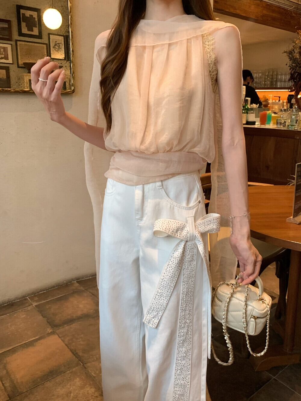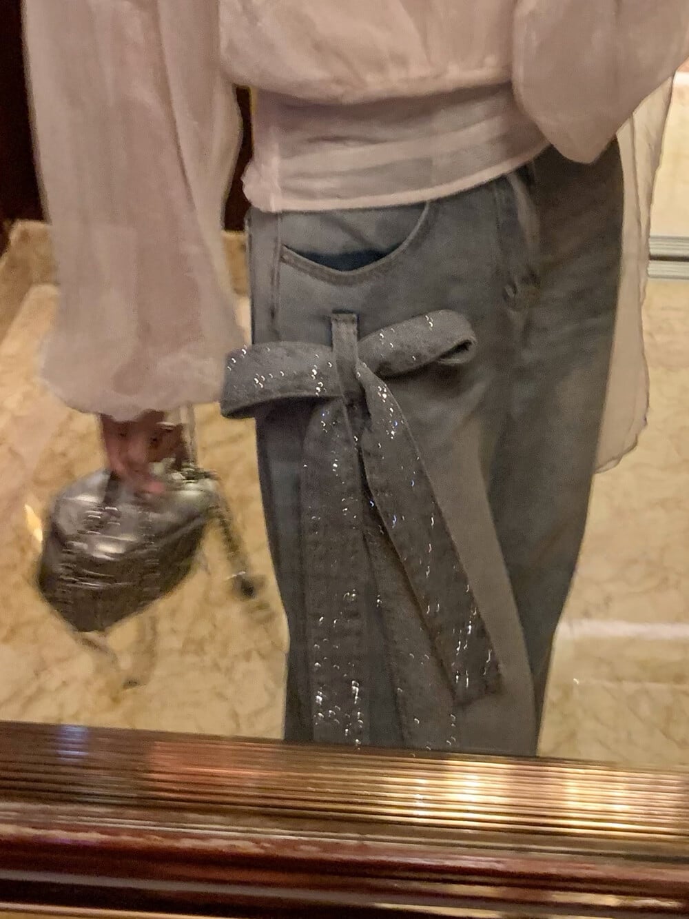 【bottoms】スパンコール付きリボンデニムパンツ N3545