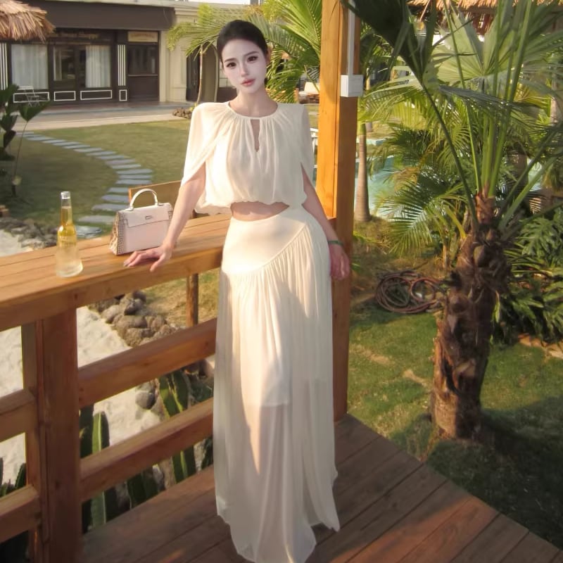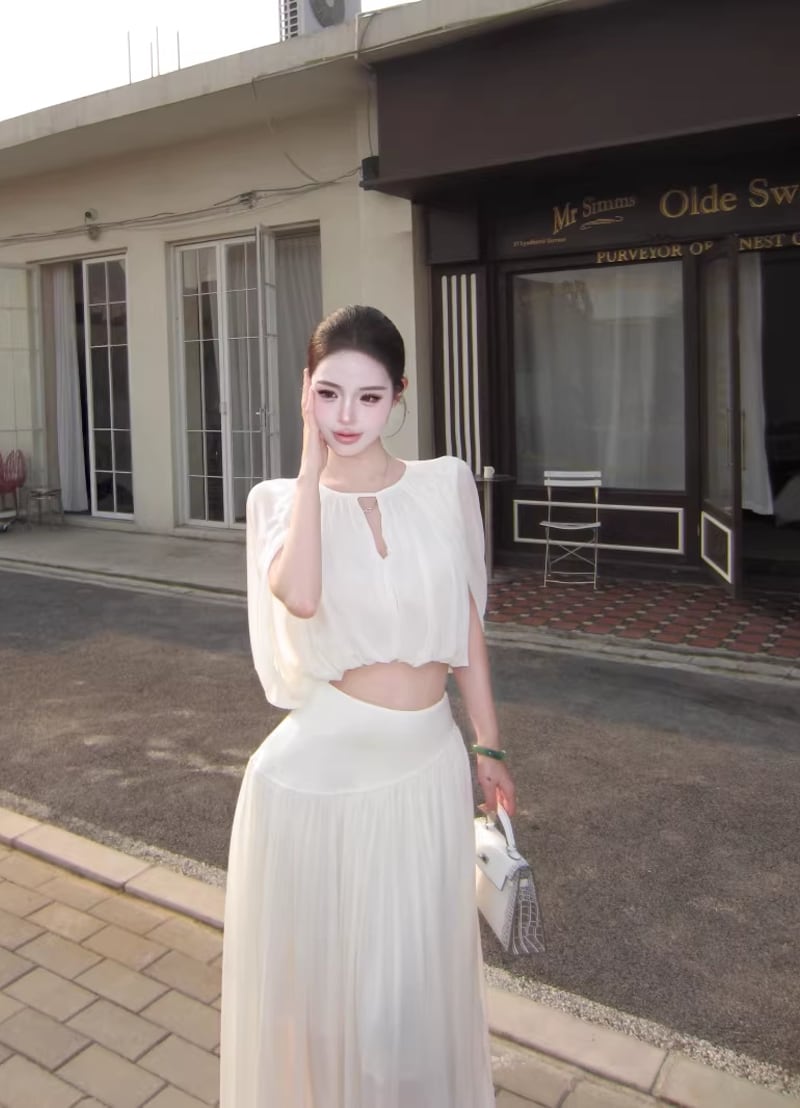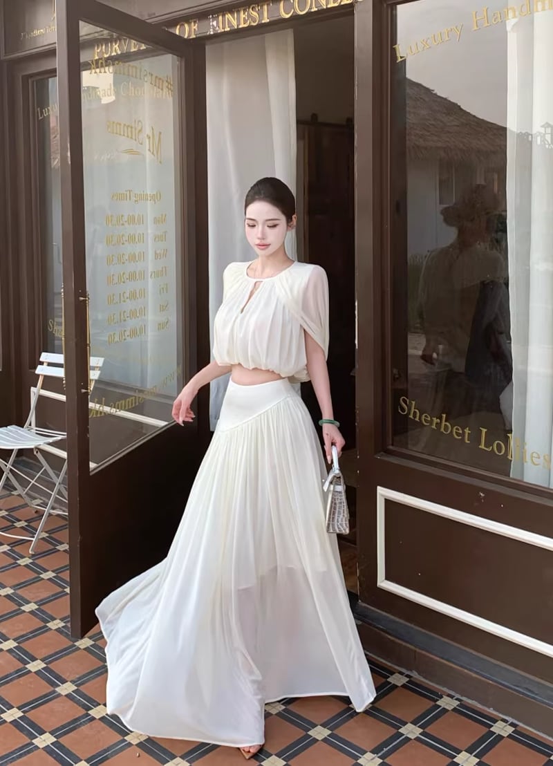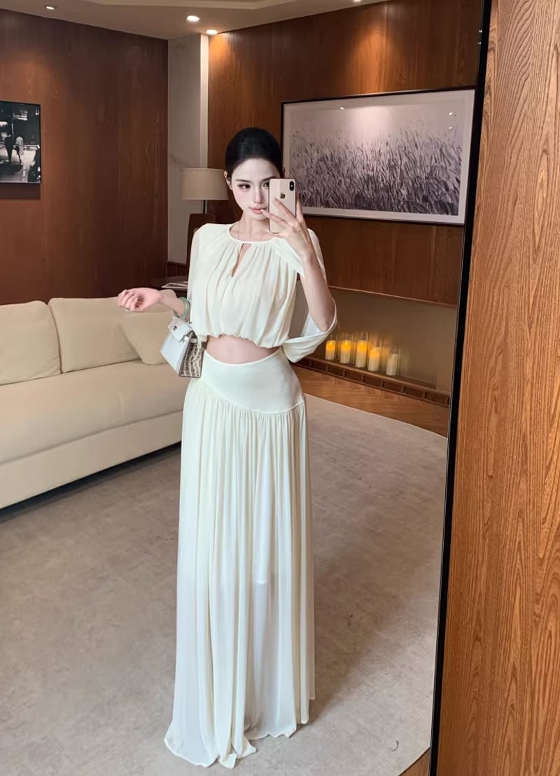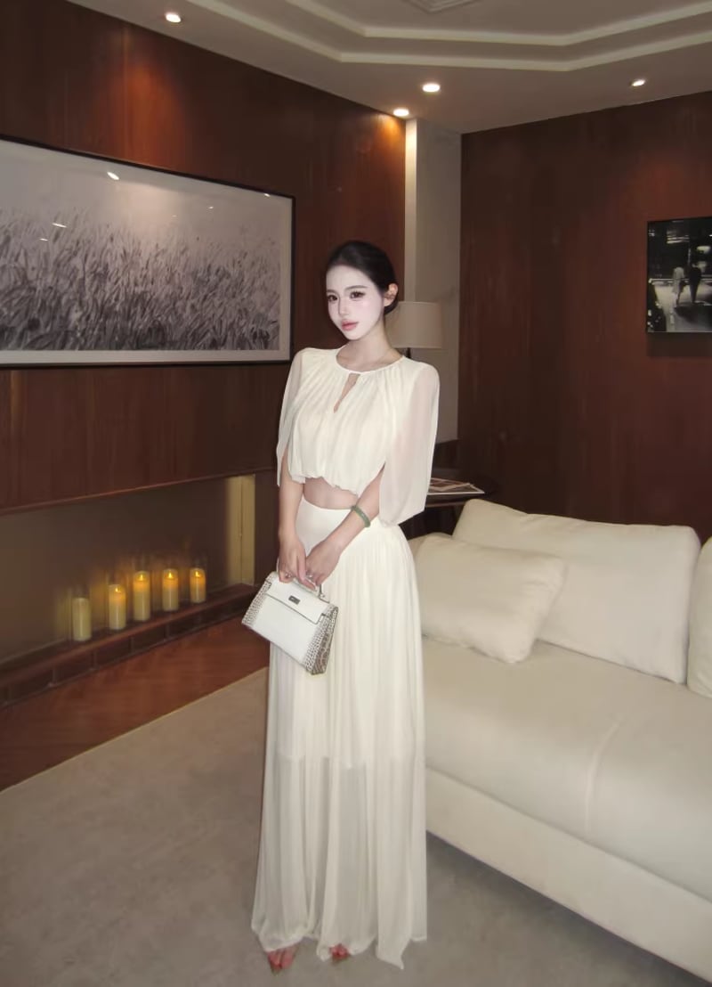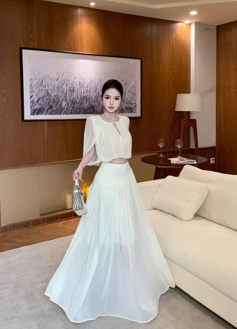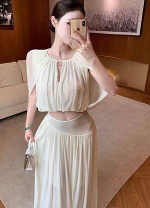 【set】フロントカットトップス×ロングスカートセット Q8381