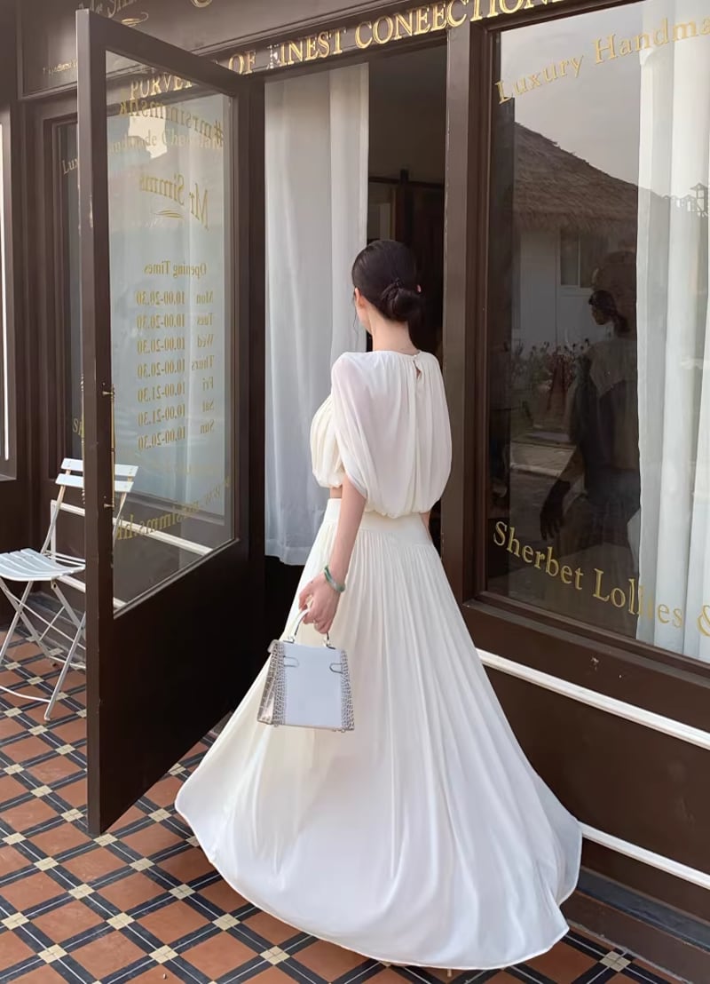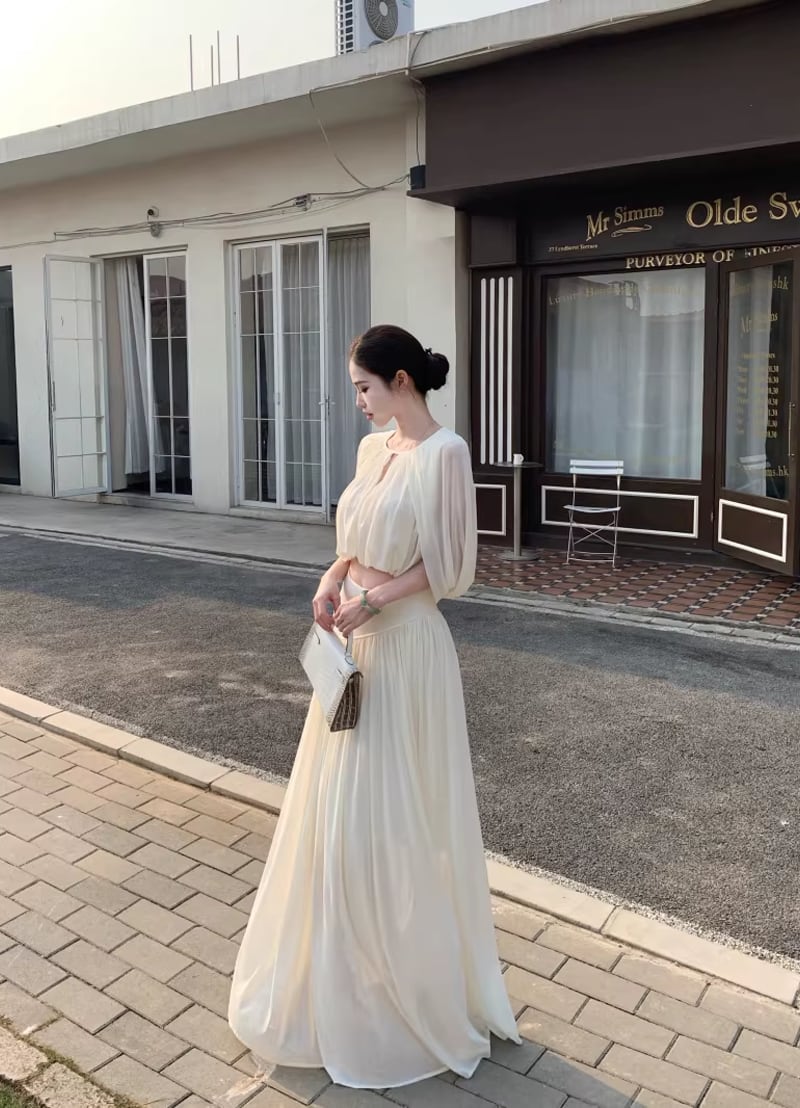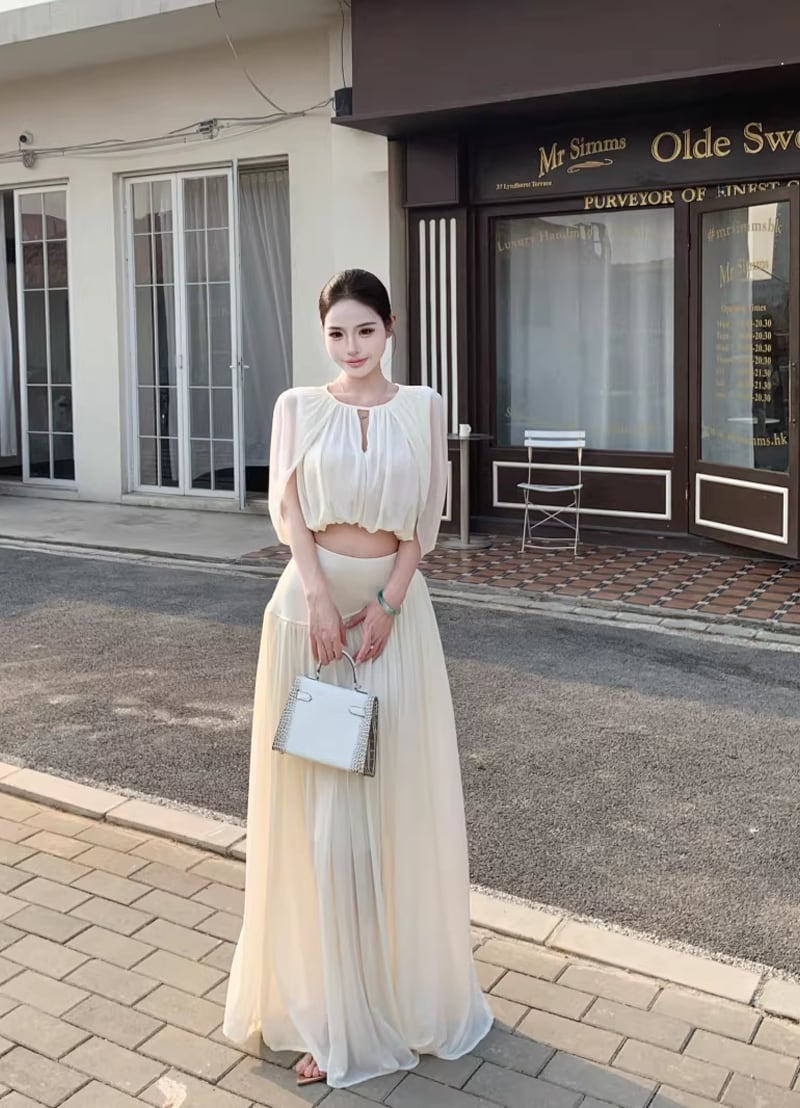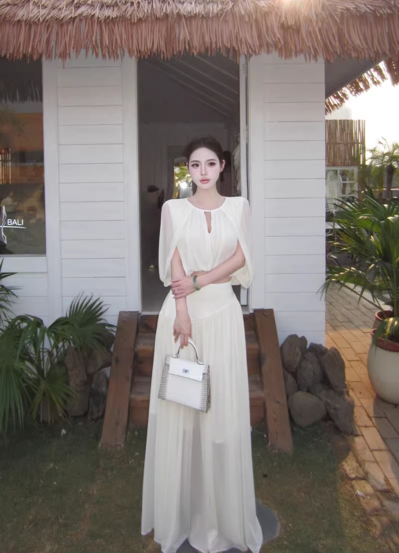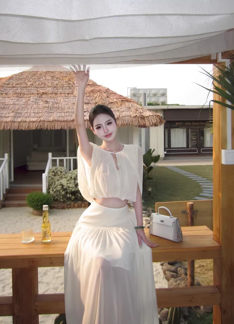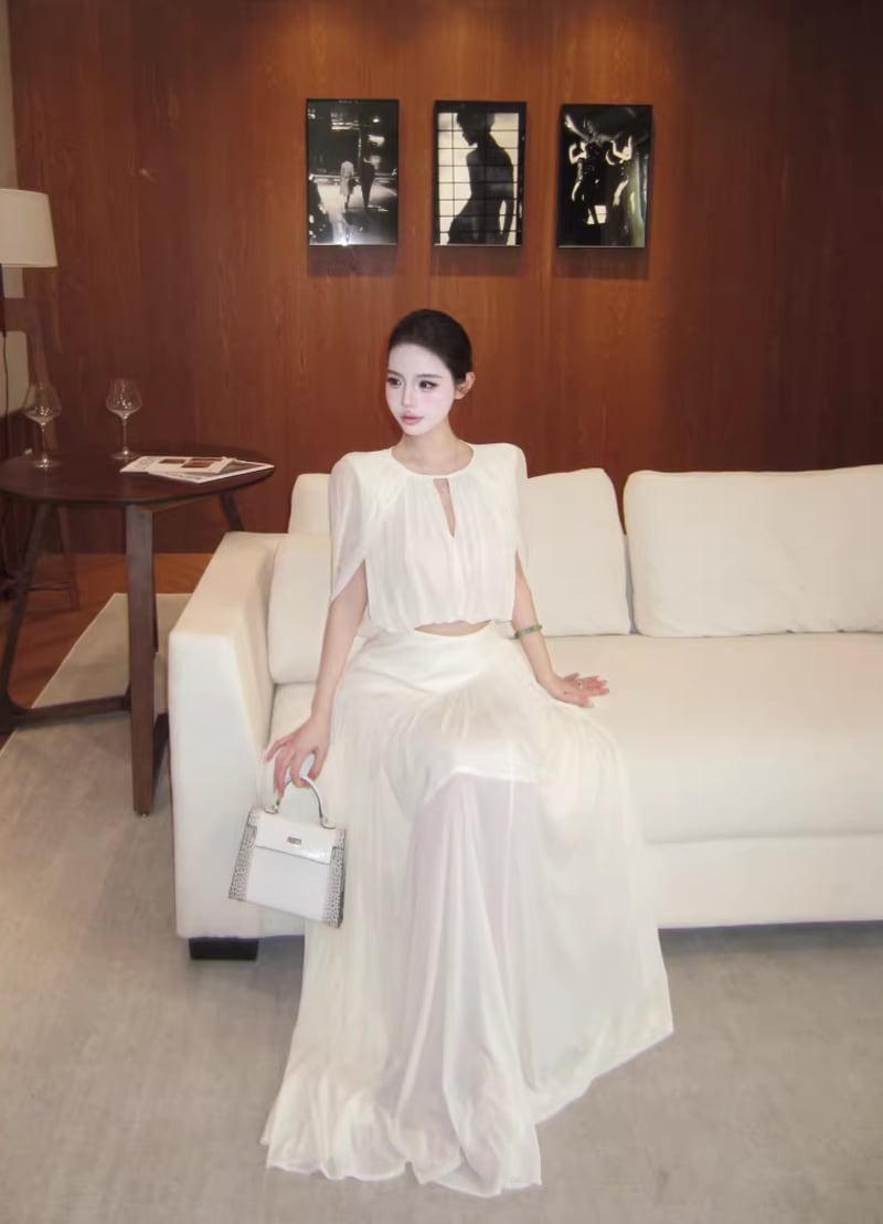 【set】フロントカットトップス×ロングスカートセット Q8381