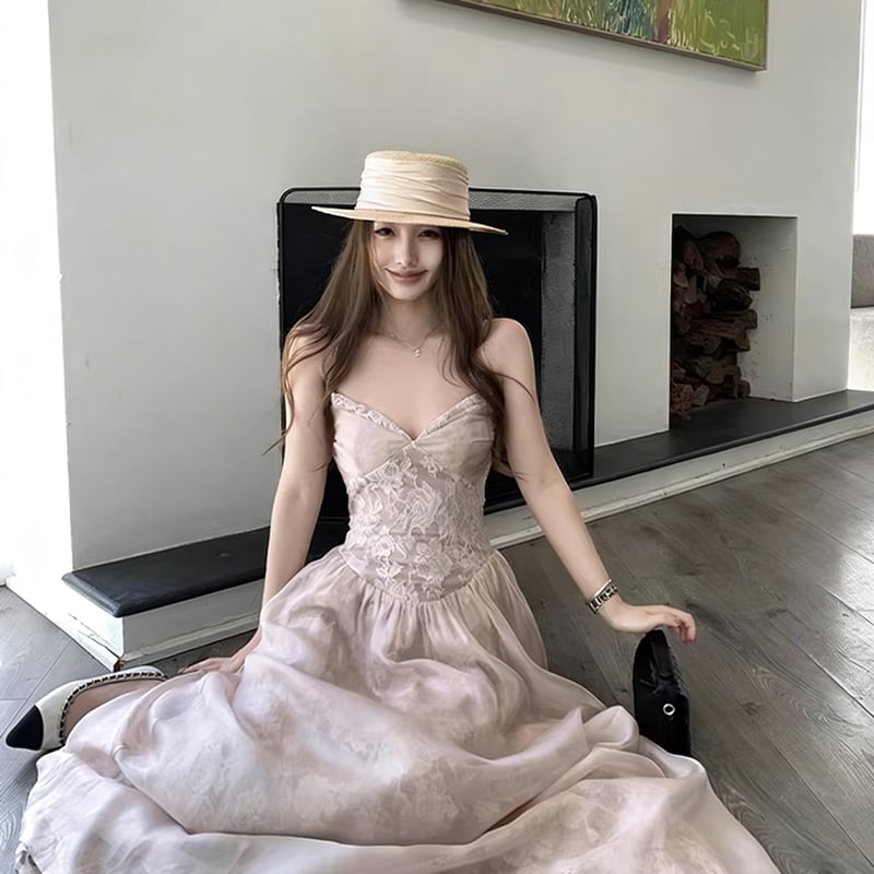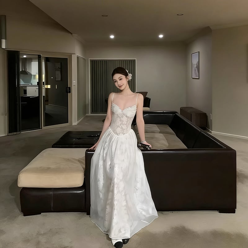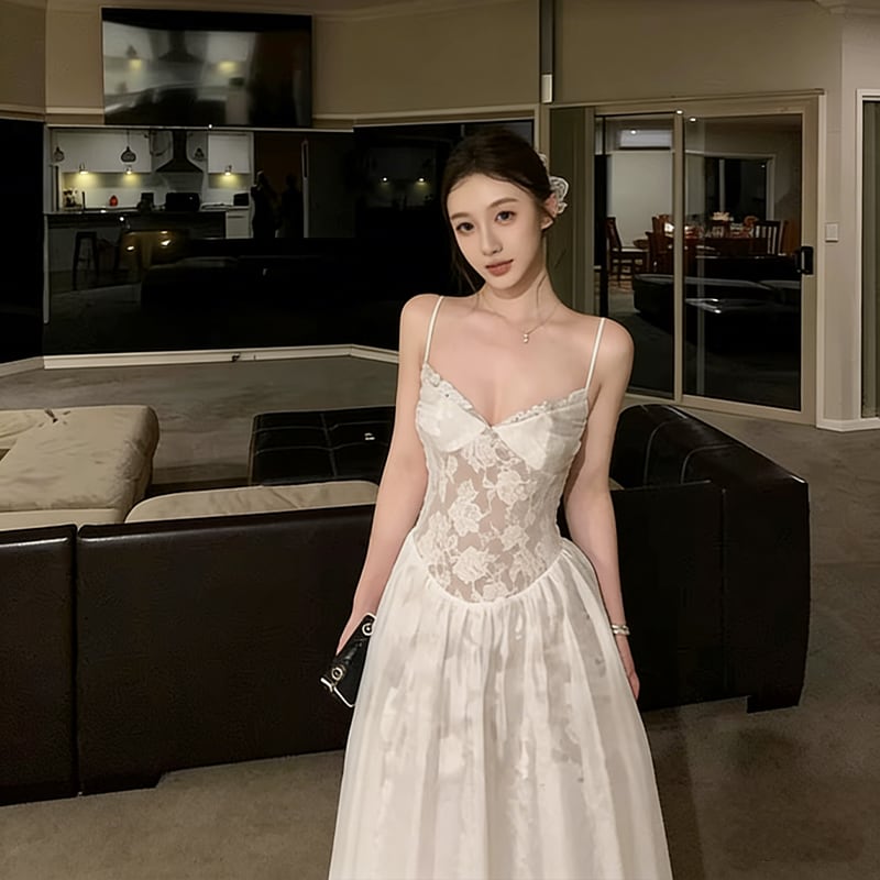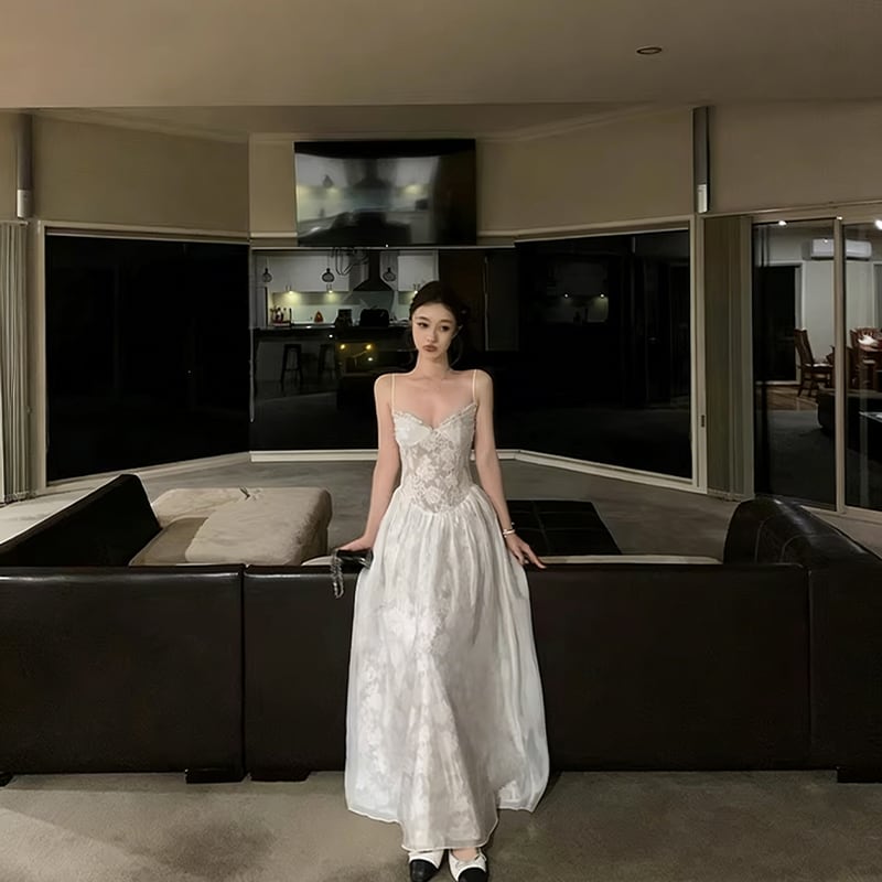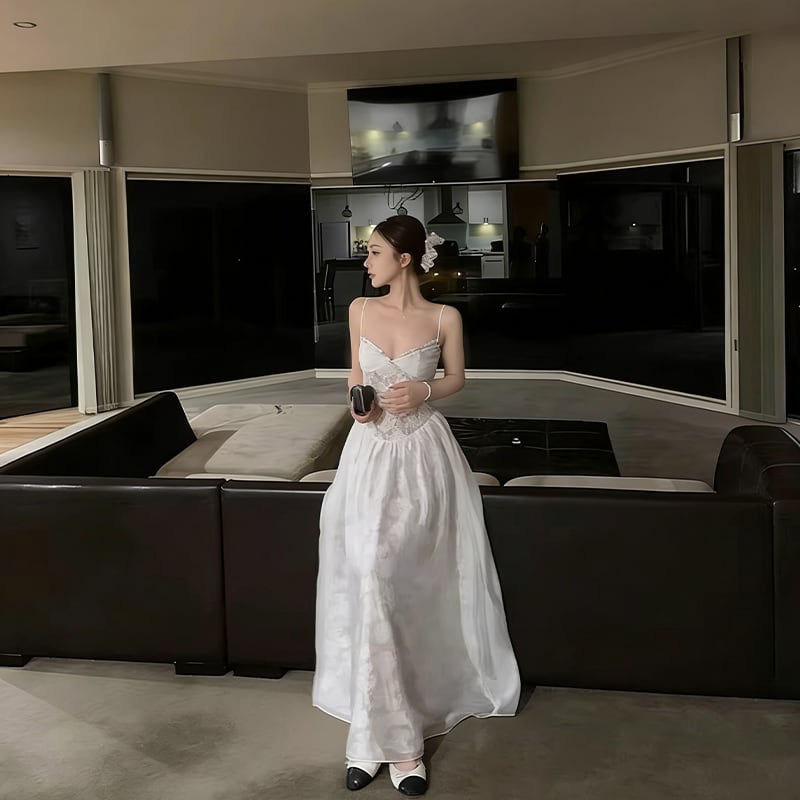 【dress】レースロングキャミワンピース Q8384