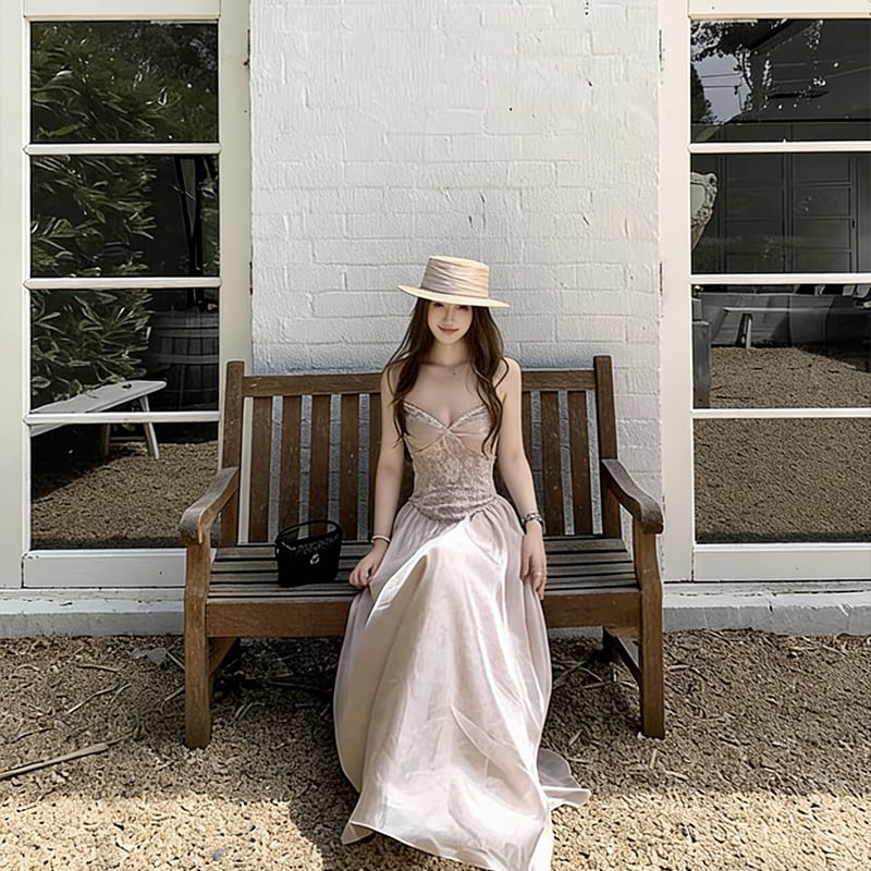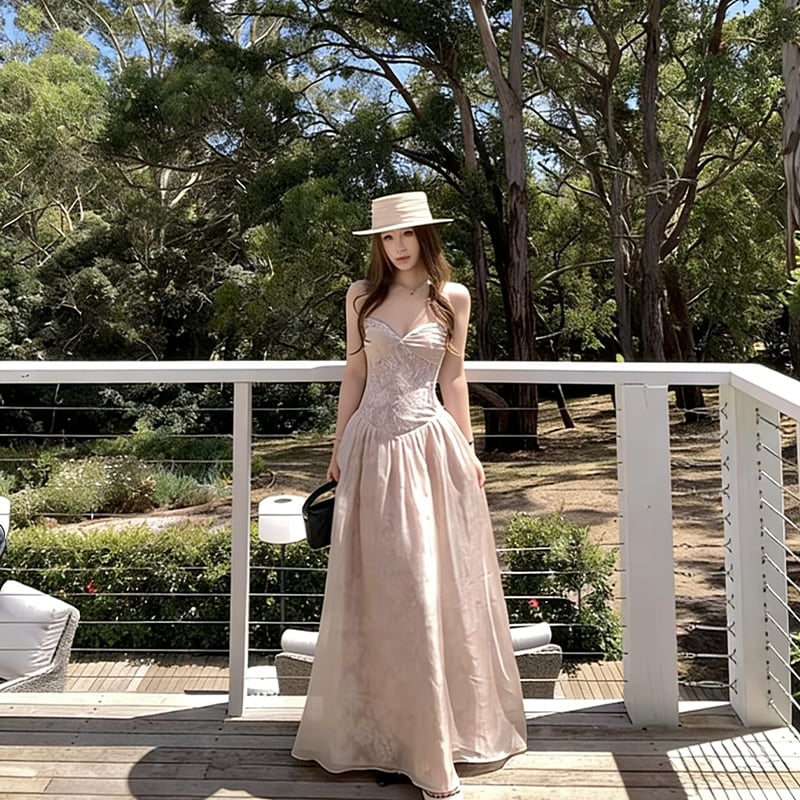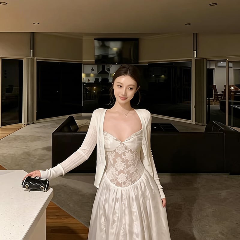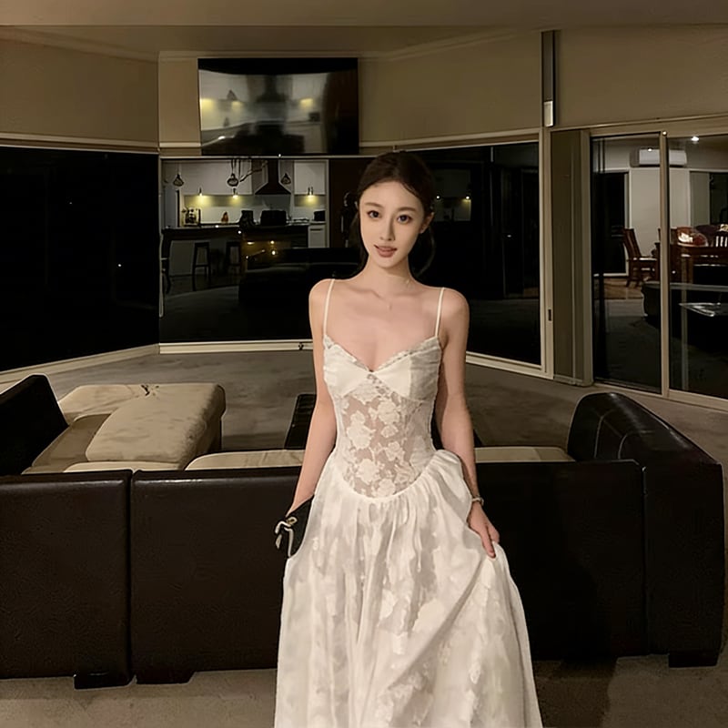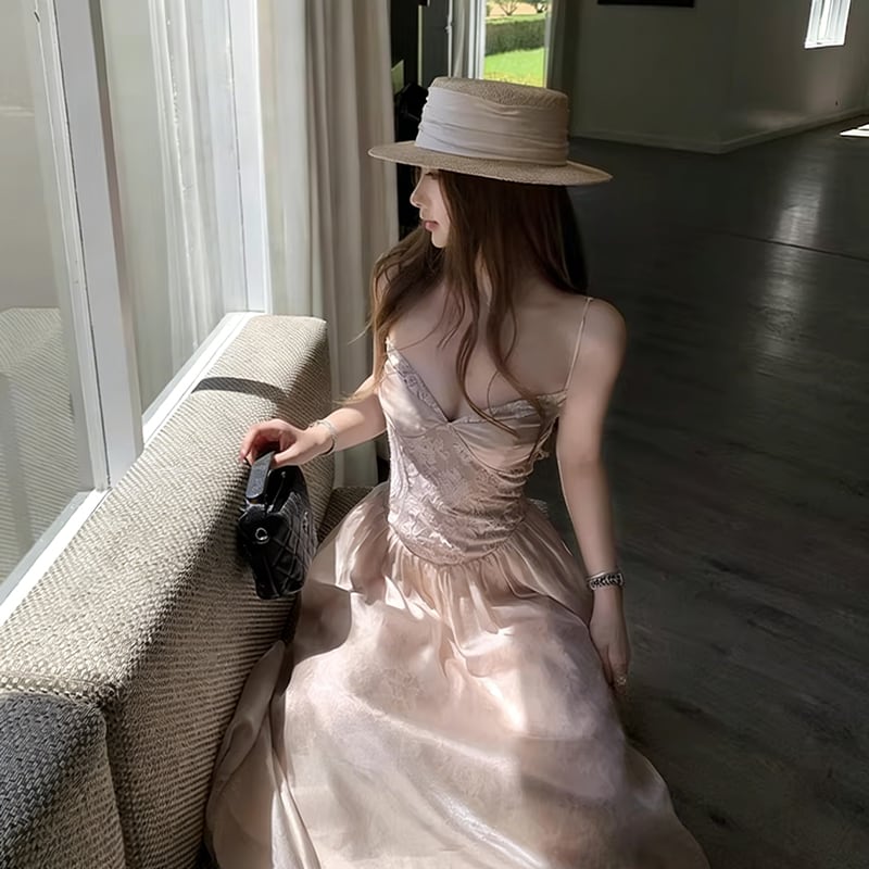 【dress】レースロングキャミワンピース Q8384